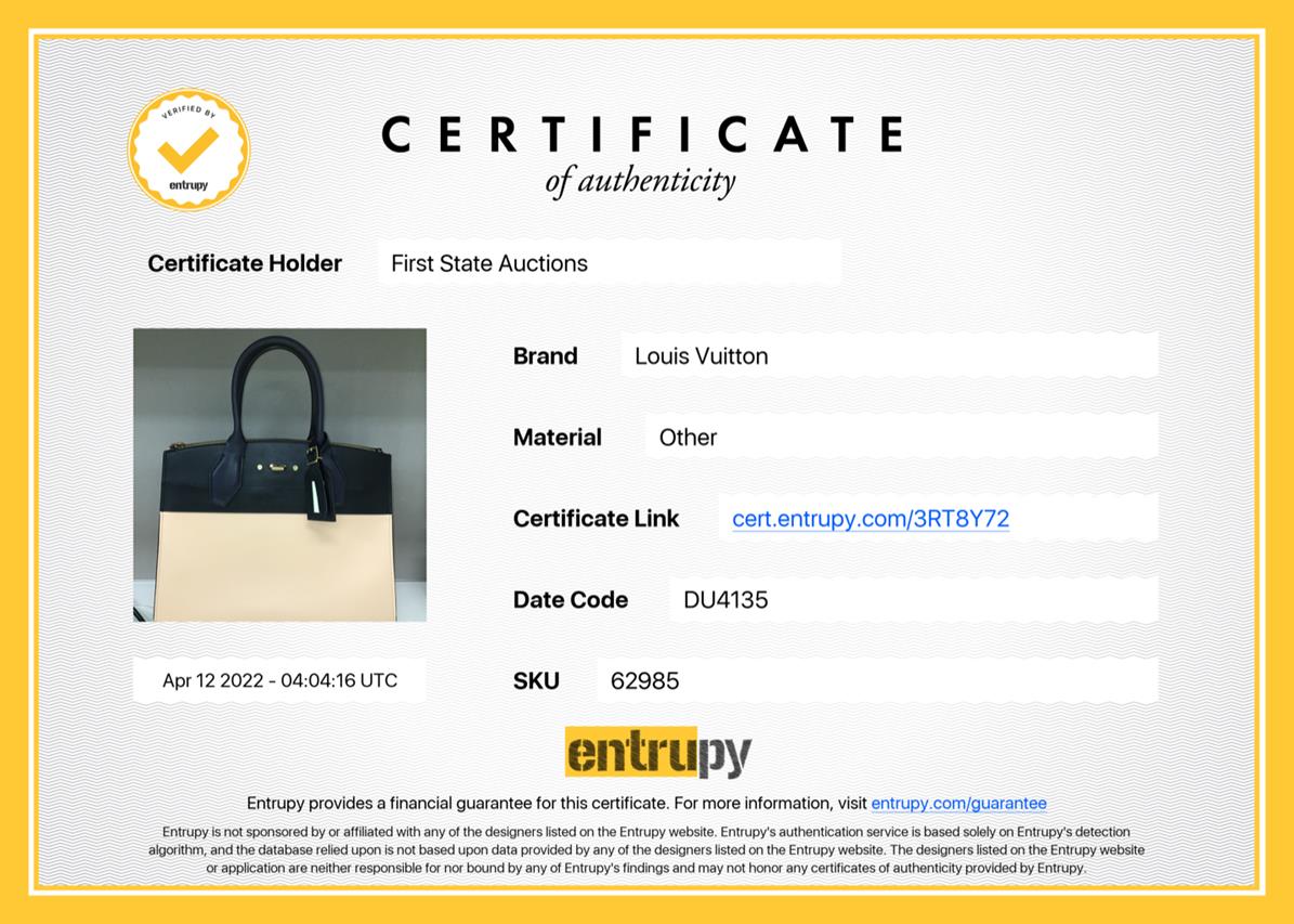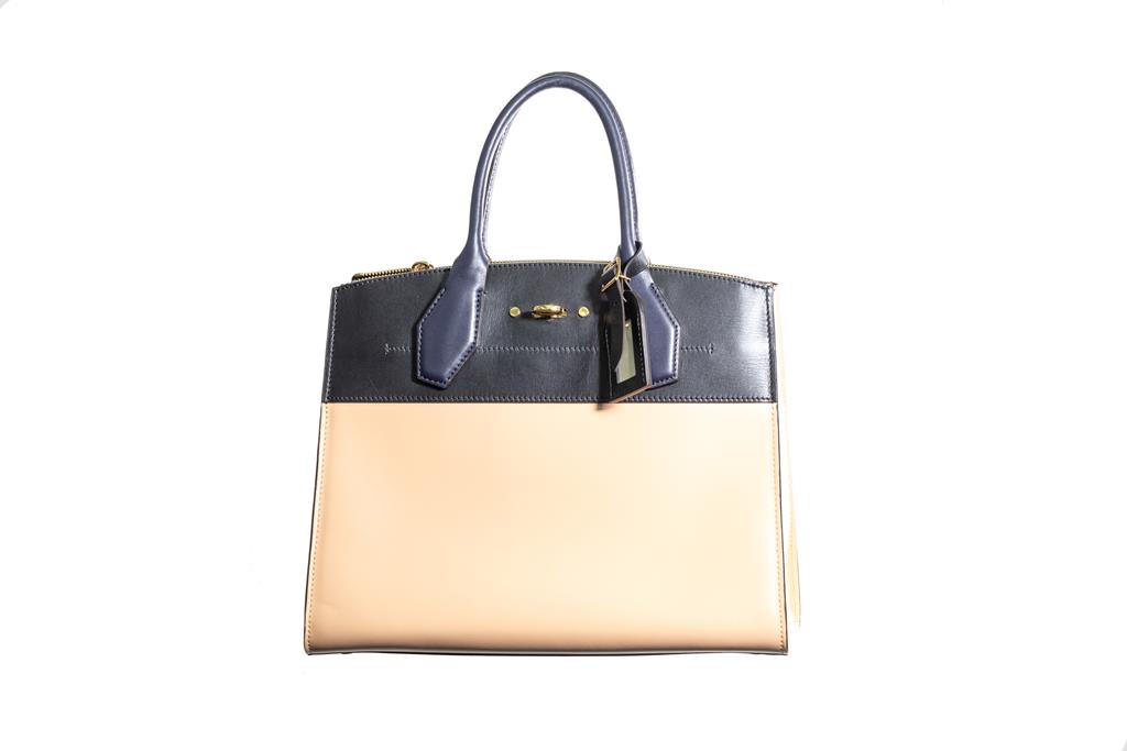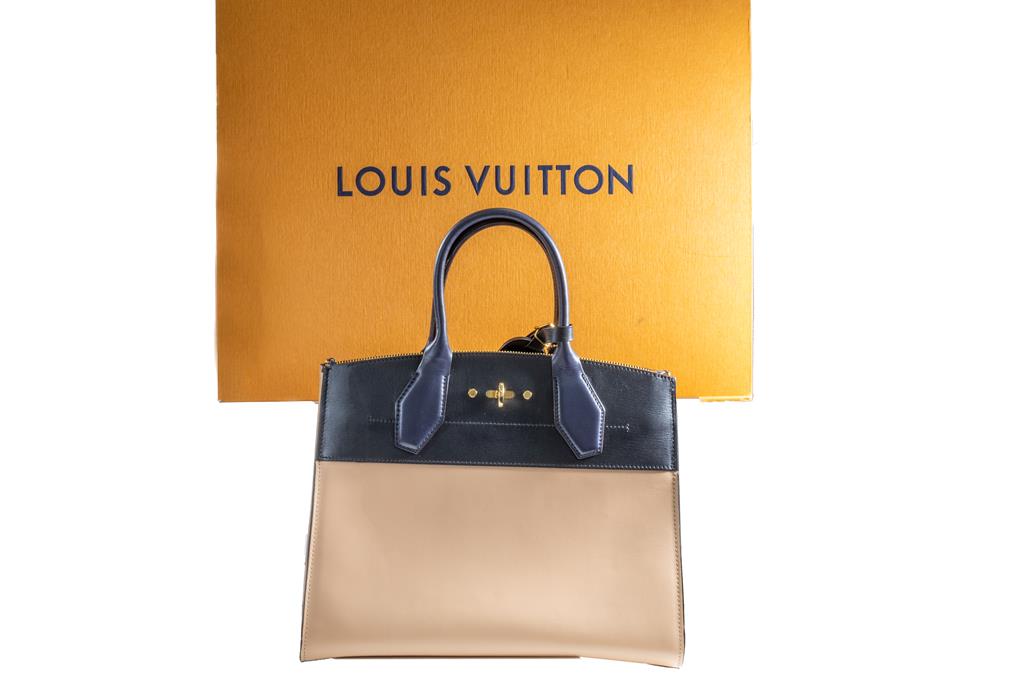 Louis Vuitton City Steamer MM Tote in Noir Beige Leather. Approximate dimensions: 31cm (L) x 25cm (H) 14cm (D) and 11cm handle height. With Entrupy Certificate of Authenticity. Accompanied by Louis Vuitton Box. (Pre-owned)