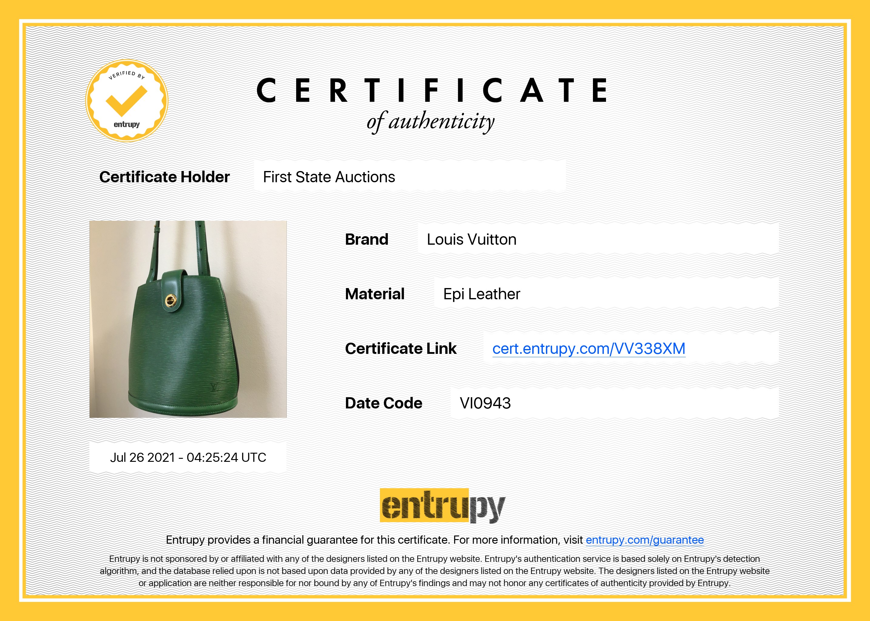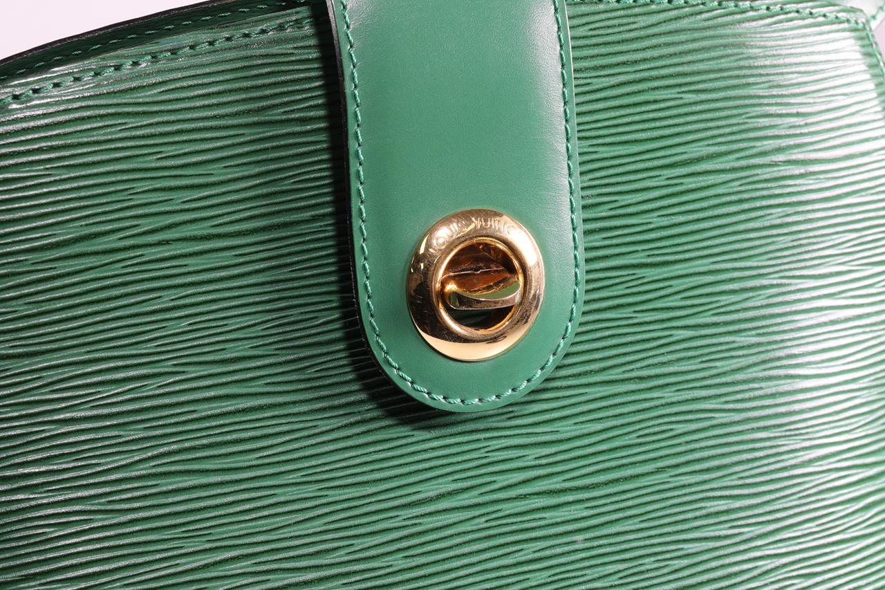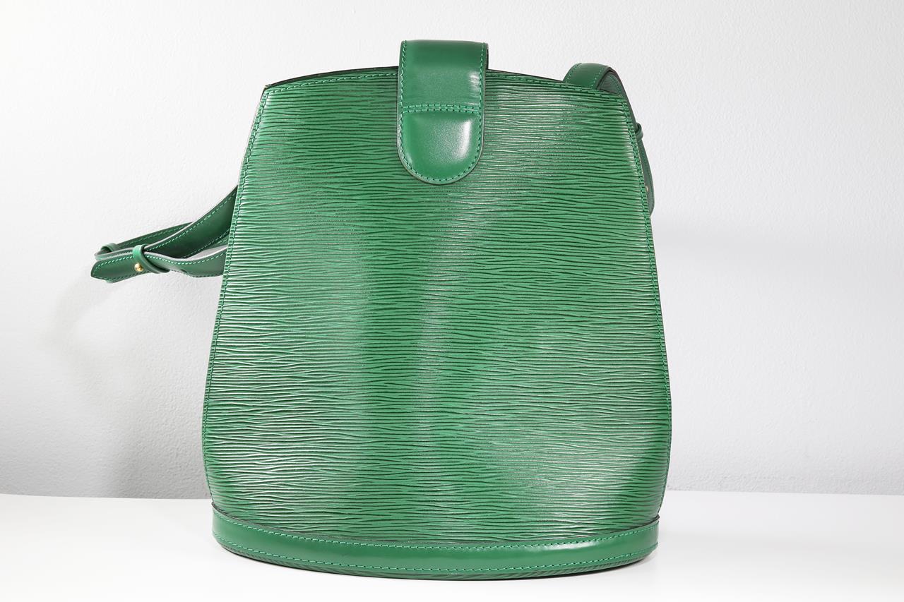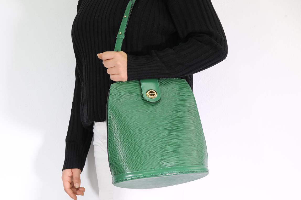 Louis Vuitton Cluny shoulder bag. Borneo green epi leather. Gold tone hardware (note minor wear to front fastner). Made in France. Design ref #M52254. Dimensions 30 x 26 x 17cm. Strap length: 88cm (adjustable). With Entrupy Certificate of Authenticity. (Pre-owned)