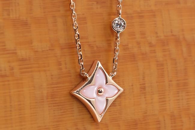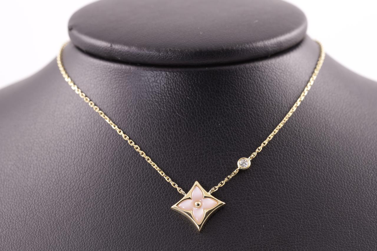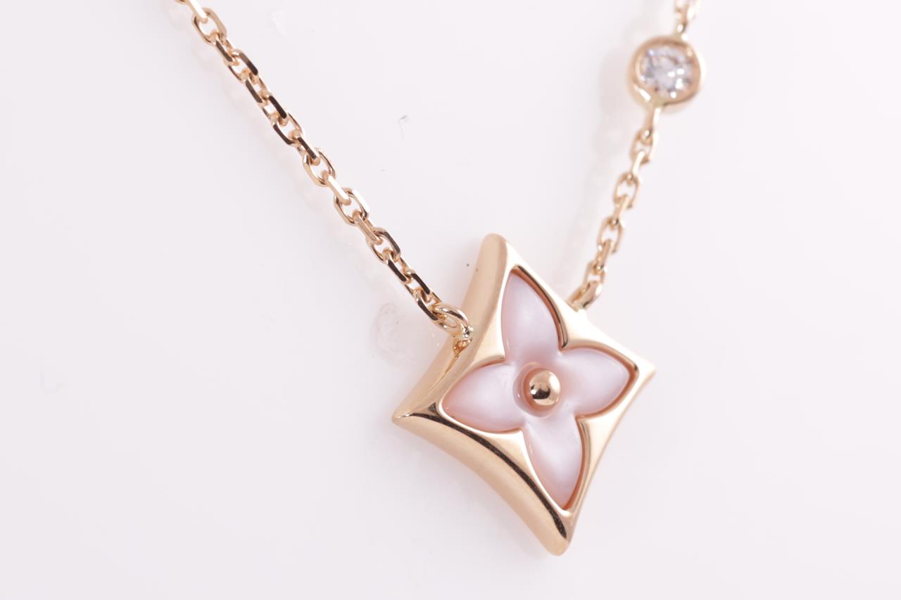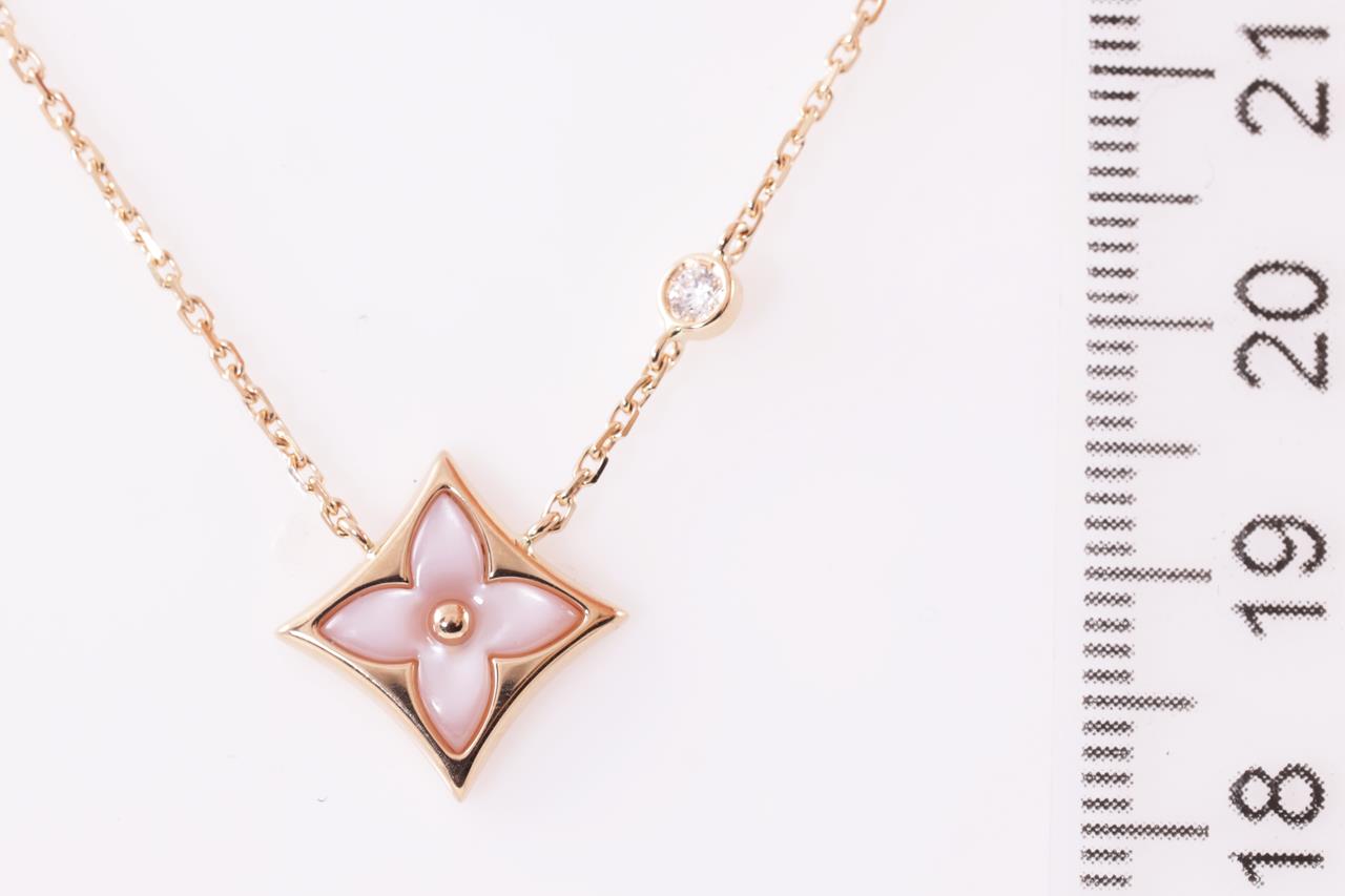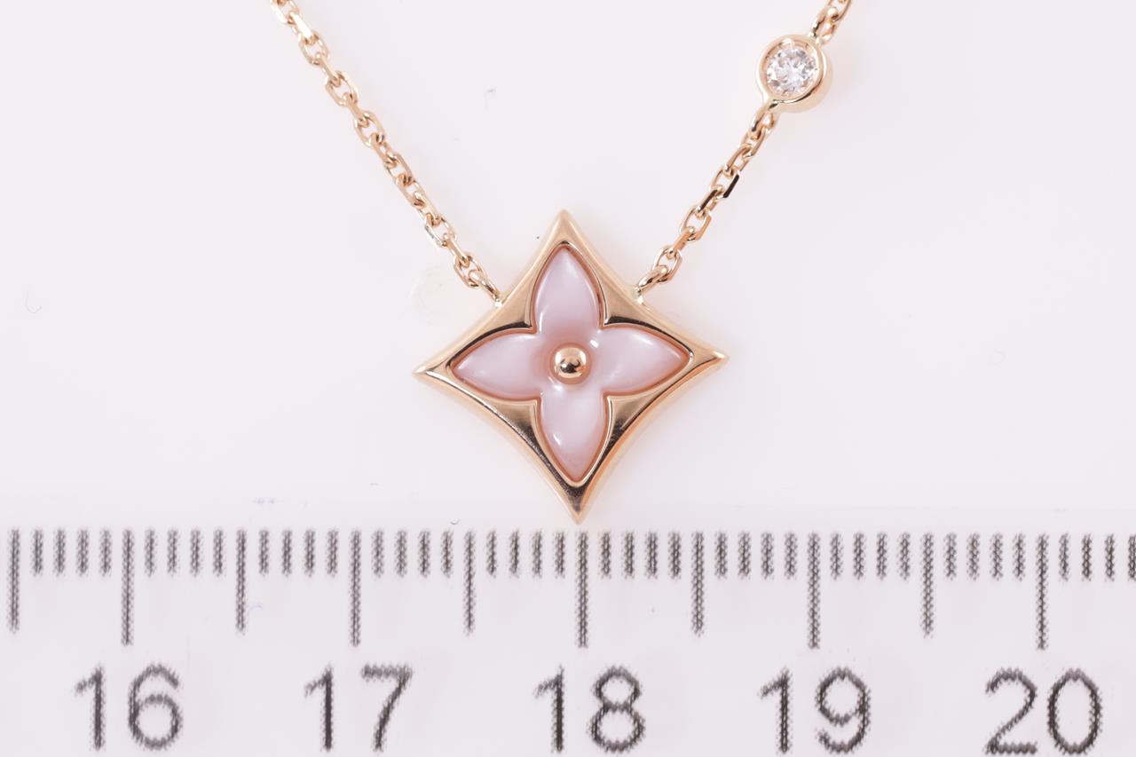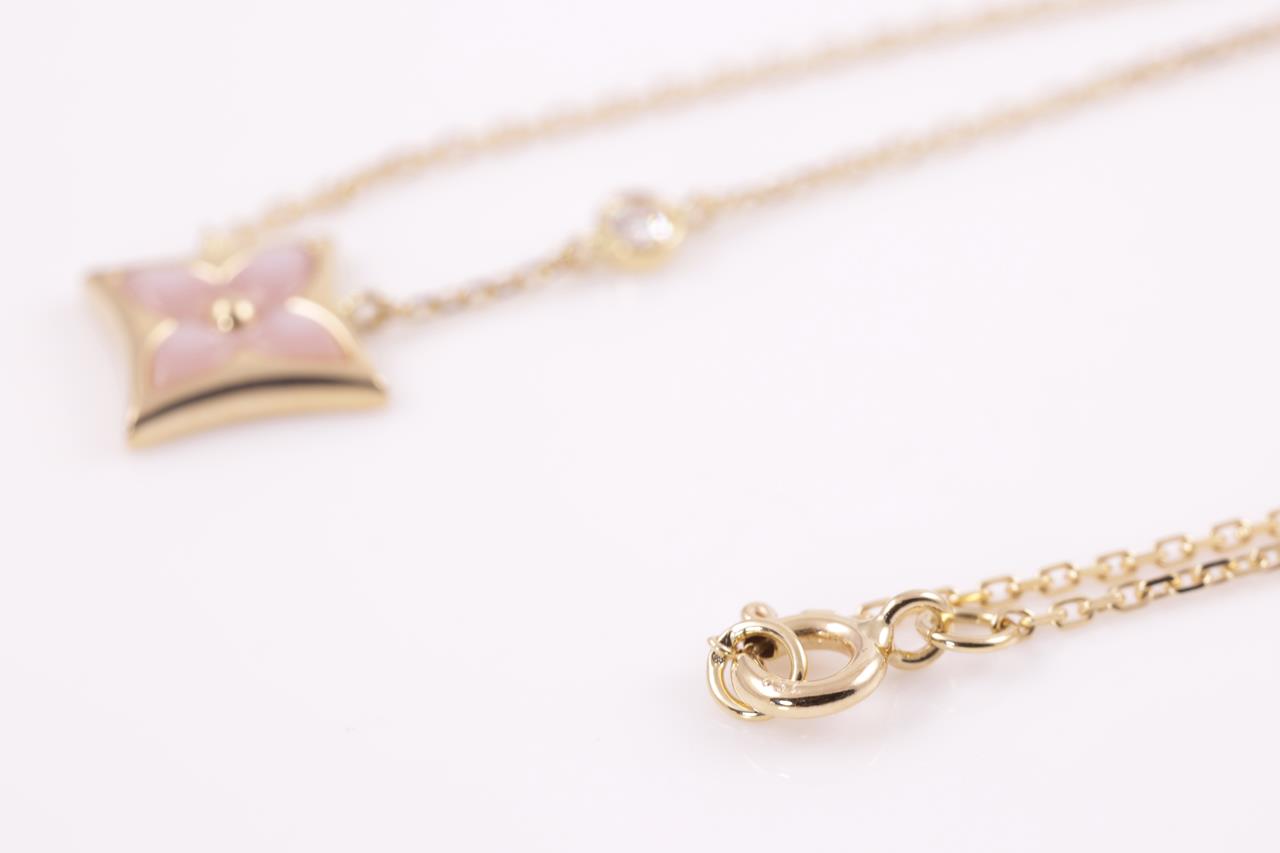 Louis Vuitton Colour Blossom BB Star pendant with pink Mother of Pearl and a round Diamond of 0.04ct. 18ct rose gold. Length: 41cm. Weight: 3.7g. Made in France. (Pre-owned)