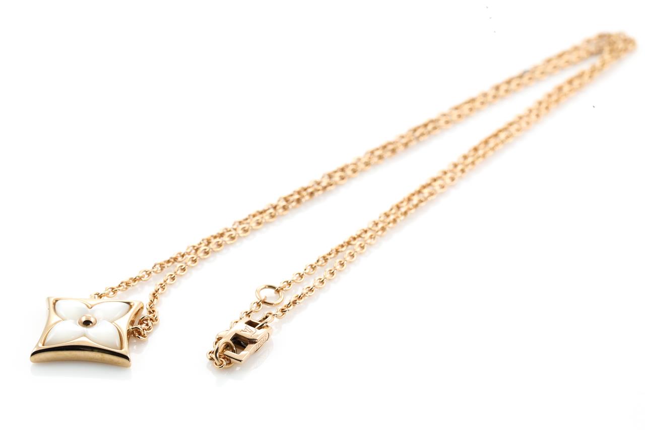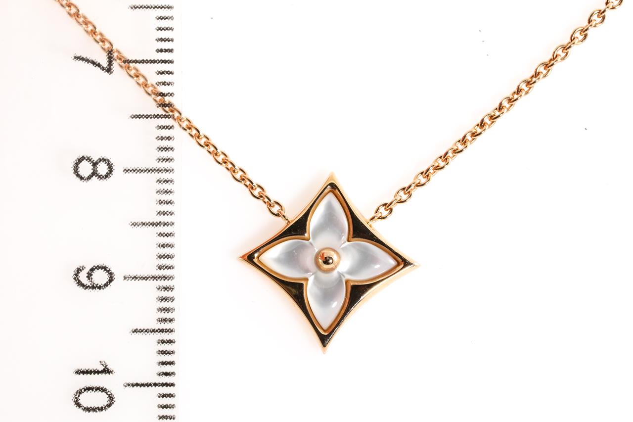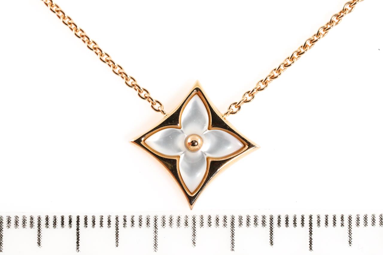 Louis Vuitton Colour Blossom Star pendant with white Mother of Pearl. 18ct rose gold with attached chain. Adjustable max length: 41cm. Made in France. Weight: 6.3g. (Pre-owned)