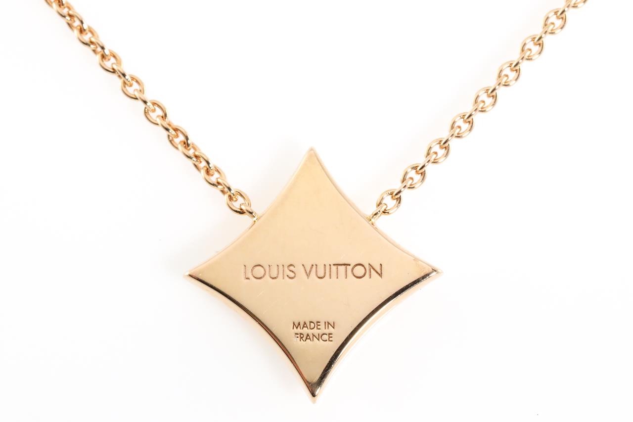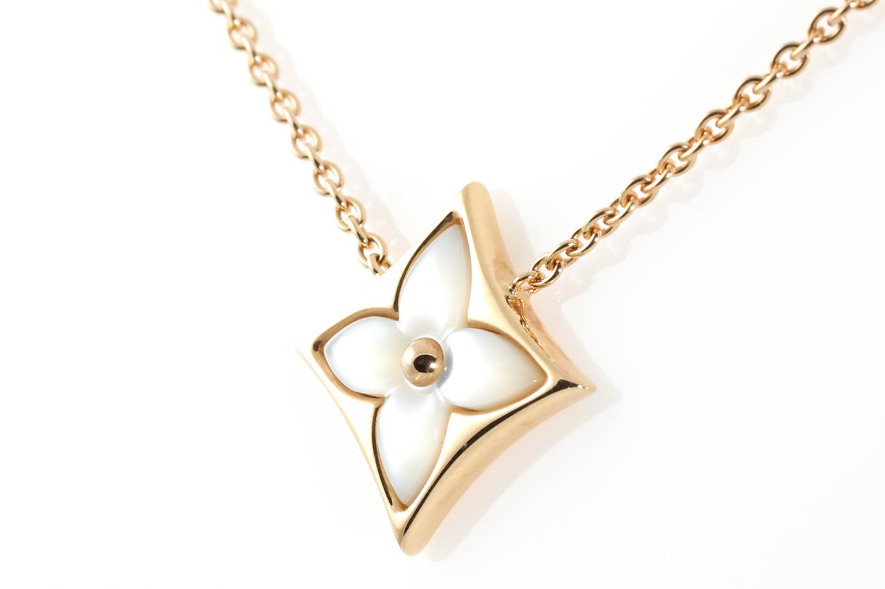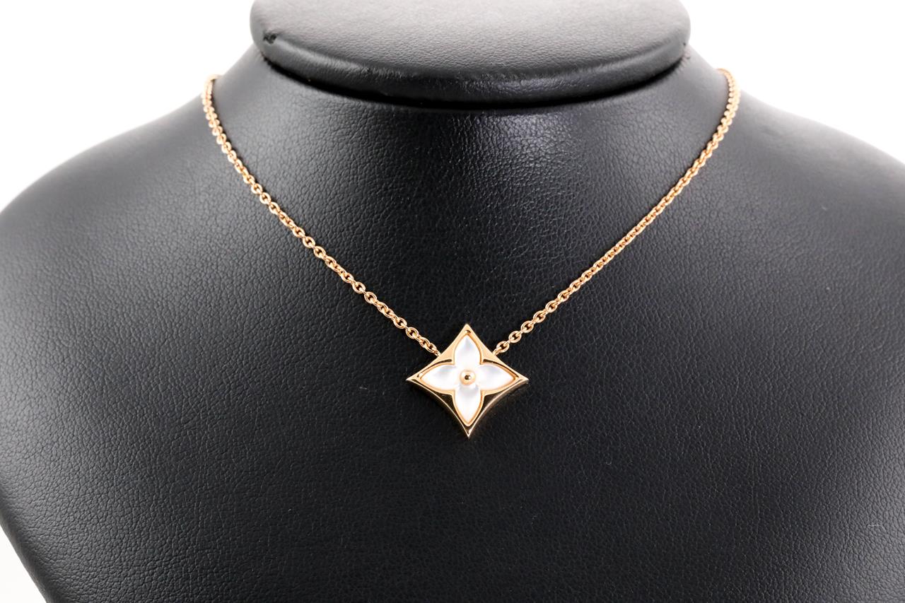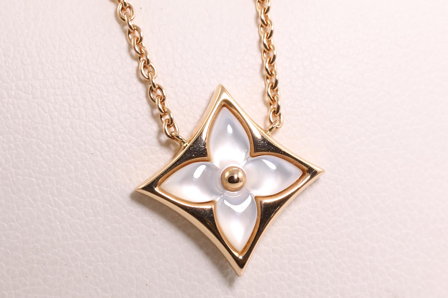 Louis Vuitton Colour Blossom Star pendant with white Mother of Pearl. 18ct rose gold with attached chain. Adjustable max length: 41cm. Made in France. Weight: 6.3g. (Pre-owned)