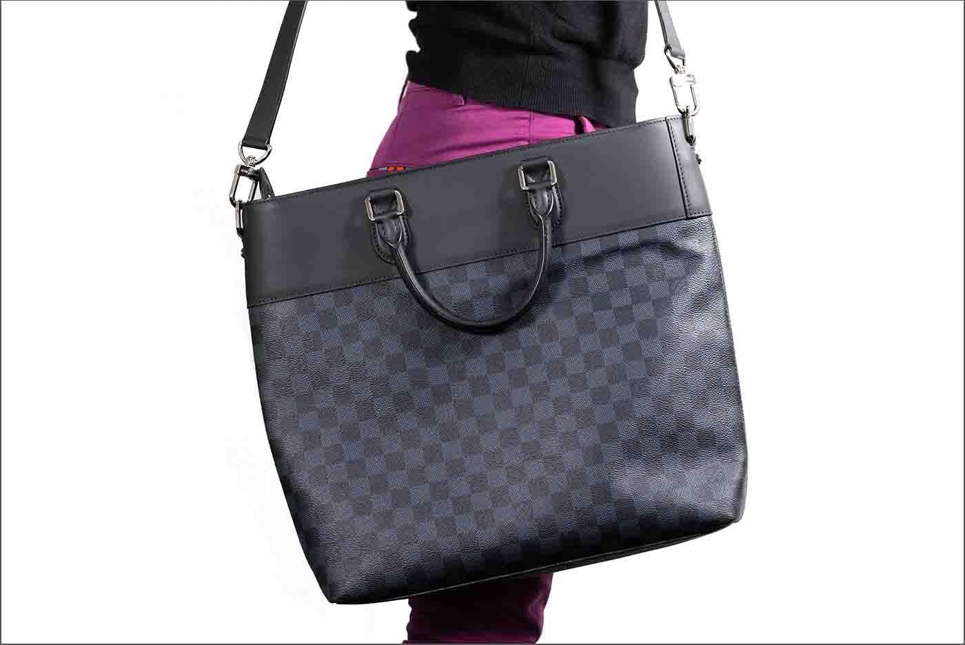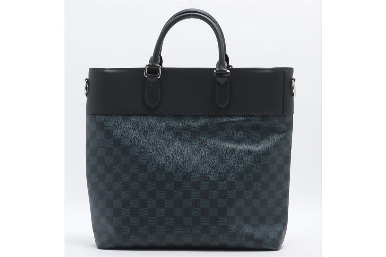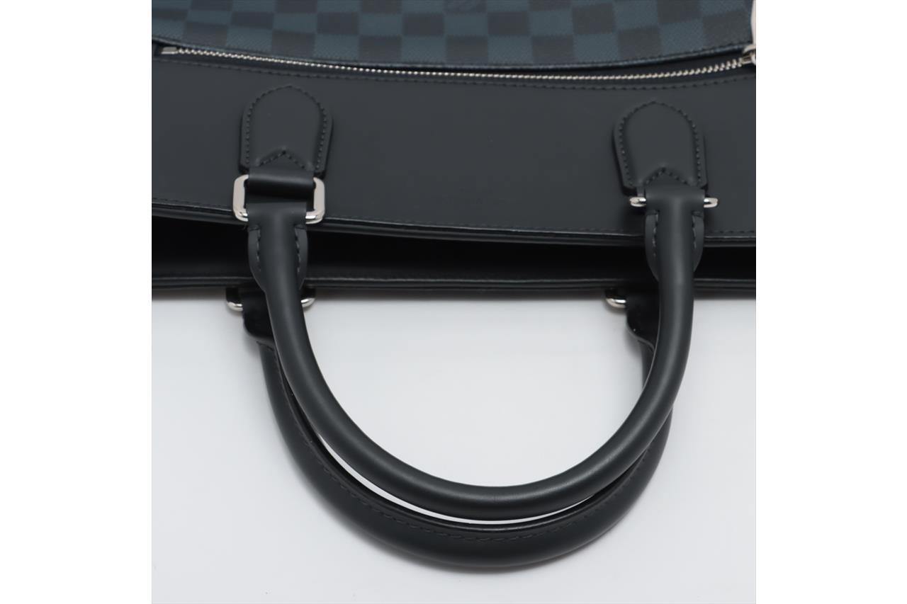 Louis Vuitton Damier Cobalt Newport Tote. Featuring blue Damier canvas exterior, black leather trim, silver-tone hardware, a zipped pocket at front, suede lined interior with four pockets, and a top zip closure. Approximate dimensions: 34.5cm (L) x 35.5cm (H) x 8.5cm (D), 11cm handle drop, and 52cm adjustable and detachable shoulder strap drop. Accompanied by Louis Vuitton dust bag. With Entrupy Certificate of Authenticity. (Pre-owned)