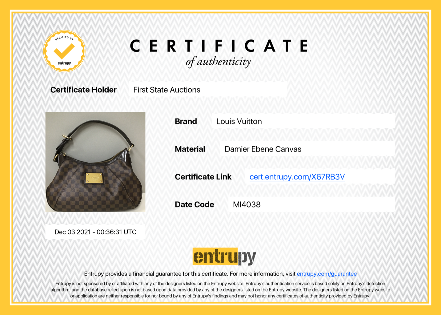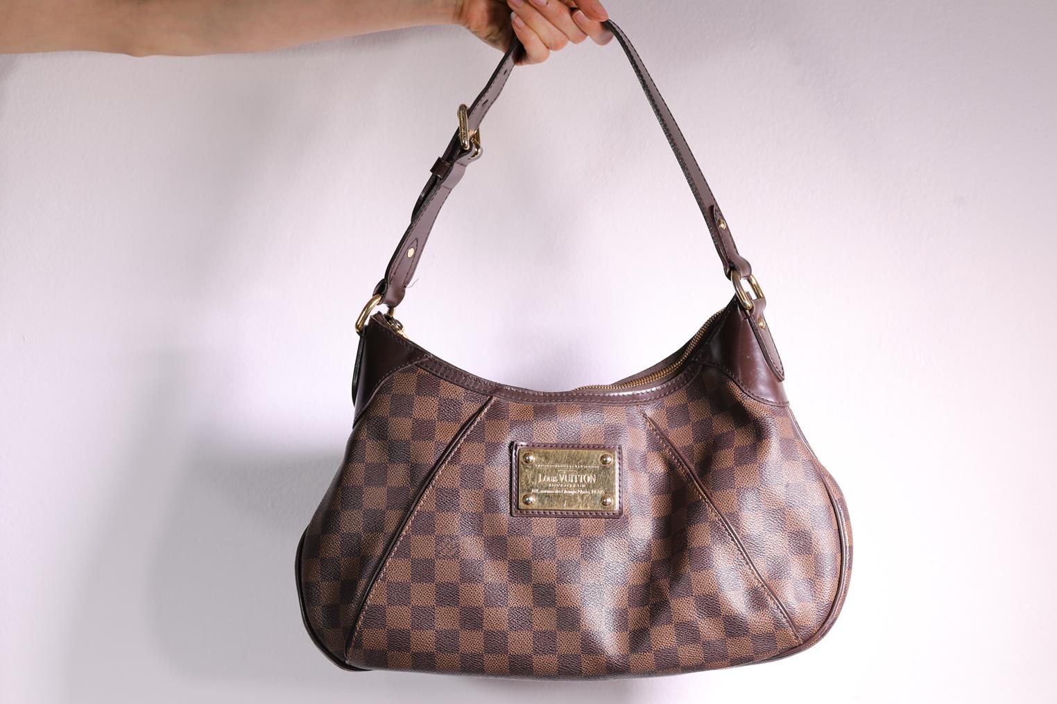 Louis Vuitton Damier Themes Bag. Coated canvas body with gold plaque and zippered top. Red fabric lining. Approximate dimensions: 40cm (L) x 25cm (H) x 6cm (D). With Entrupy Certificate of Authenticity. (Pre-owned)