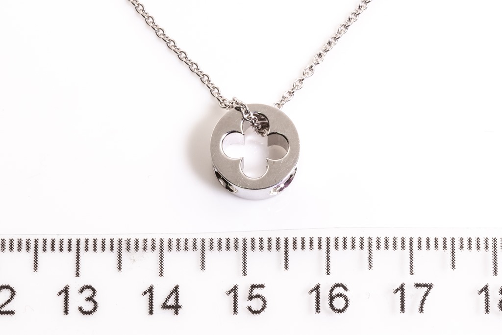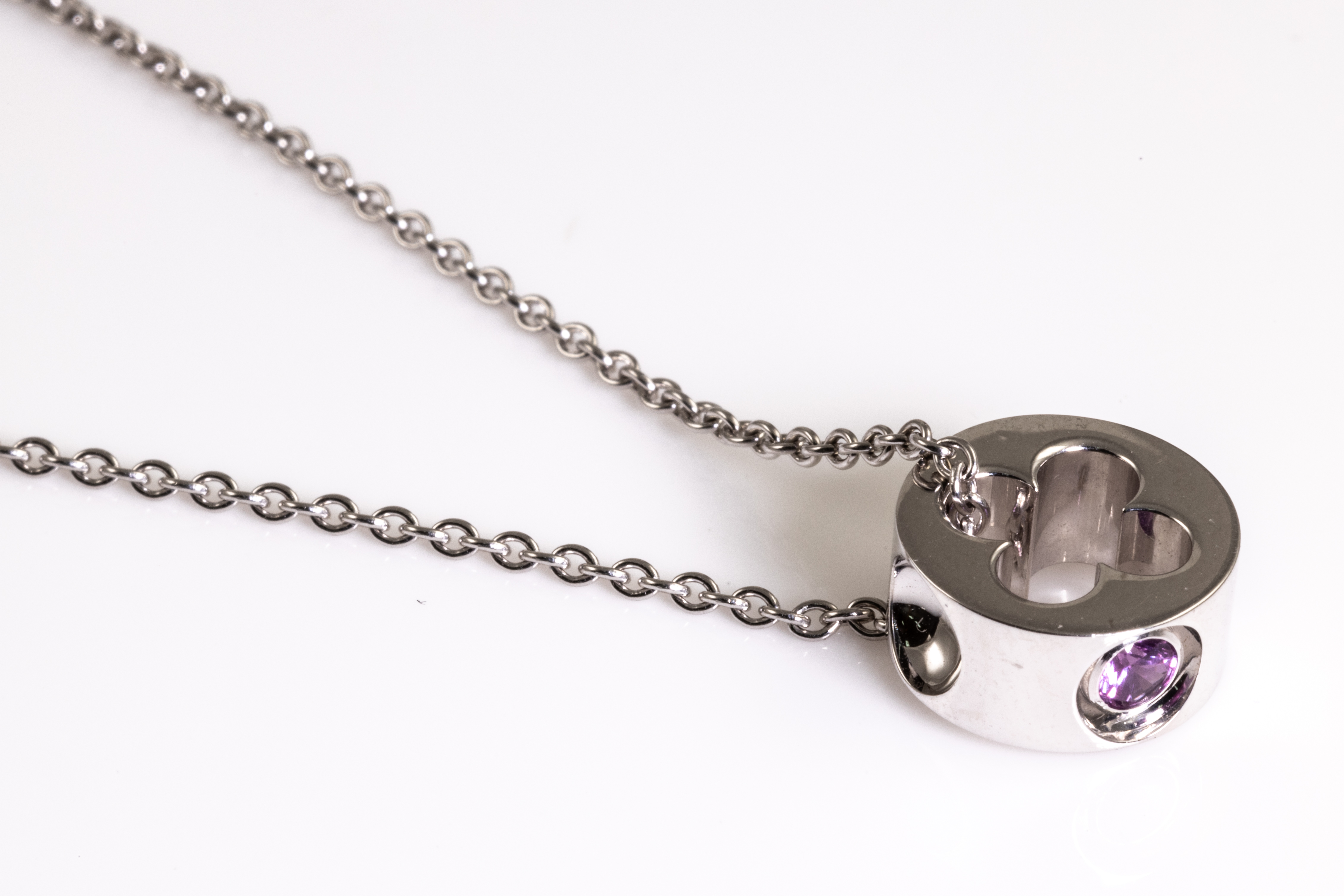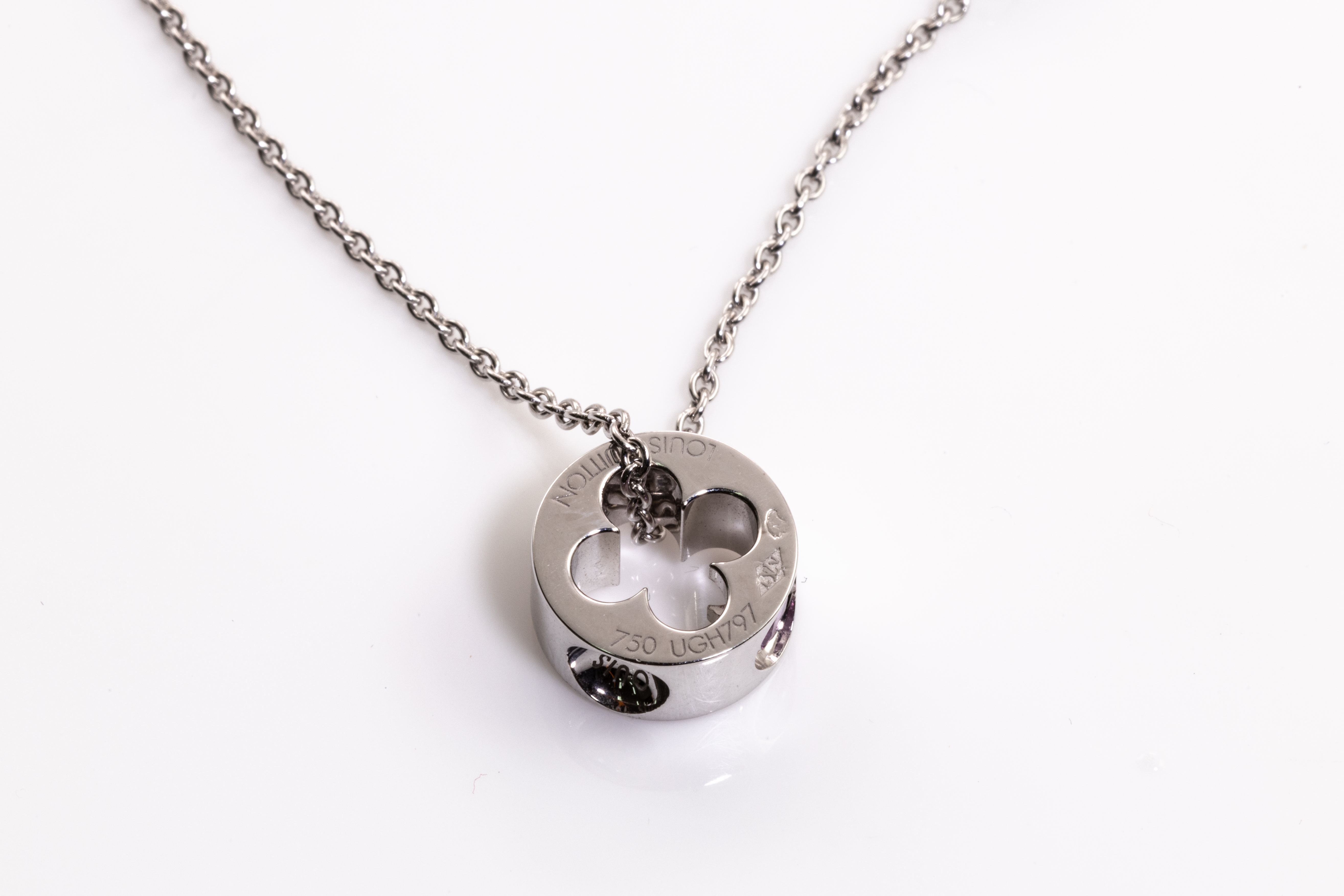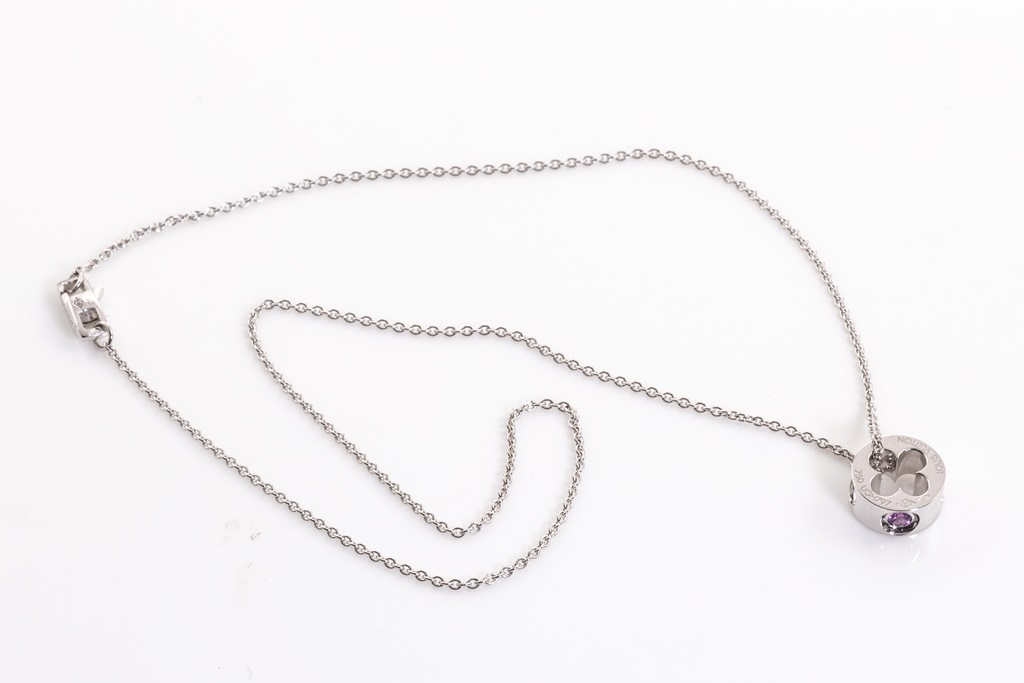 Louis Vuitton Empreinte pendant with a round pink Sapphire of approximately 0.10ct. 18ct white gold with 40cm 18ct white gold Louis Vuitton chain. Weight: 6.5g. With Louis Vuitton pouch. (Pre-owned)