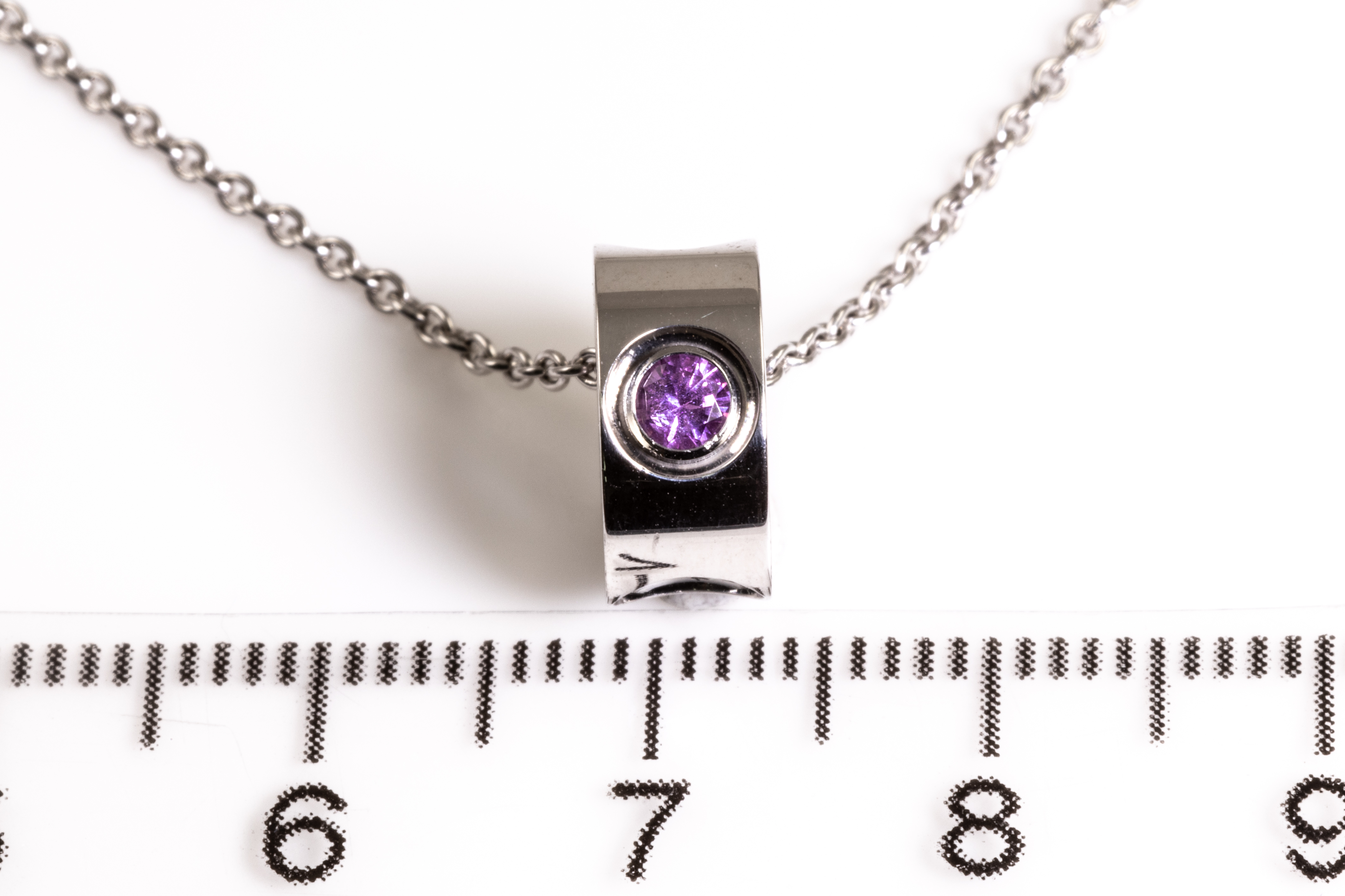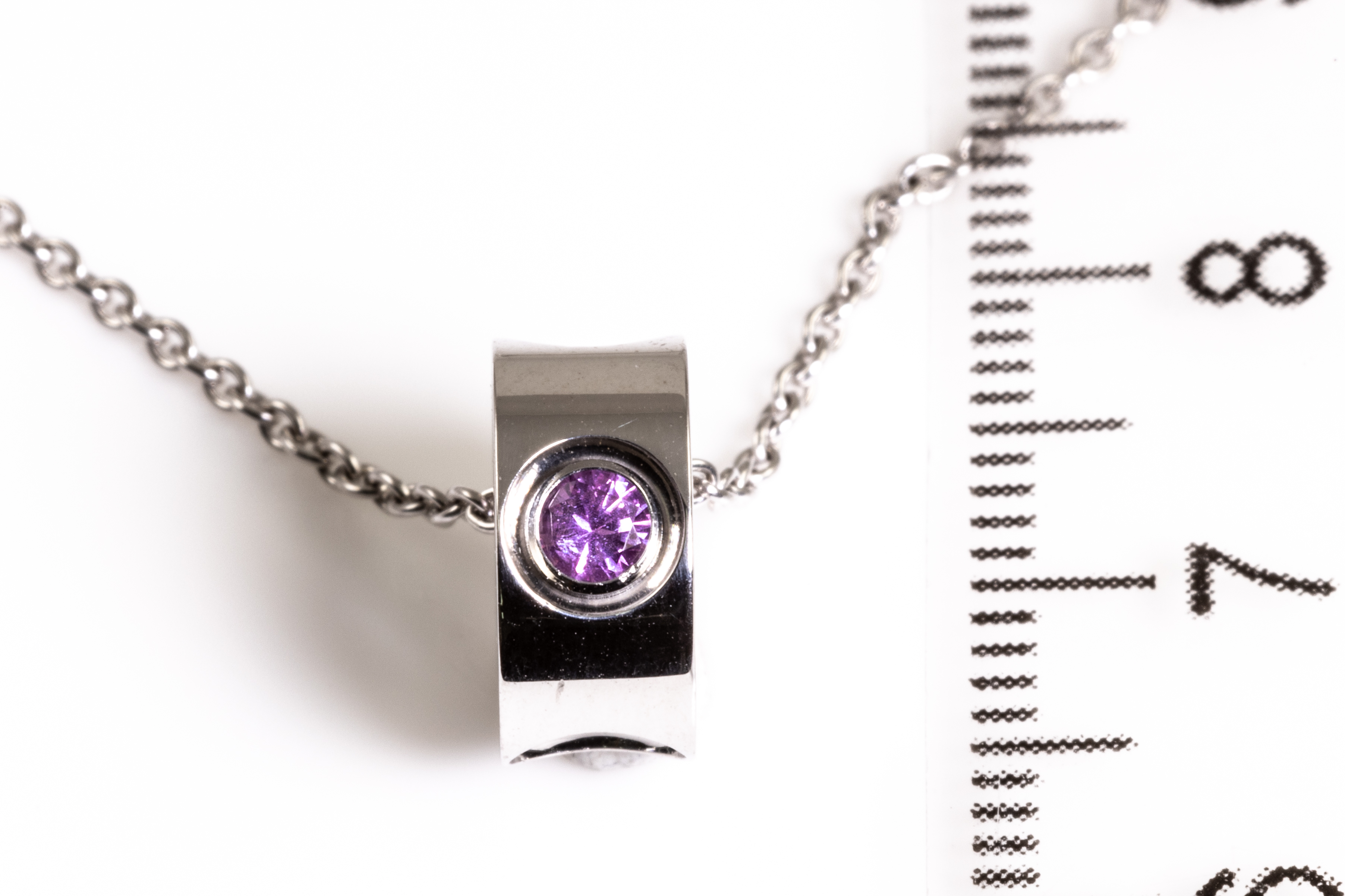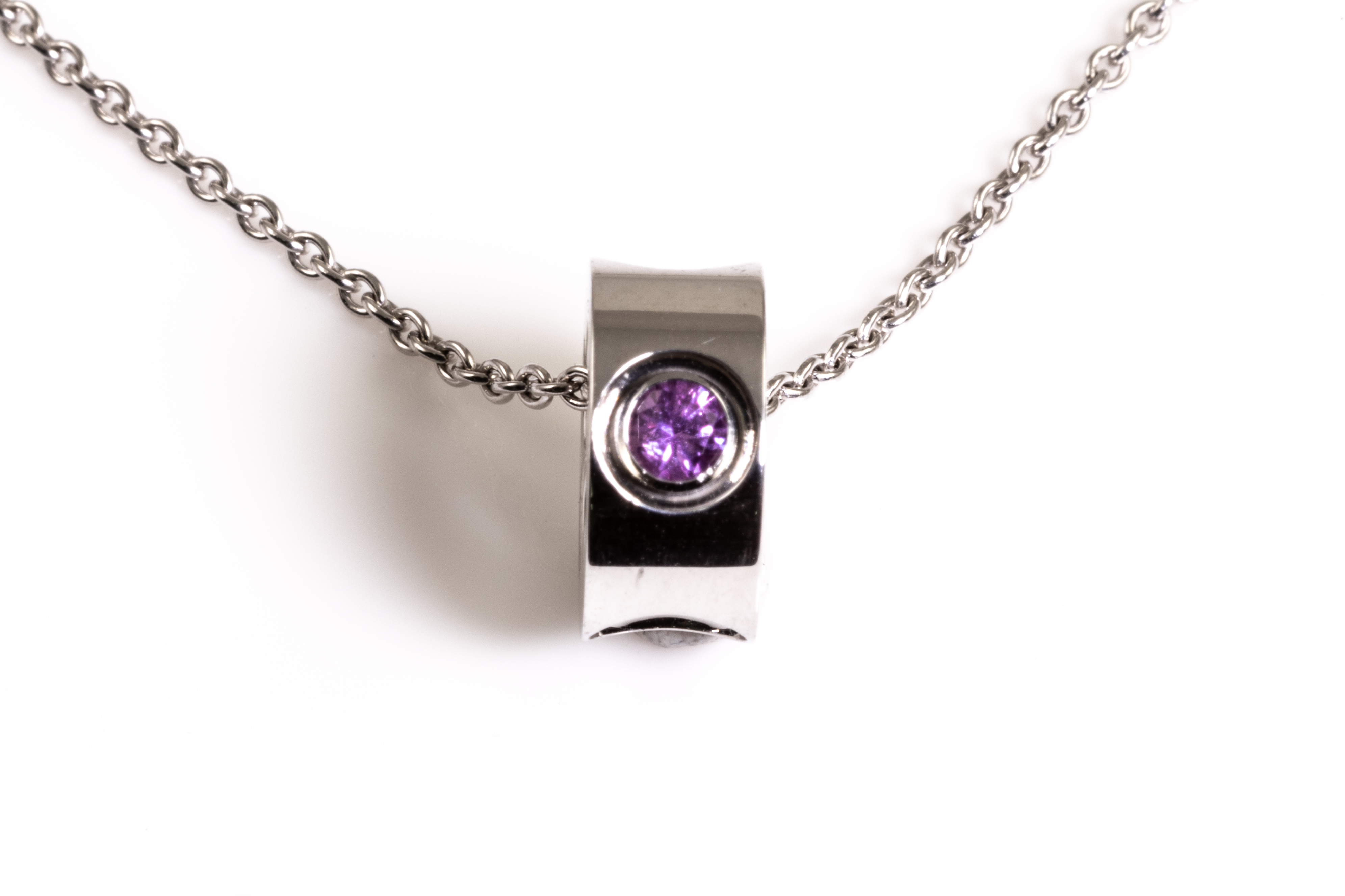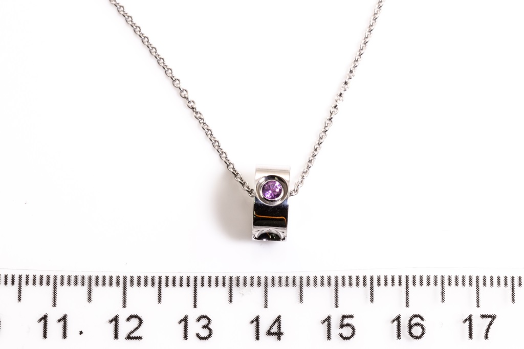 Louis Vuitton Empreinte pendant with a round pink Sapphire of approximately 0.10ct. 18ct white gold with 40cm 18ct white gold Louis Vuitton chain. Weight: 6.5g. With Louis Vuitton pouch. (Pre-owned)