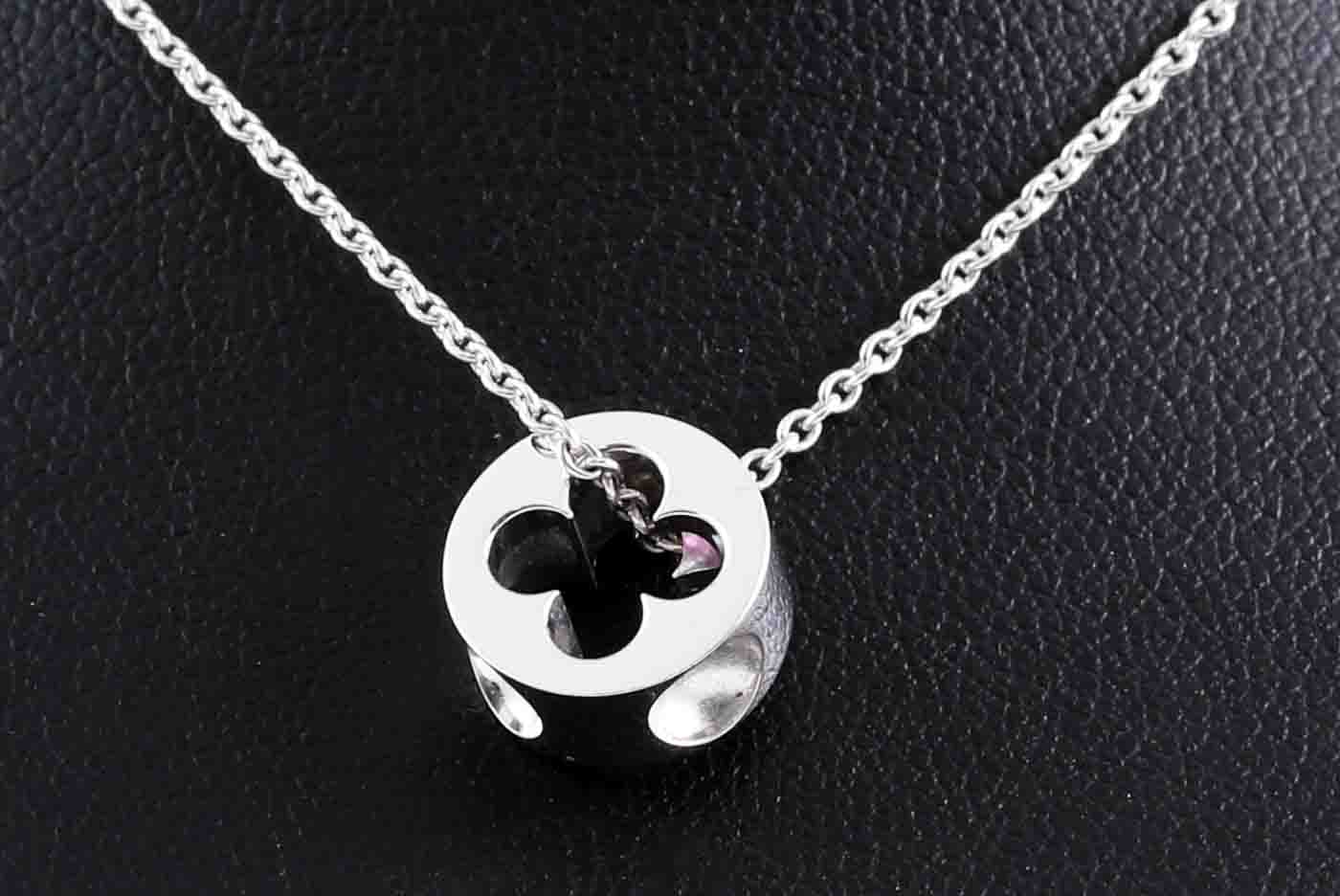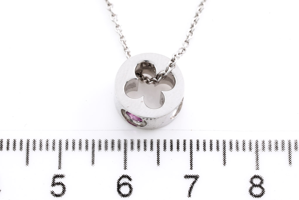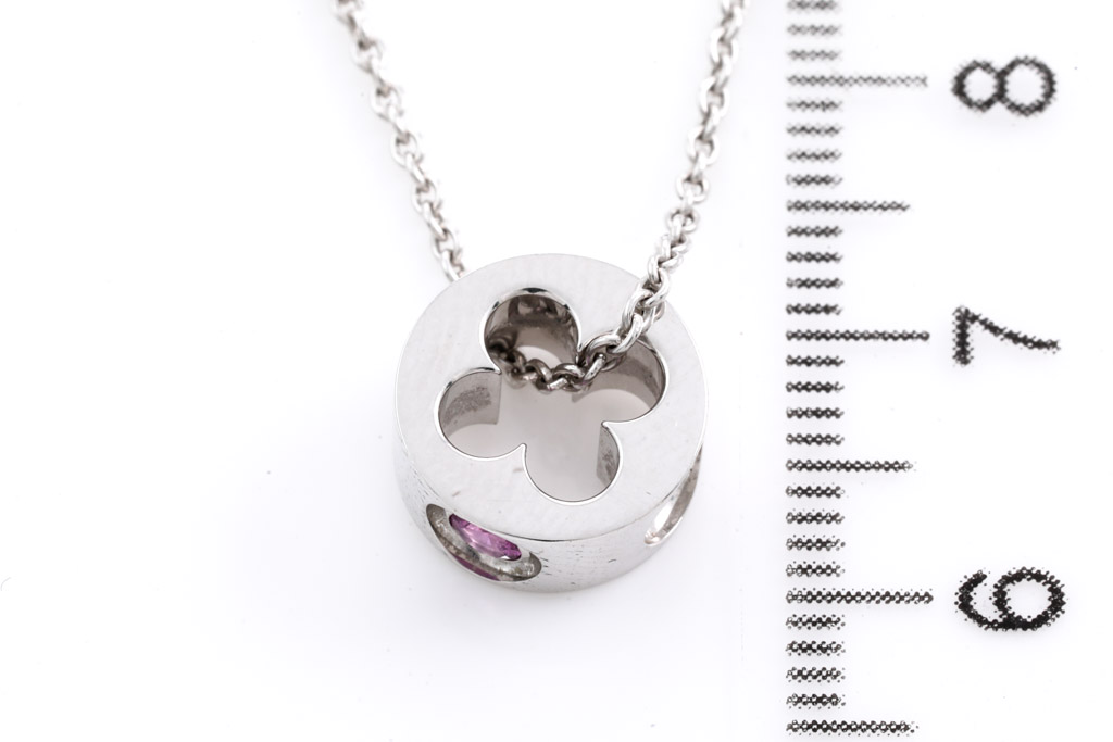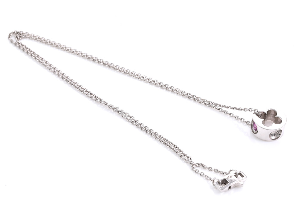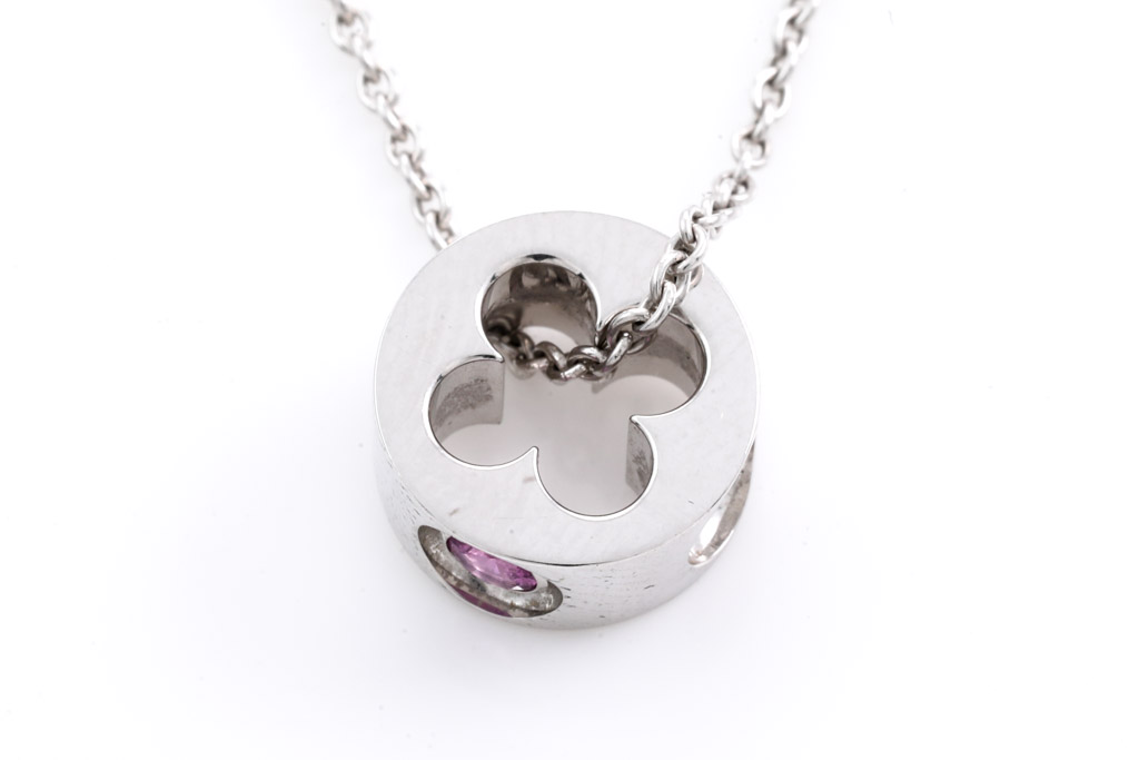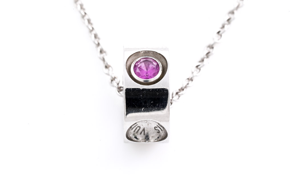Louis Vuitton Empreinte pendant with a round pink Sapphire of approximately 0.10ct. 18ct white gold with 40cm 18ct white gold Louis Vuitton chain. Pendant size: 10.8 x 10.8 x 5.5mm. Weight: 6.5g. With Louis Vuitton pouch. (Pre-owned)