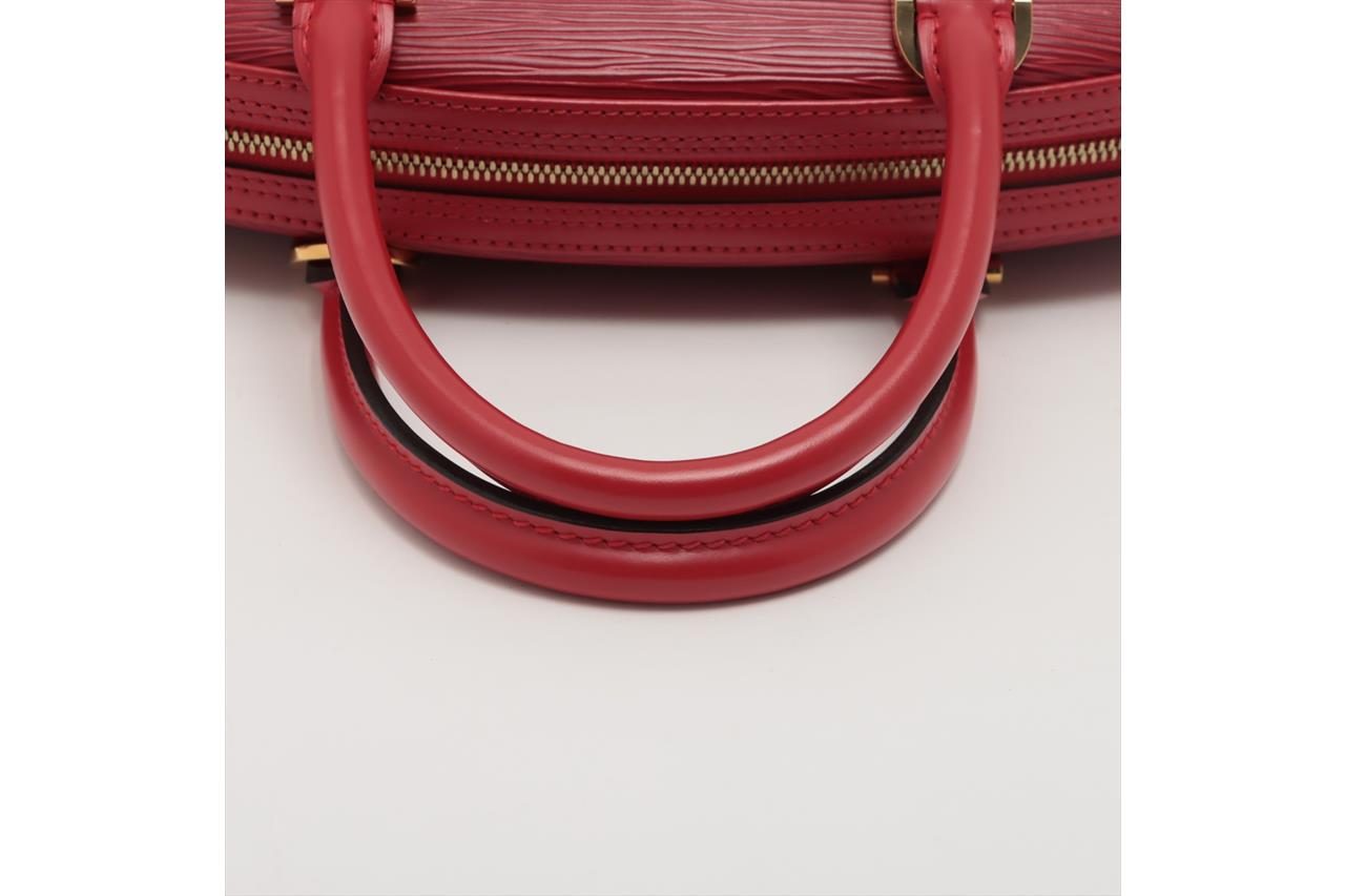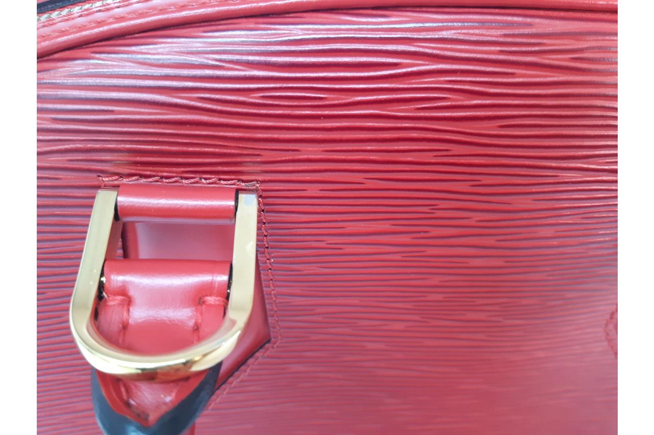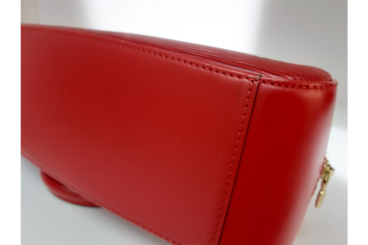 Louis Vuitton Jasmine bag in Rouge Epi leather. Featuring dual rolled leather handles, gold tone hardware, two way zipper closure. The top opens to a red microfiber lined interior with one patch pocket. Approximate dimensions: 31.5cm(L) x 17cm(H) 10cm(D), 10cm handle drop. With Entrupy Certificate of Authenticity. (Pre-owned)