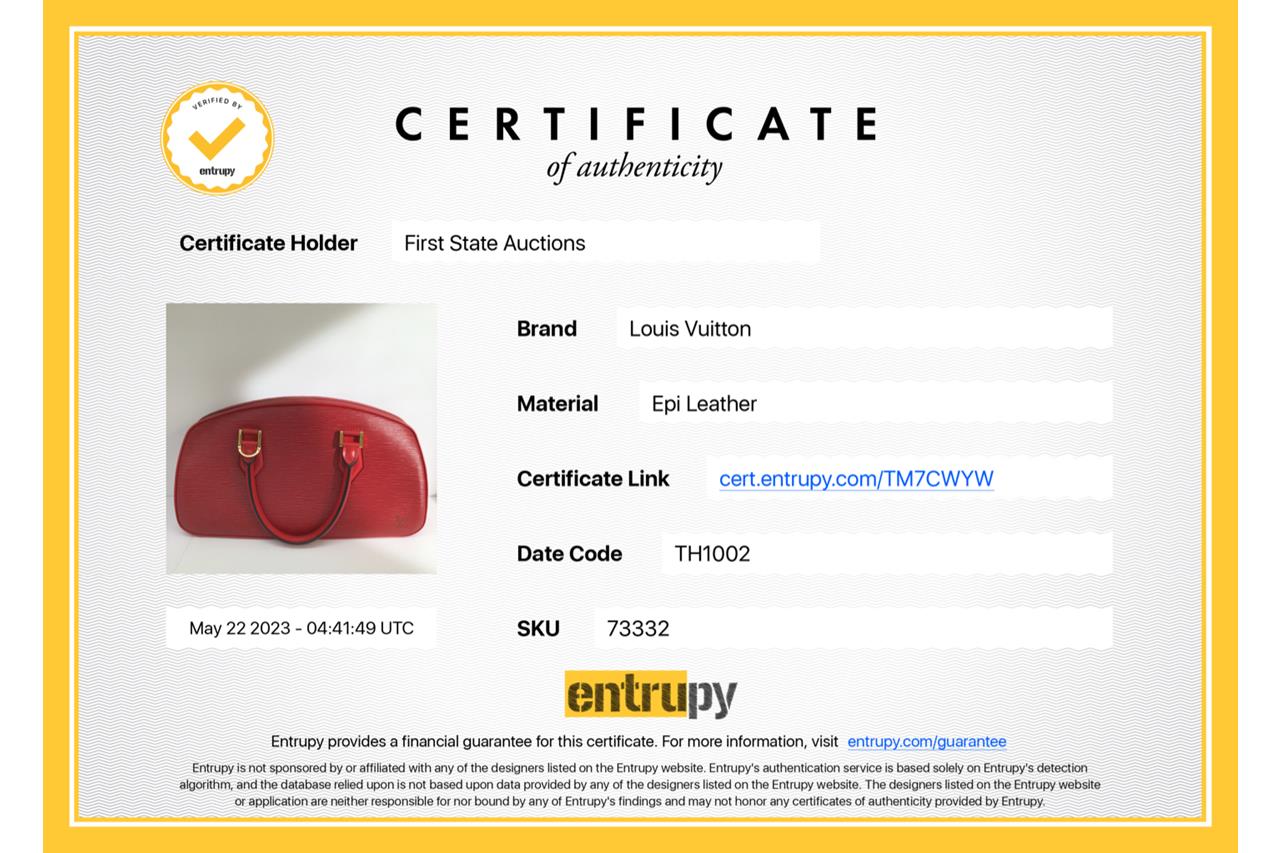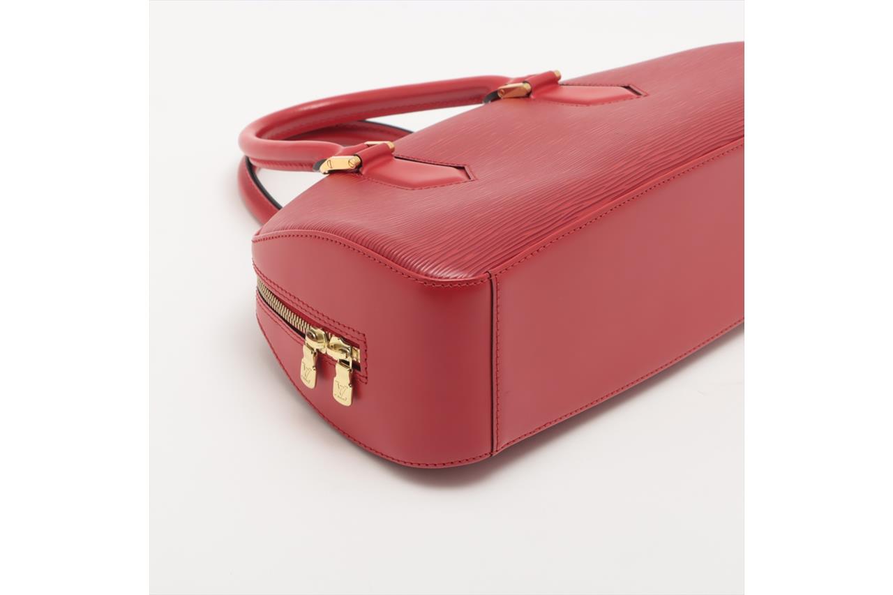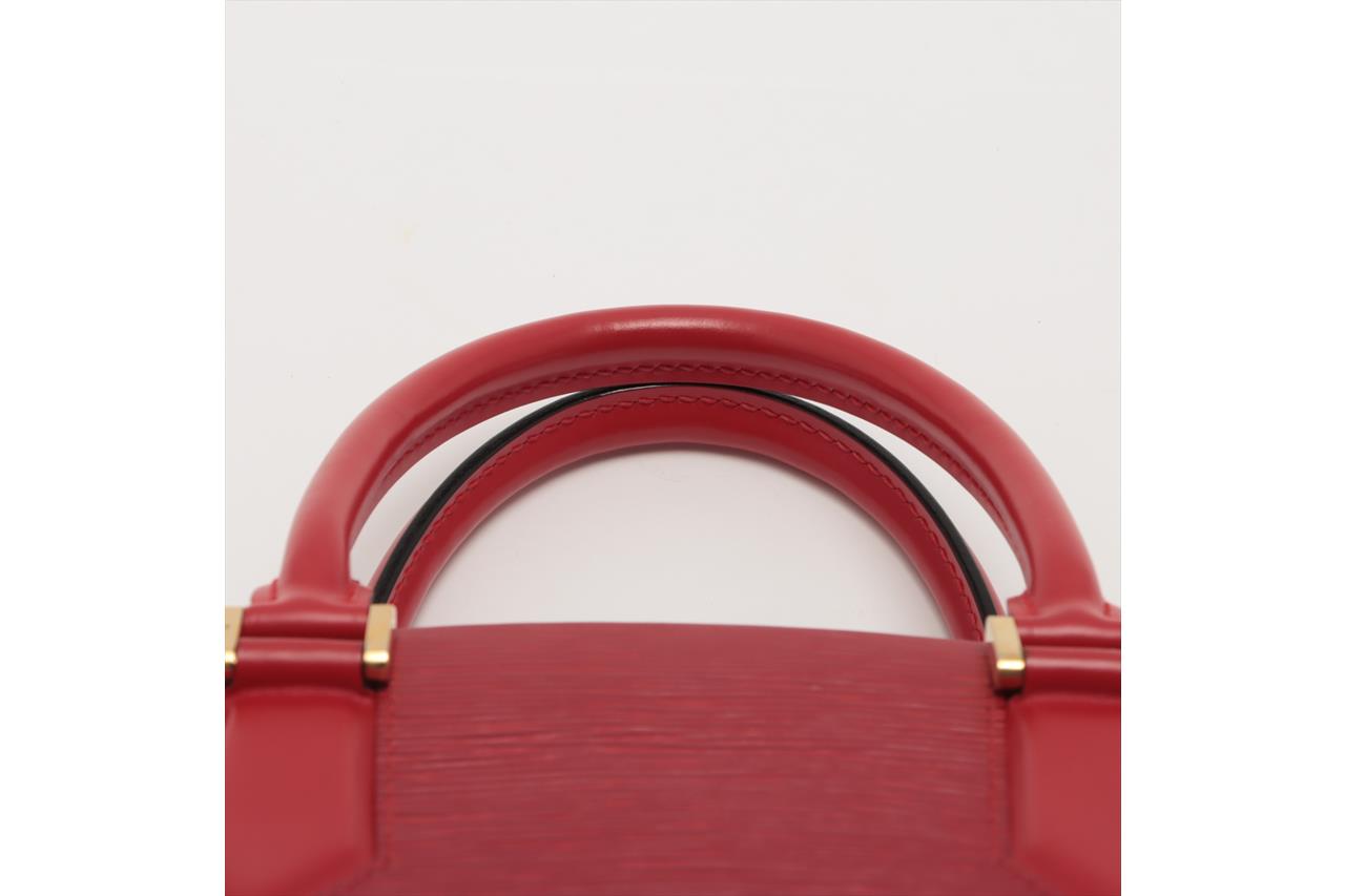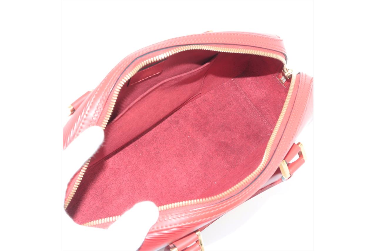 Louis Vuitton Jasmine bag in Rouge Epi leather. Featuring dual rolled leather handles, gold tone hardware, two way zipper closure. The top opens to a red microfiber lined interior with one patch pocket. Approximate dimensions: 31.5cm(L) x 17cm(H) 10cm(D), 10cm handle drop. With Entrupy Certificate of Authenticity. (Pre-owned)