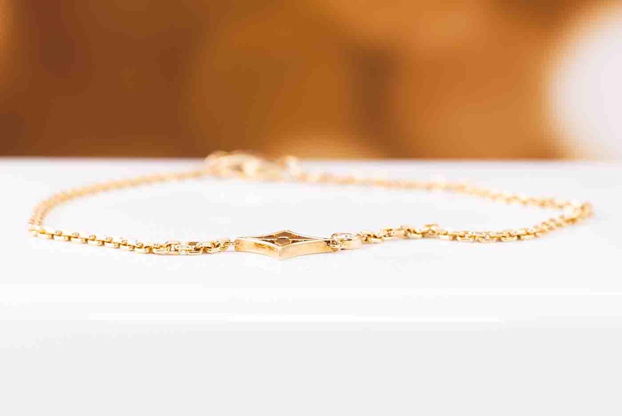 Louis Vuitton Idylle Blossom bracelet with one round Diamond of 0.03ct. 18ct yellow gold. Length: 17.5cm. Weight: 3.1g. With Louis Vuitton box. (Pre-owned)