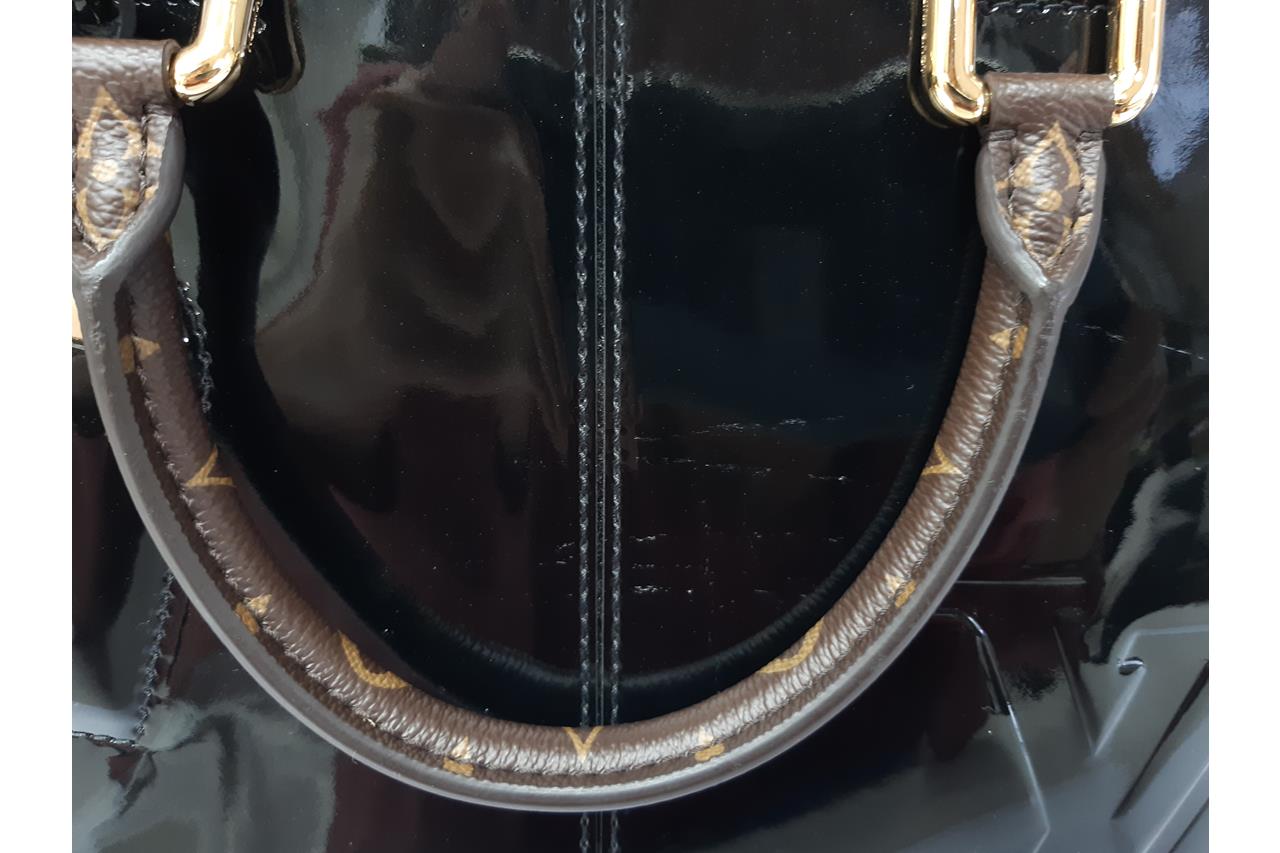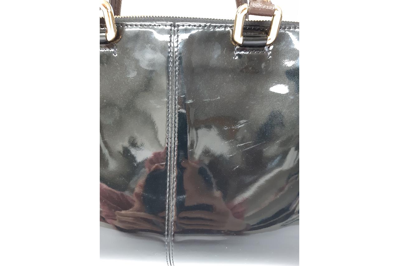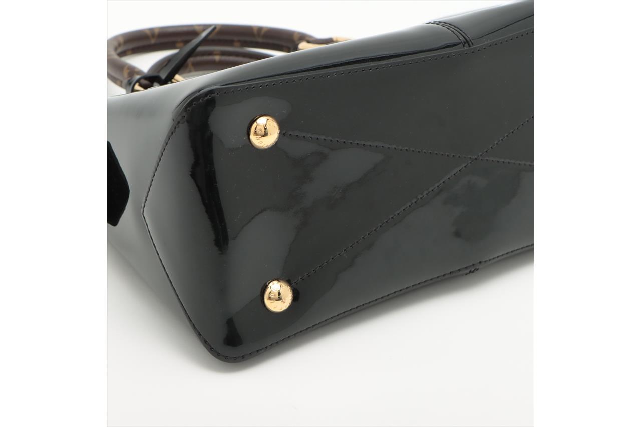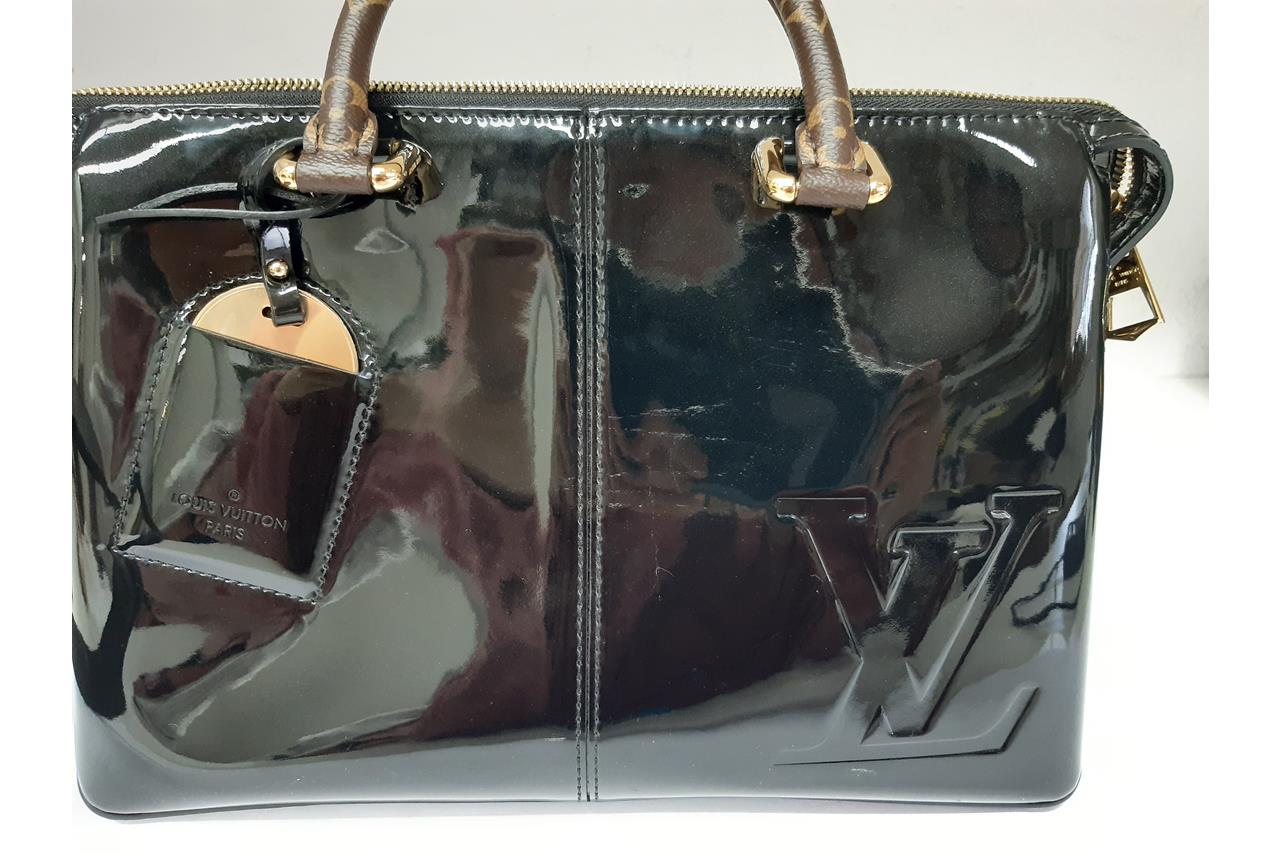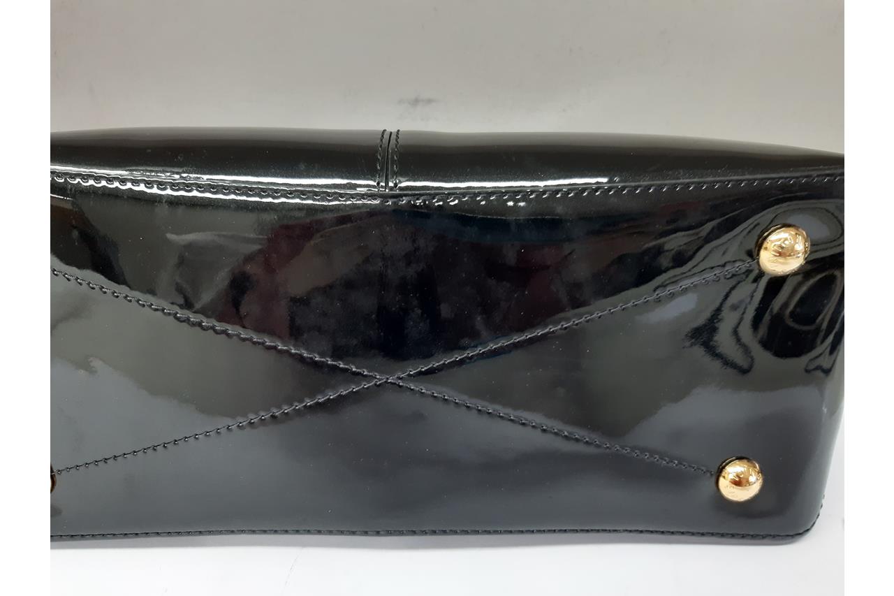 Louis Vuitton Miroir Tote Bag. Featuring black Vernis and Monogram canvas exterior, gold-tone hardware, canvas lining and a top zip closure. Approximate dimensions: 31cm (L) x 21cm (H) x 13cm (D), 11cm handle drop, and 39cm detachable strap. Accompanied by purchase receipt, LV cleaning cloth, booklet, and dust bag. With Entrupy Certificate of Authenticity. (Pre-owned)