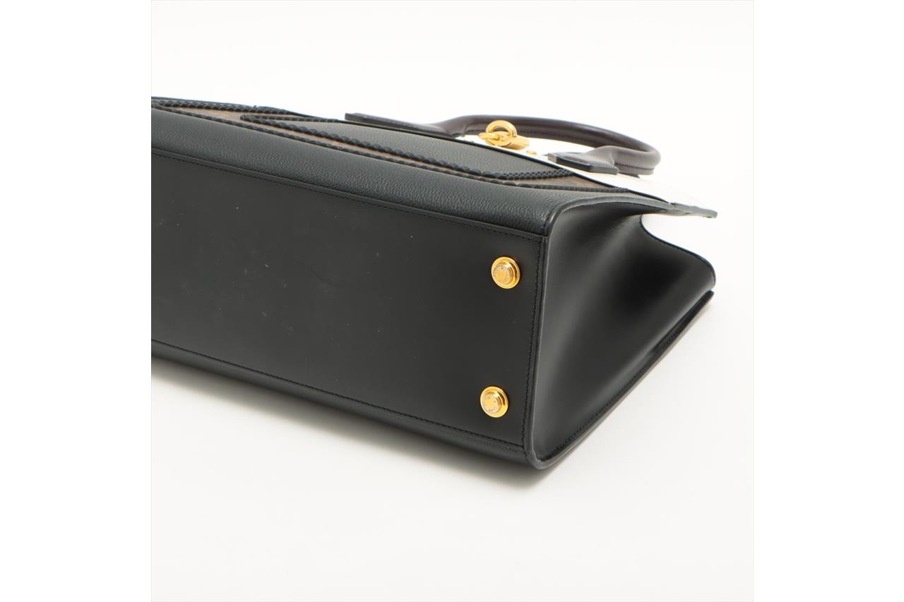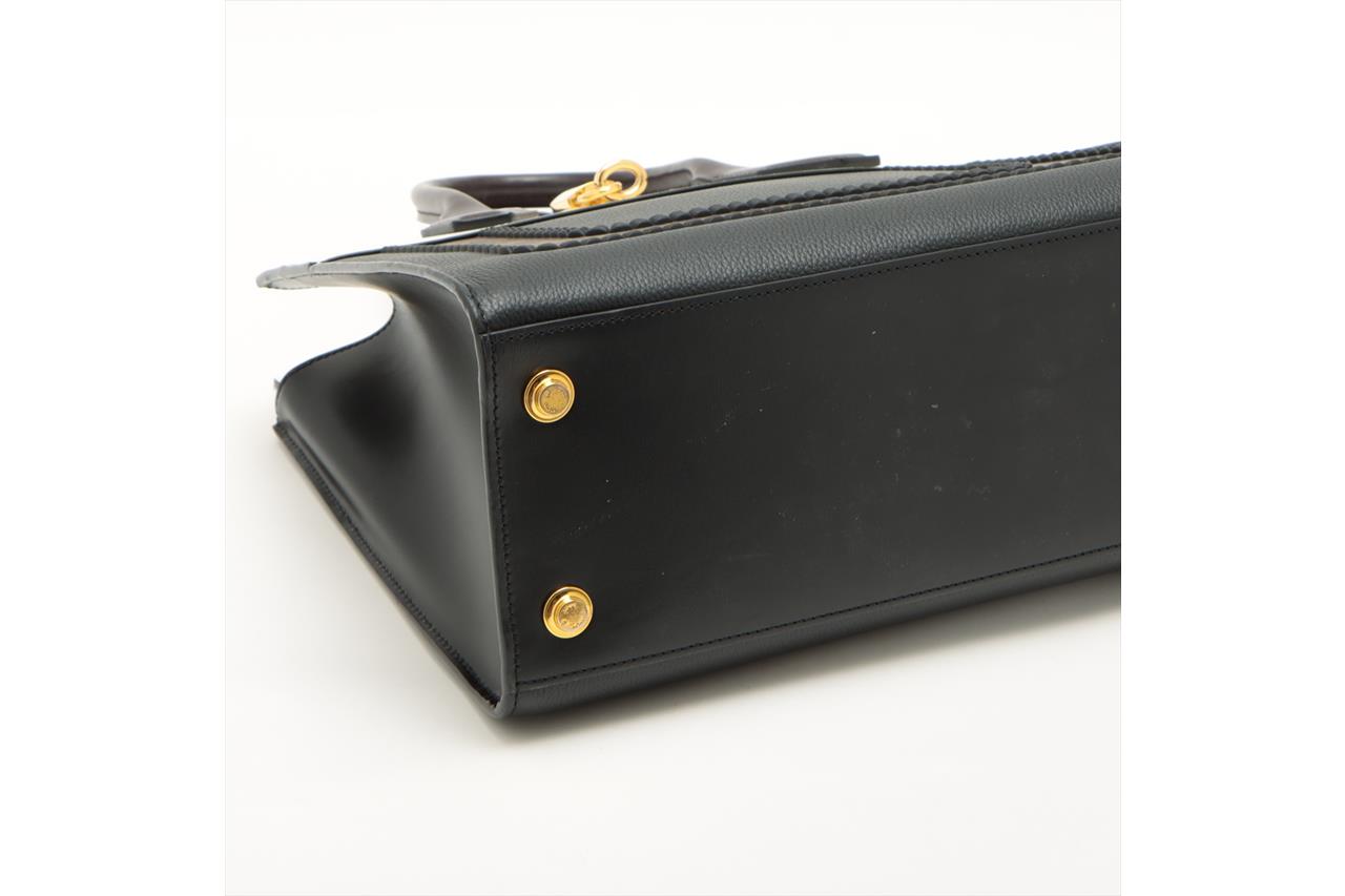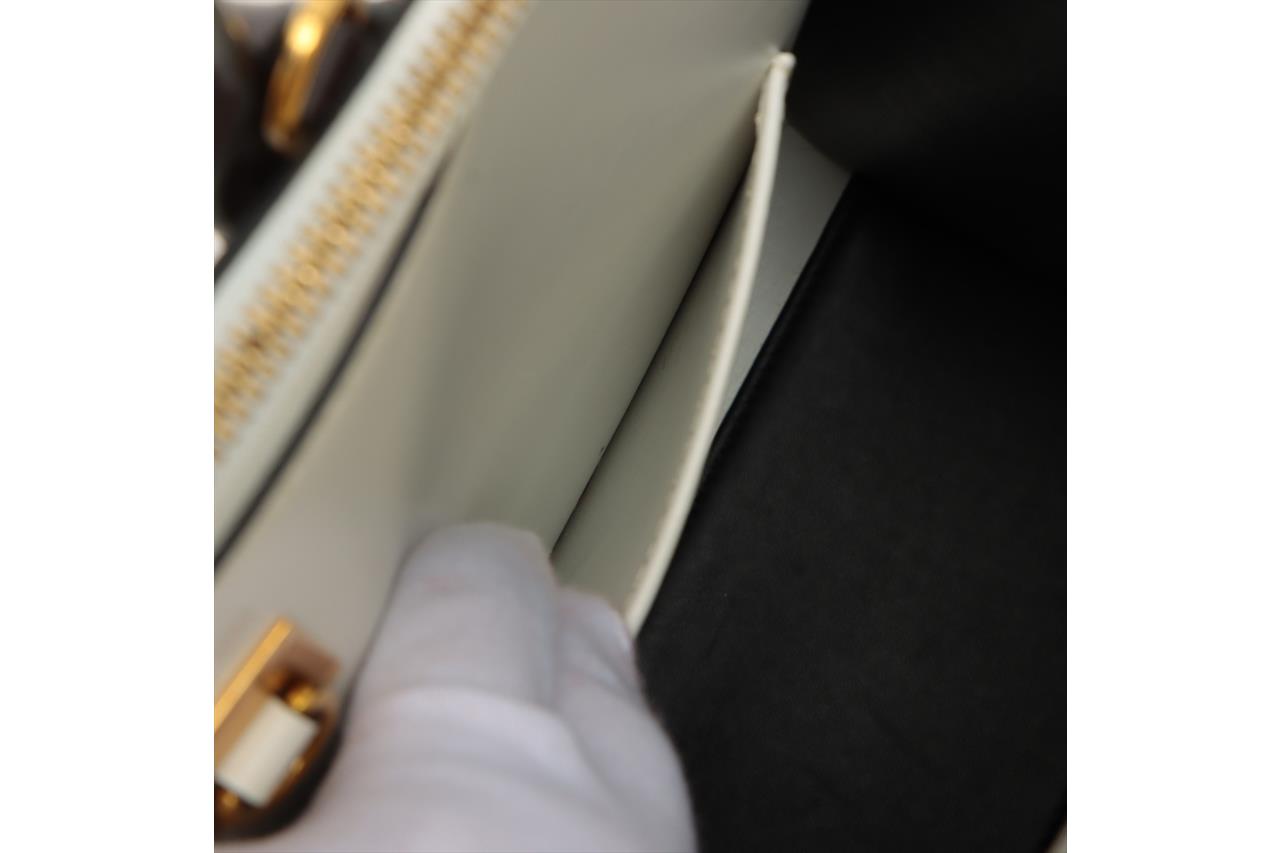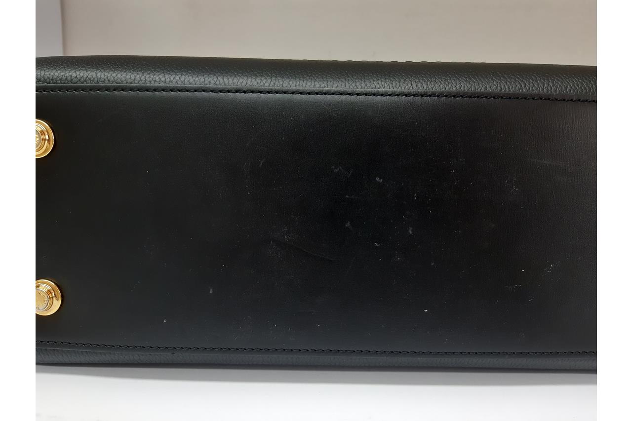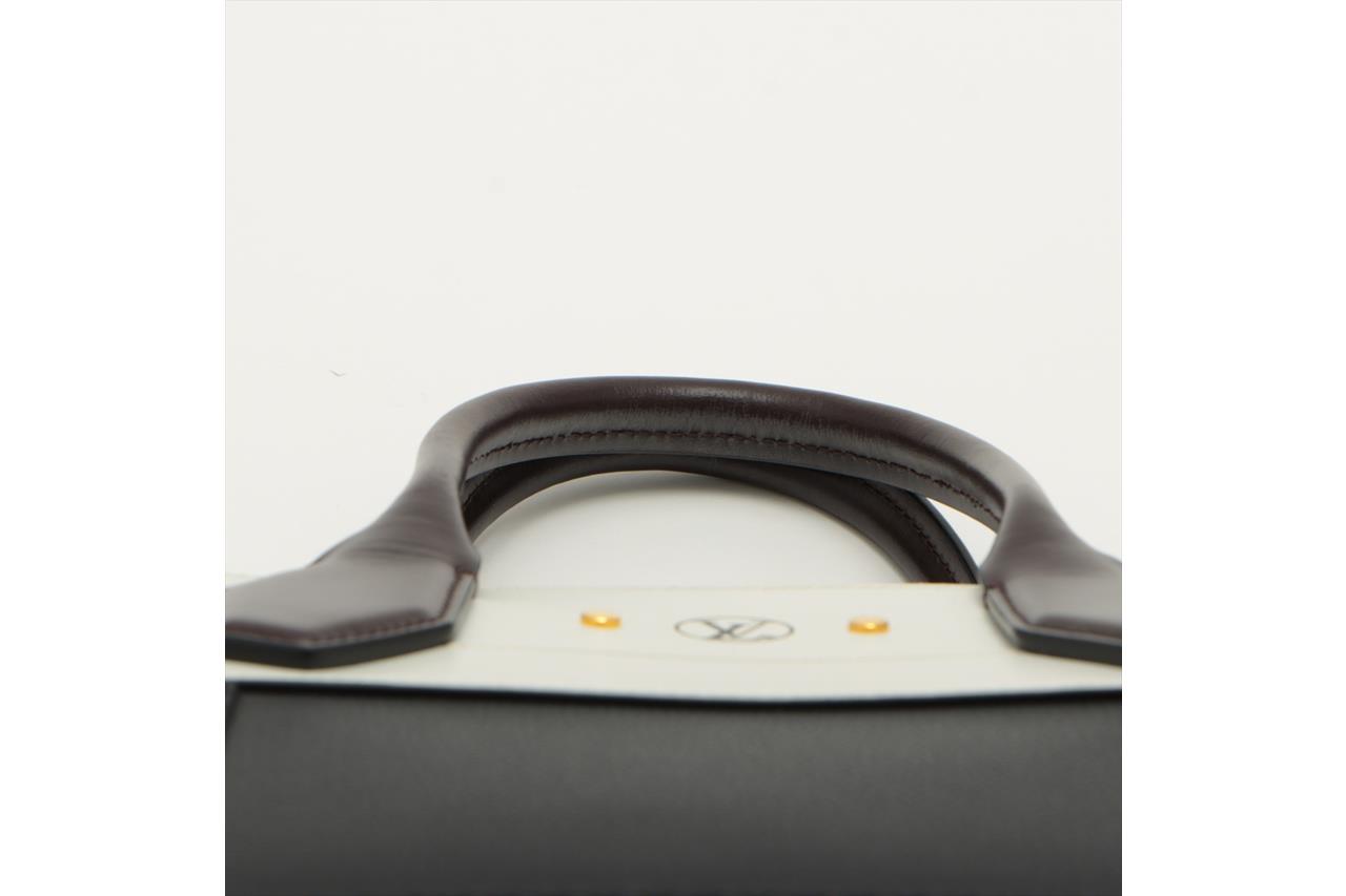 Louis Vuitton Monogram City Steamer MM bag. Featuring black & white leather and monogram canvas exterior, brown leather handles, gold-tone hardware, leather lining with three compartments, and one with a zipped closure. Approximate dimensions: 31cm (L) x 26.5cm (H) x 14cm (D), 11cm handle height, and 58cm detachable and adjustable strap. Accompanied by LV leather tag, lock, key and booklet. With Entrupy Certificate of Authenticity. (Pre-owned)