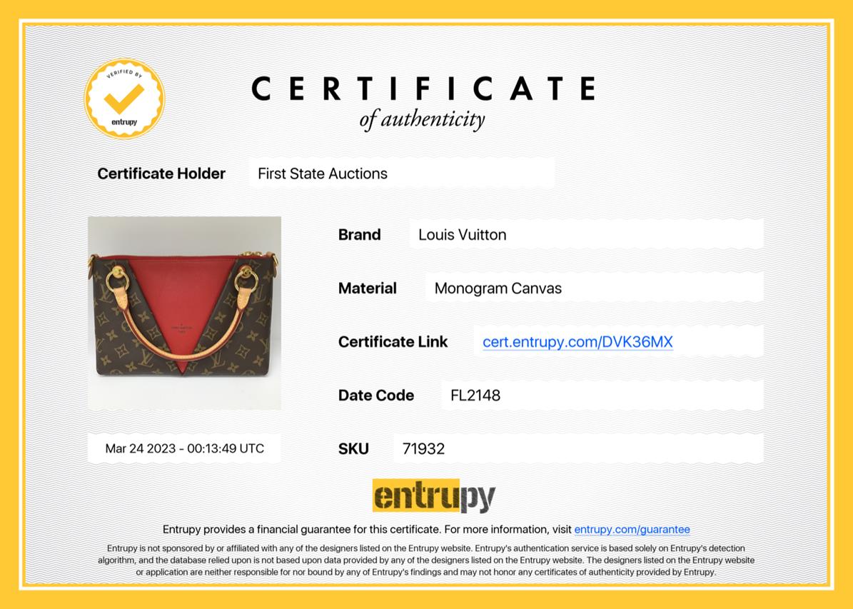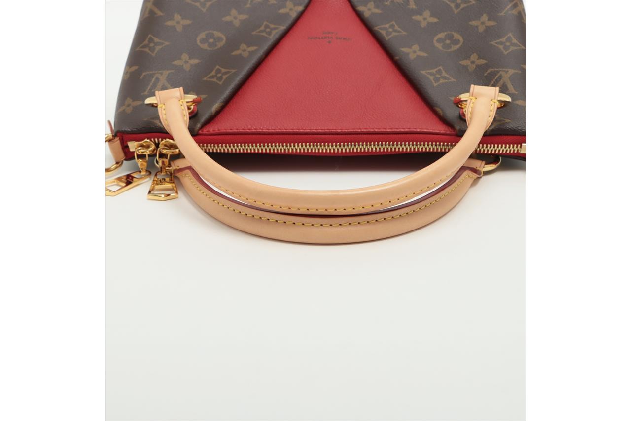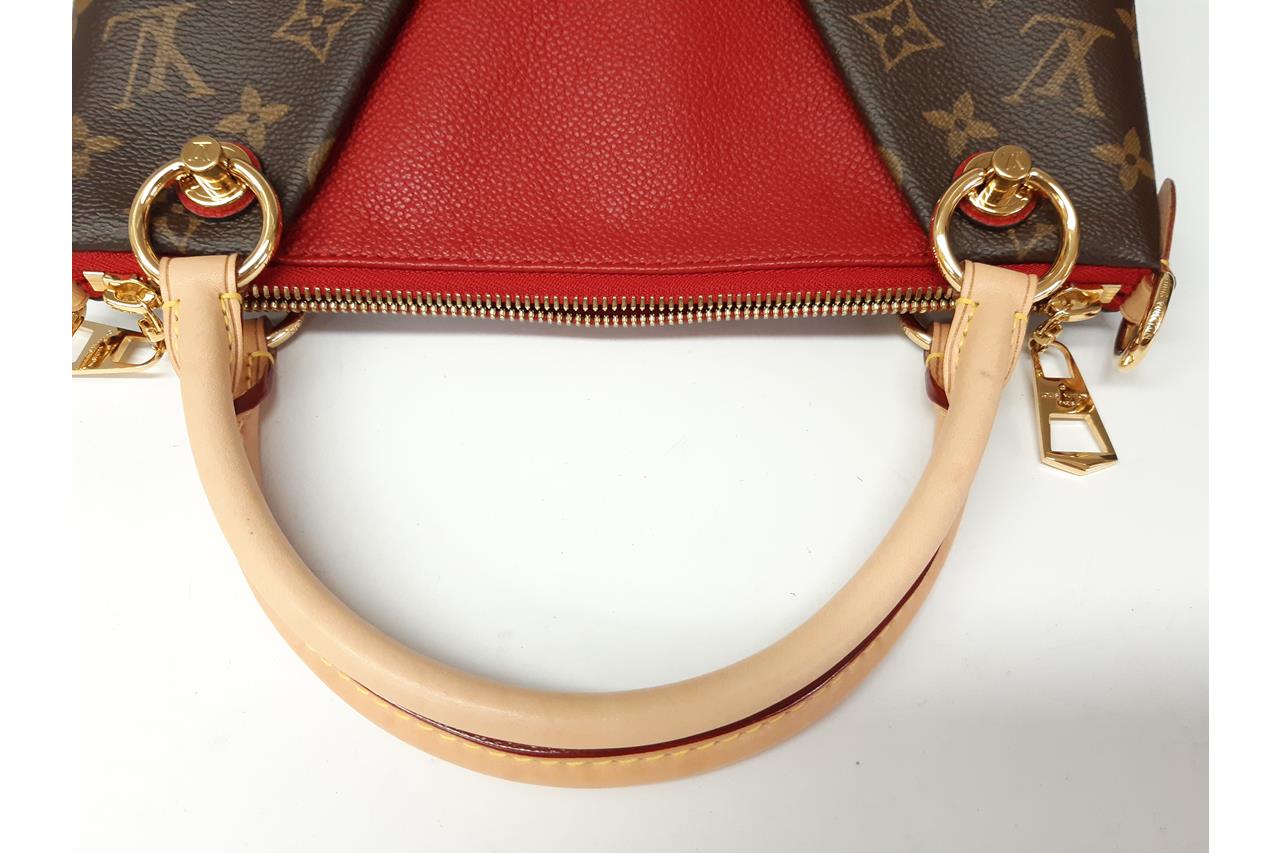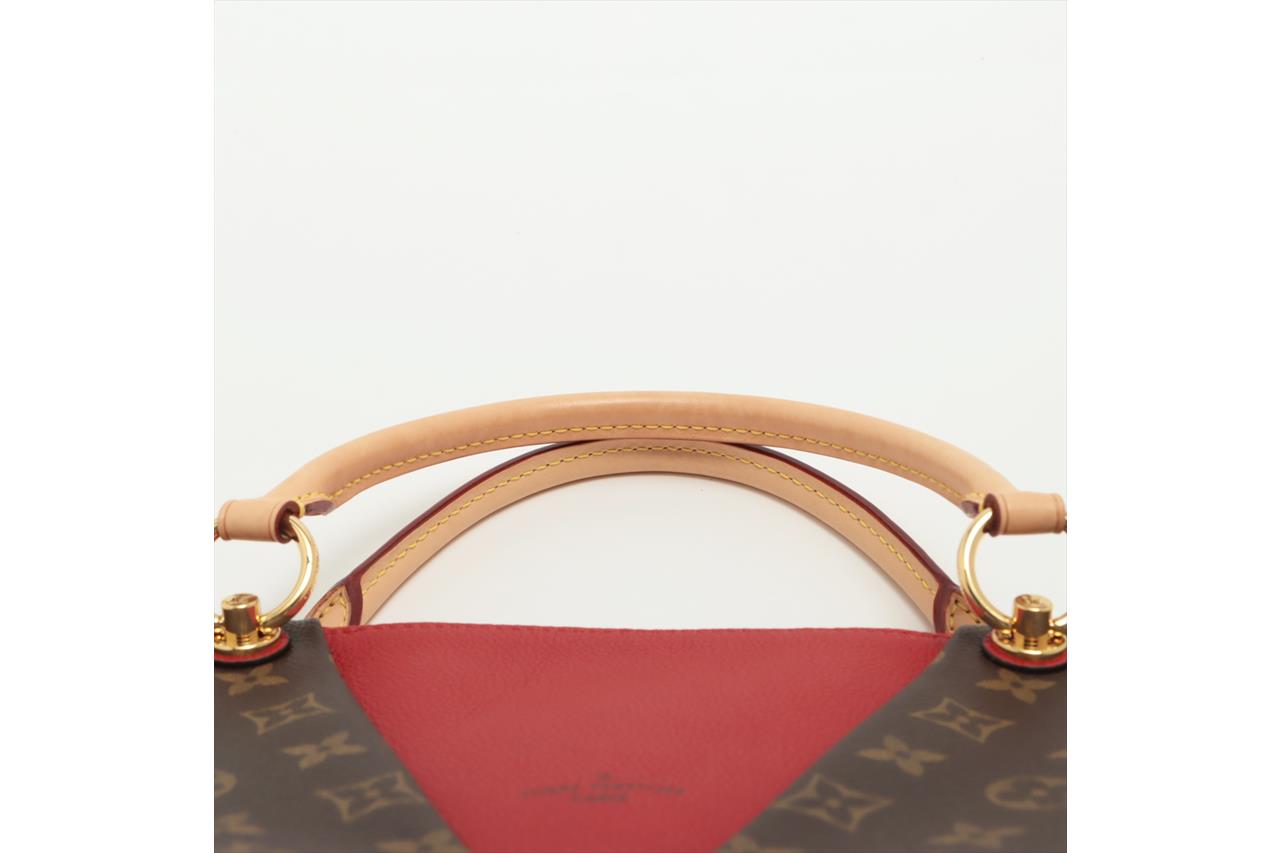 Louis Vuitton V tote BB bag in Monogram coated canvas. Featuring gold-toned hardware, front V panel of red leather, two-way zip closure on top. The top opens to red microfiber lining interior with dual patch pockets. Approximate dimensions: 25.5cm(L) x 17.5cm(H) x 10.5cm(D), 10cm handle drop, 53cm(max) removable and adjustable strap drop. Accompanied by LV info booklet, dust bag and box. Name tag NOT included. With Entrupy Certificate of Authenticity. (Pre-owned)