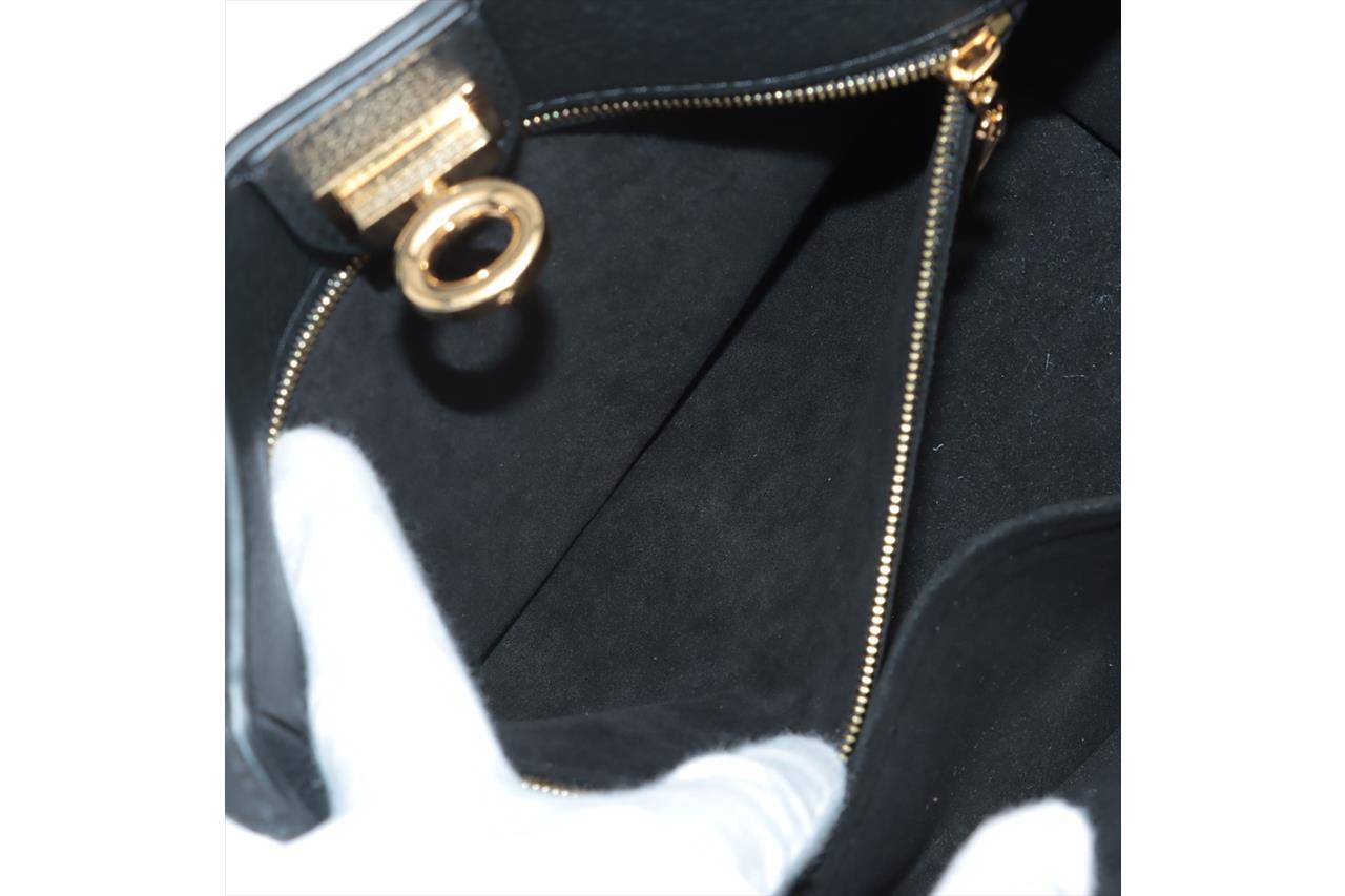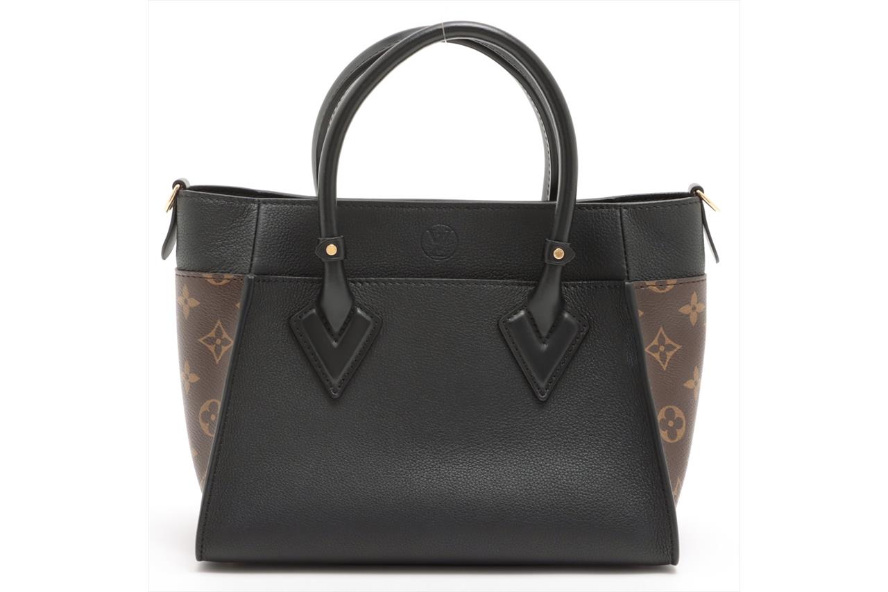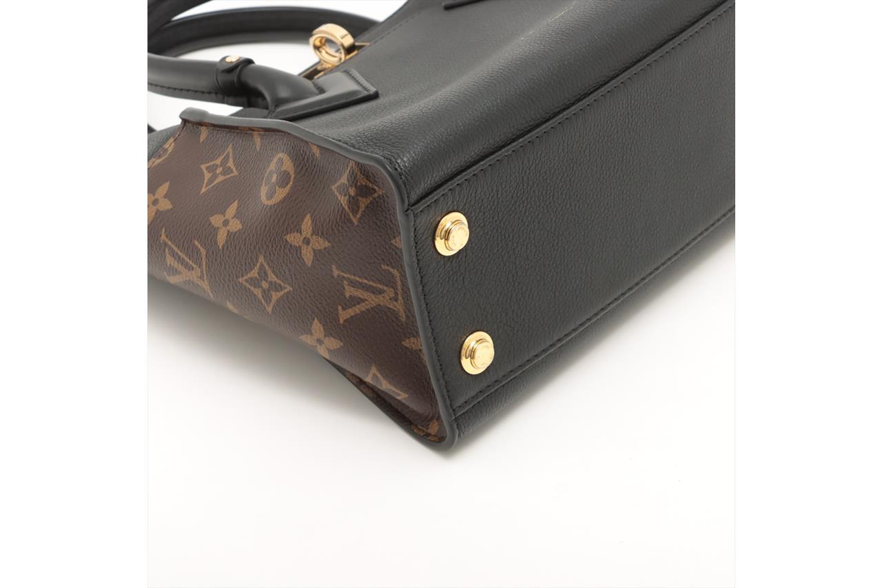 Louis Vuitton On My Side PM Bag in Black Calf Leather and Monogram Coated Canvas. Featuring two outside pockets, gold-tone hardware, cowhide-leather trim, black microfiber lining, and turn-lock closure. Approximate dimensions: 25cm (L) x 20cm (H) x 12cm (D), 9cm handle drop, and 51cm detachable strap. Accompanied by Louis Vuitton dust bag and box. With Entrupy Certificate of Authenticity. (Pre-owned)