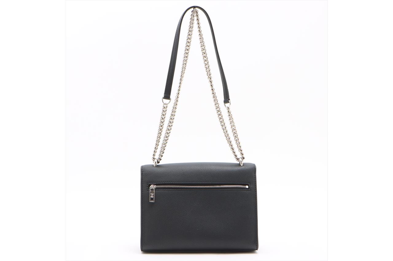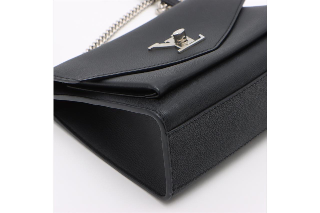 Louis Vuitton MyLockMe Satchel Chain Bag in black soft grained calfskin. Featuring microfiber lining, sliver-tone hardware, LV turn lock closure and sliding leather-chain strap. Approximate dimensions: 22.5cm (L) x 17cm (H) x 5.5cm (D), and 29-53cm strap drop. Accompanied by LV dust bag and box. With Entrupy Certificate of Authenticity. (Pre-owned)