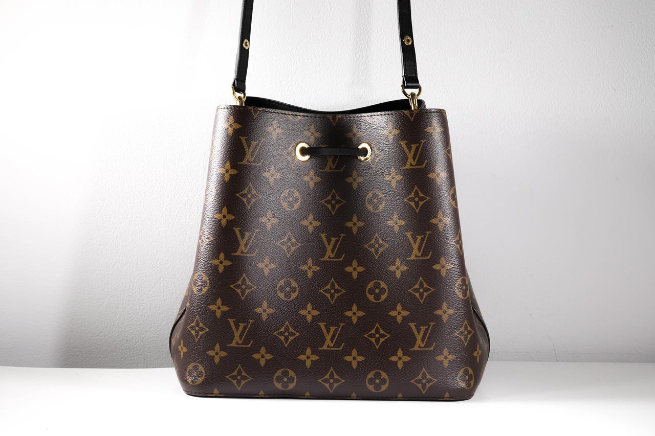 Louis Vuitton Neonoe bucket bag. Monogram coated canvas, microfiber lining and drawstring closure. Gold-tone hardware. Approximate Dimensions: 26cm (L) x 26cm (H) x 17.5cm (D). With 56cm removable & adjustable strap. With Louis Vuitton box and dust bag. With Entrupy Certificate of Authenticity. (Pre-owned)