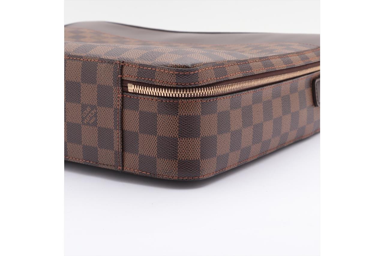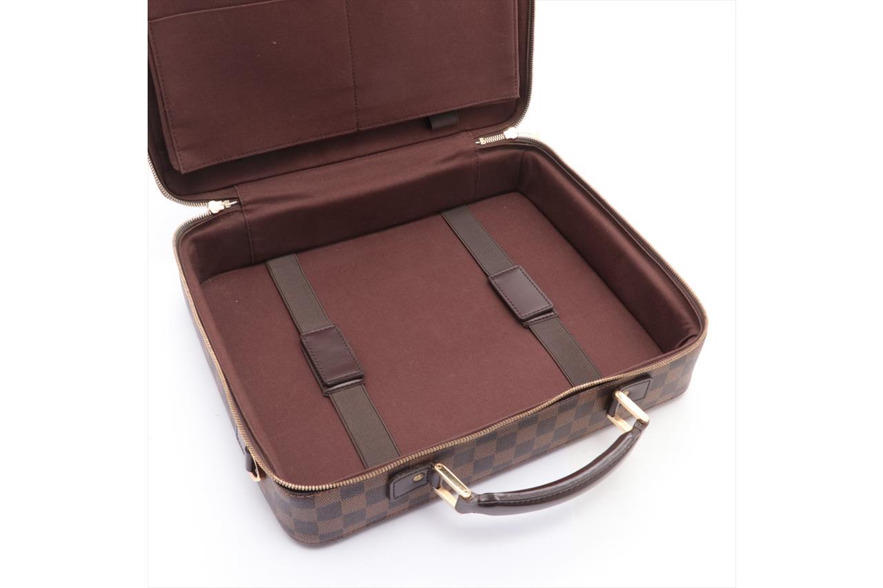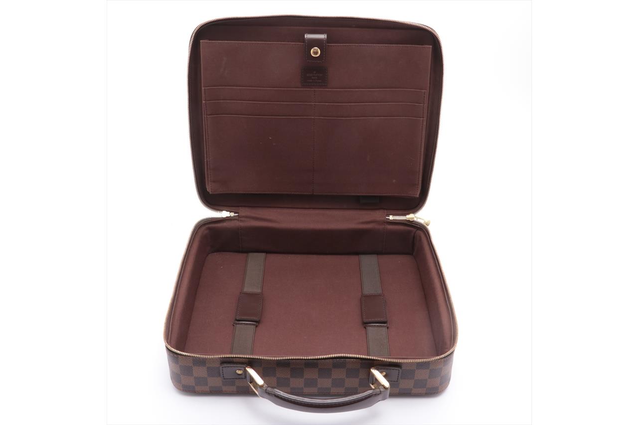 Louis Vuitton Porte Ordinateur Sabana in Damier Ebene Coated Canvas. Gold-tone hardware. Leather top handle. Featuring an all-round zip closure opening to a brown fabric interior with a large document pocket, small flat pockets and bungee straps. Approximate dimensions: 35cm (L) x 29cm (H) x 9cm (D) and 5cm handle height. Accompanied by Louis Vuitton dust bag. With Entrupy Certificate of Authenticity. (Pre-owned)