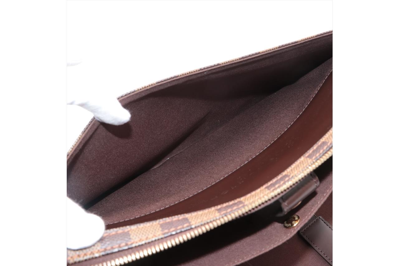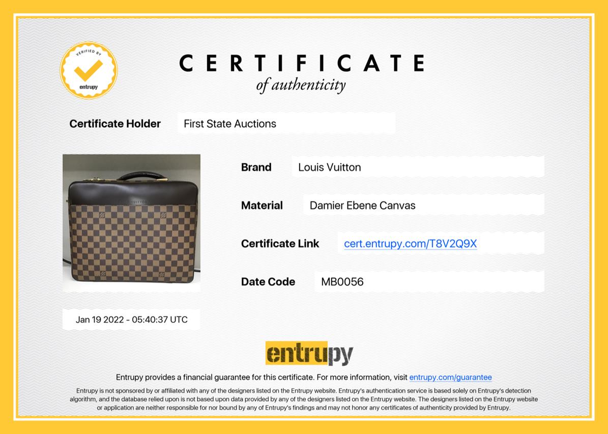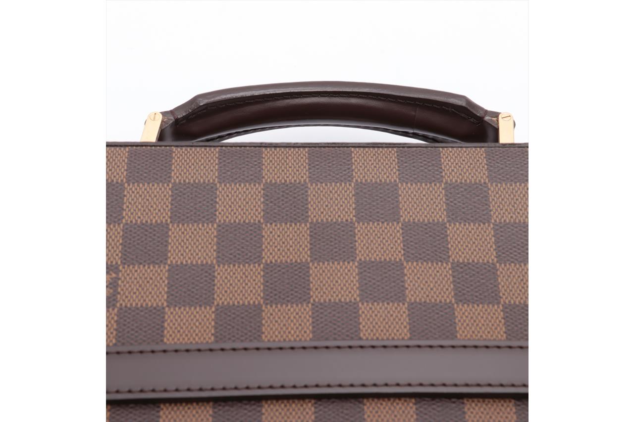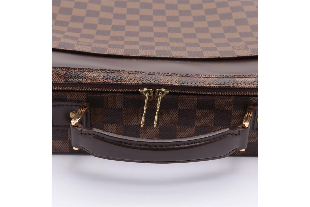 Louis Vuitton Porte Ordinateur Sabana in Damier Ebene Coated Canvas. Gold-tone hardware. Leather top handle. Featuring an all-round zip closure opening to a brown fabric interior with a large document pocket, small flat pockets and bungee straps. Approximate dimensions: 35cm (L) x 29cm (H) x 9cm (D) and 5cm handle height. Accompanied by Louis Vuitton dust bag. With Entrupy Certificate of Authenticity. (Pre-owned)