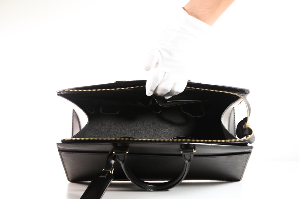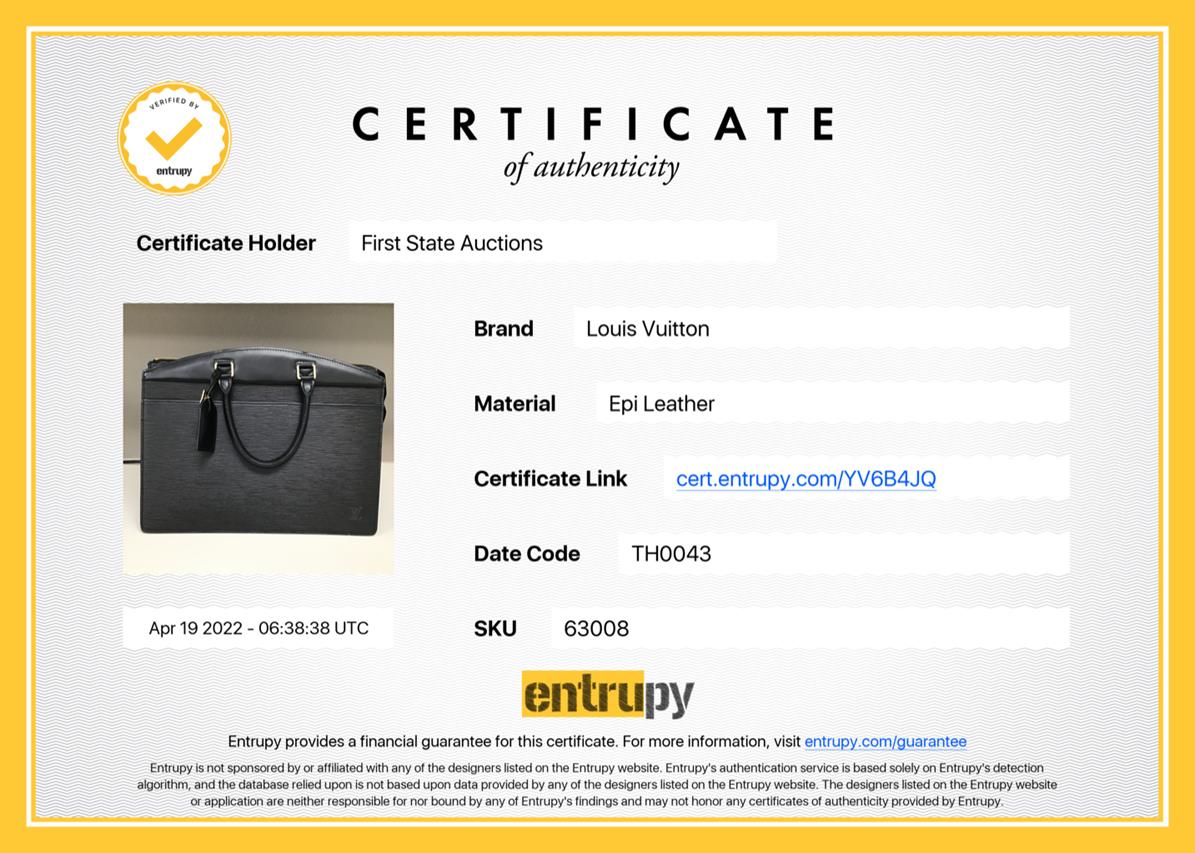 Louis Vuitton Riviera Handbag in Noir Epi Leather. Approximate dimensions: 36cm (L) x 28cm (H) x 15cm (D) and 12cm handle height. With Entrupy Certificate of Authenticity. Accompanied by Louis Vuitton dust bag. (Pre-owned)