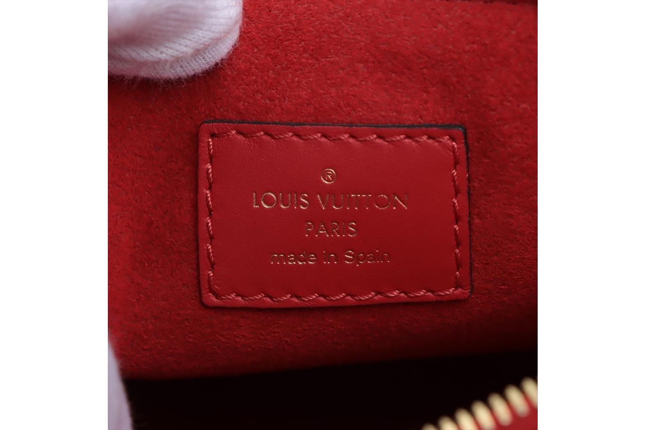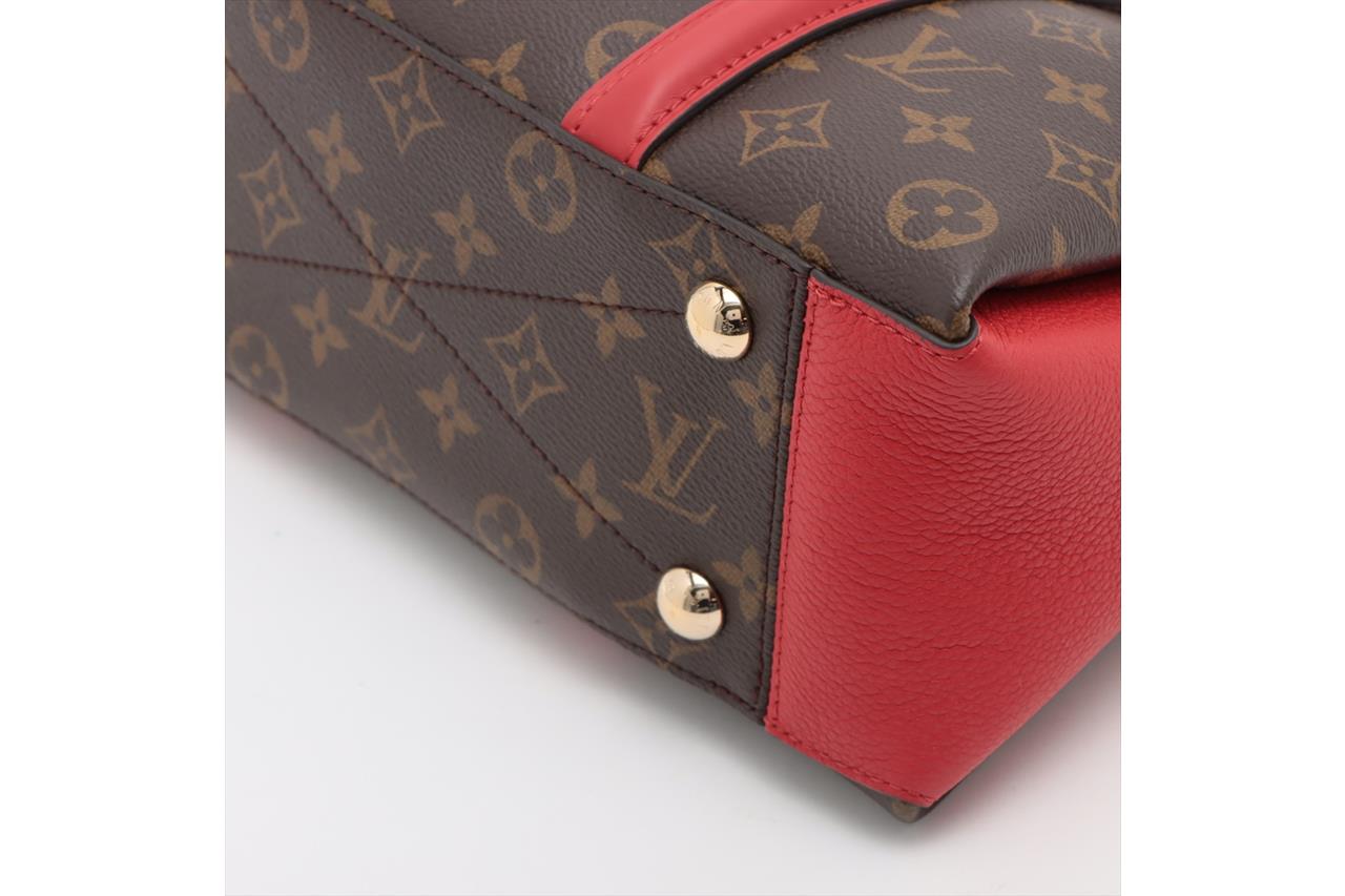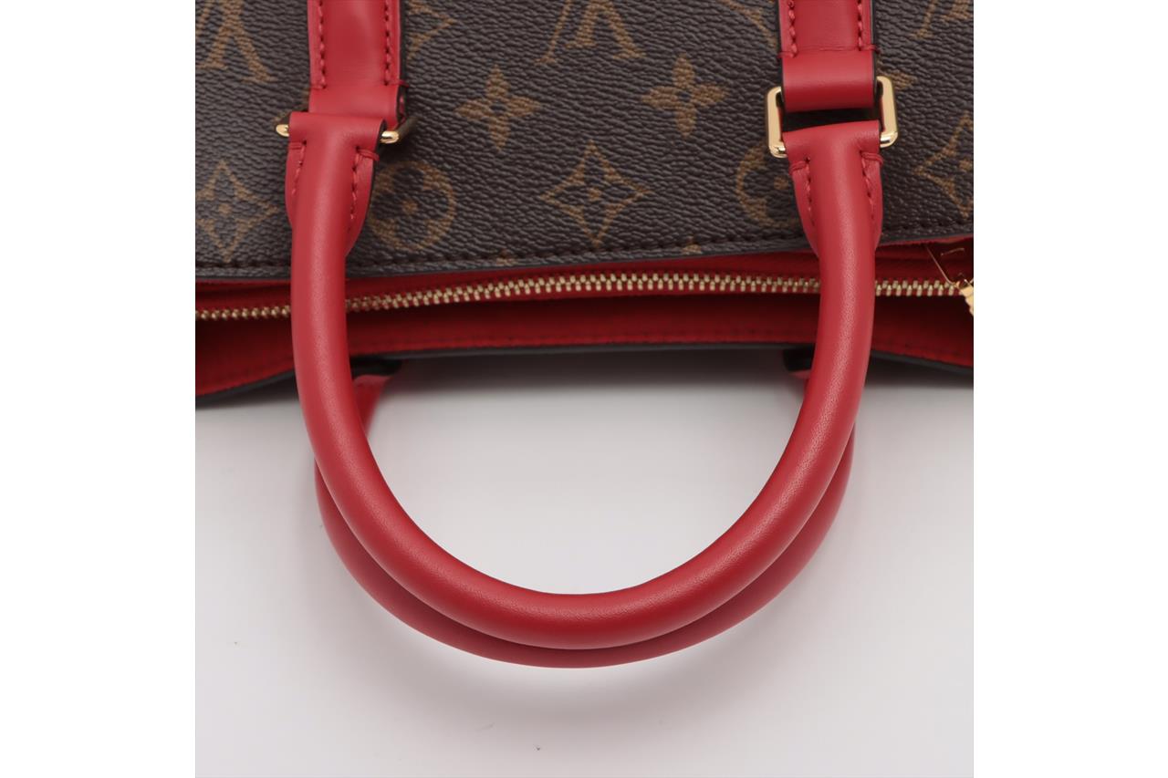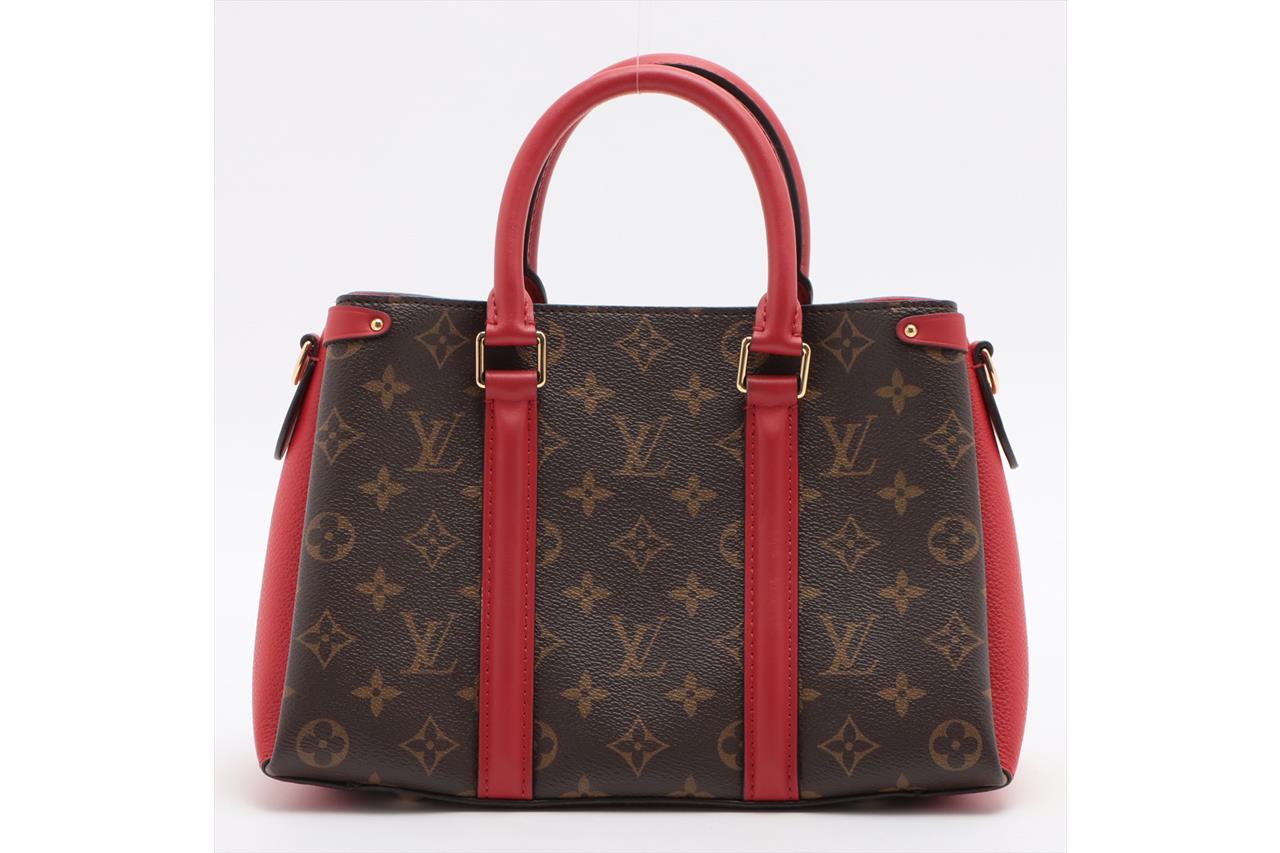 Louis Vuitton Soufflot Monogram Canvas BB Handbag. Featuring Monogram coated canvas, red leather trim, red microfiber lining, and gold-tone hardware. Approximate dimensions: 28cm (L) x 19.5cm (H) x 9.5cm (D), 8.5cm handle drop, and 54cm detachable, adjustable shoulder strap drop. Accompanied by Louis Vuitton leather tag, dust bag, box and shopping bag. With Entrupy Certificate of Authenticity. (Pre-owned)