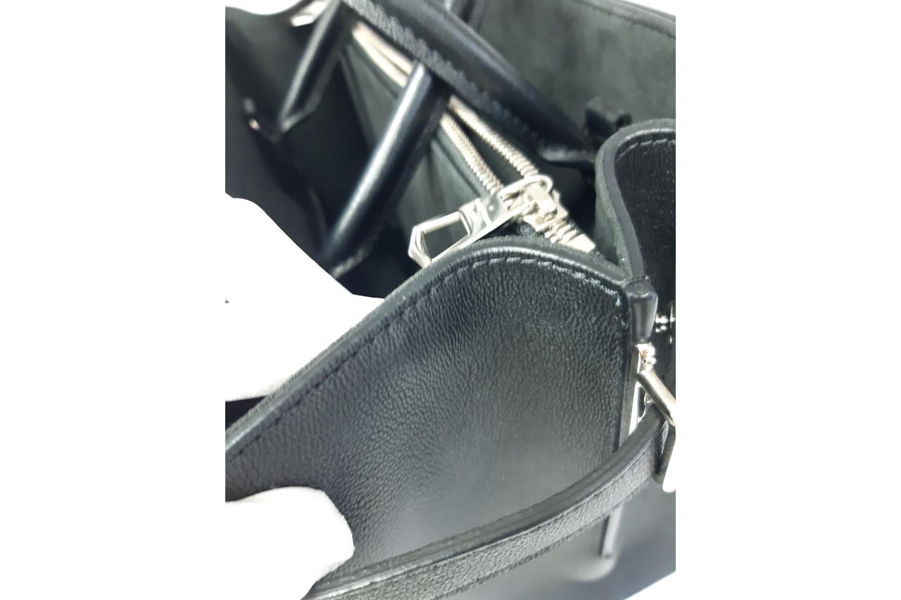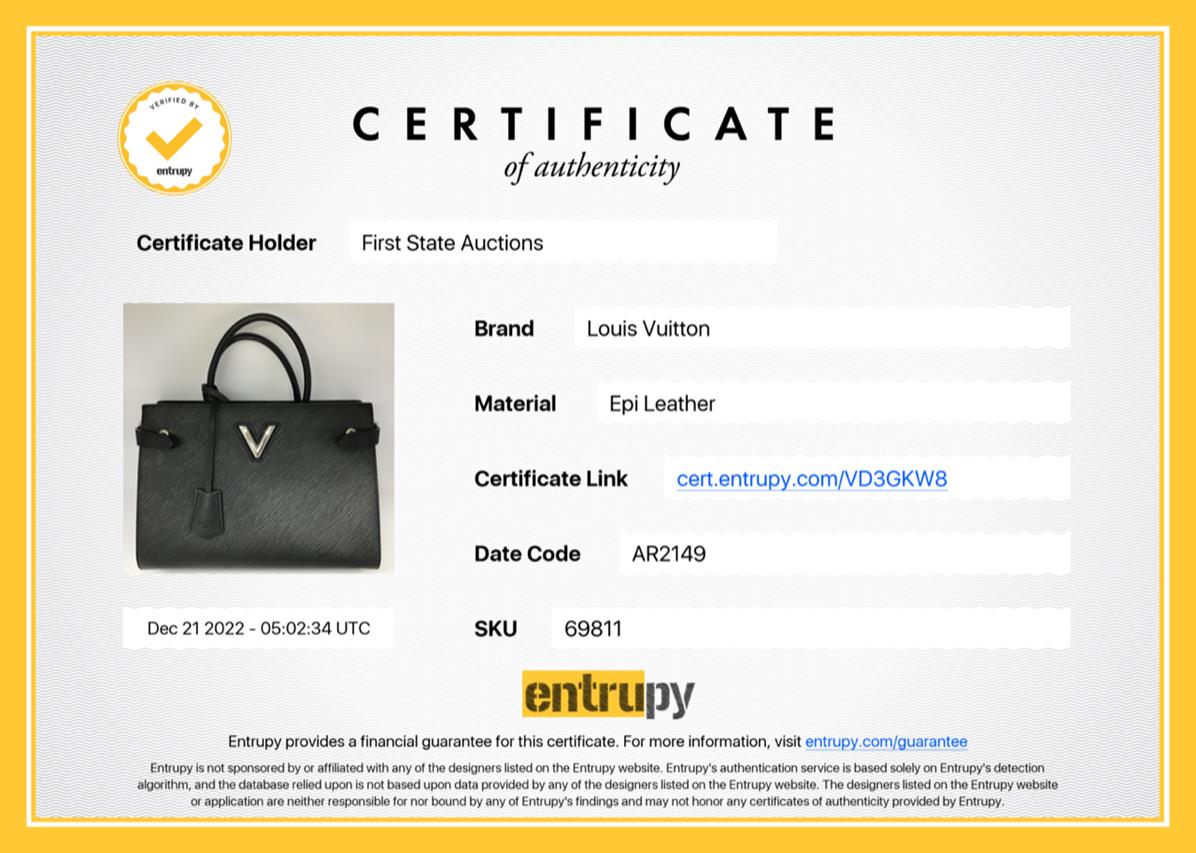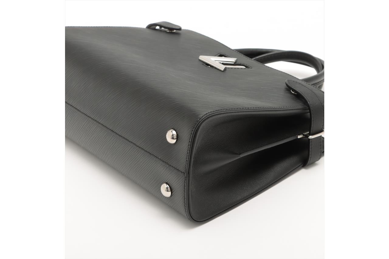 Louis Vuitton Twist Tote in black Epi leather and full grain calfskin. Silver-tone hardware. Front flat pocket with LV twist-lock closure. Interior lined with black microfiber with three compartments, central one with zip, two adjustable straps with snap buttons on sides. Approximate dimensions: 30.5cm(L) x 22cm(H) x12.5cm(D), 11cm handle drop height (shoulder strap and leather clochette NOT included). With Entrupy Certificate of Authenticity. (Pre-owned)