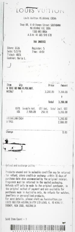 Louis Vuitton V Tote BB Handbag | First State Auctions