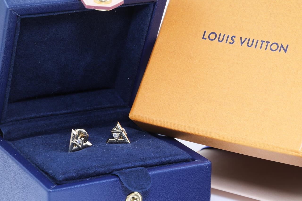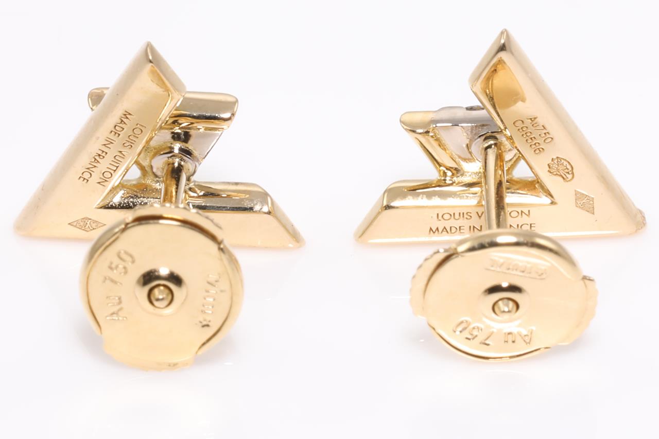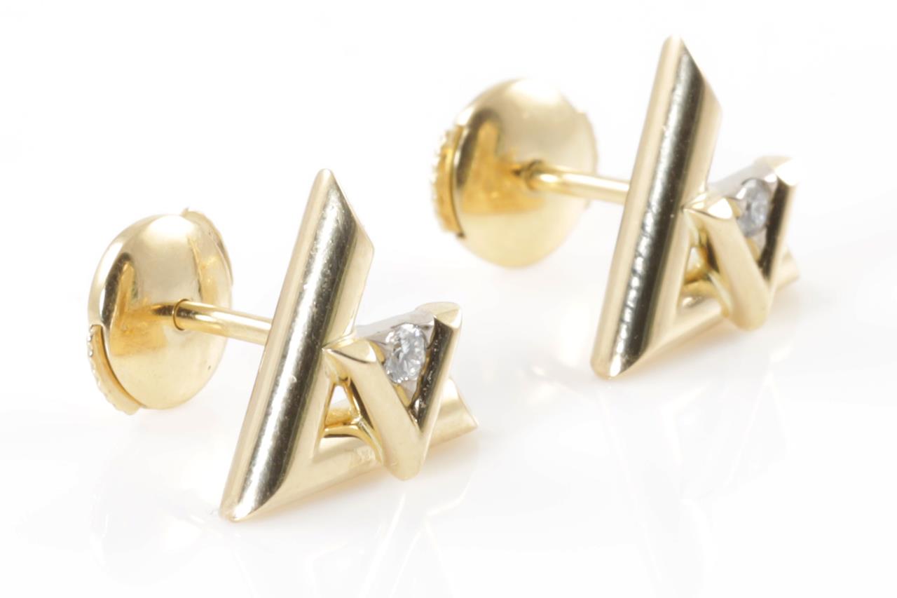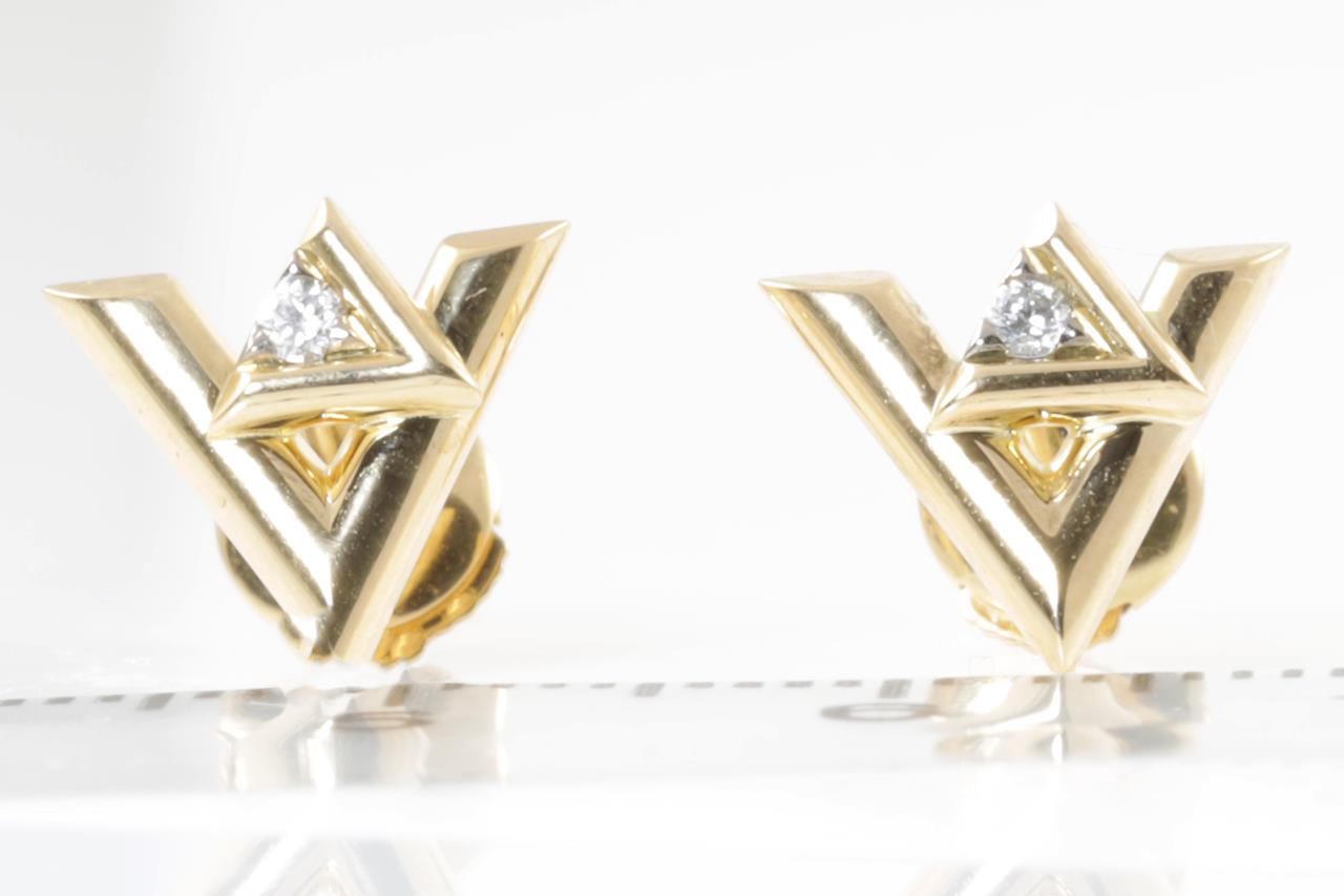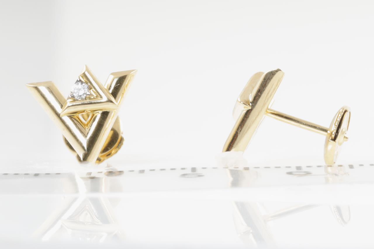 Louis Vuitton Volt earrings with 2 round Diamonds totalling 0.04cts (Estimated grading: F VS). 18ct yellow gold. With Louis Vuitton box. Ref# 99586. Weight: 3.5g. With certificate #414570. (Pre-owned)