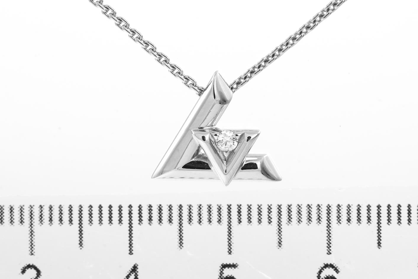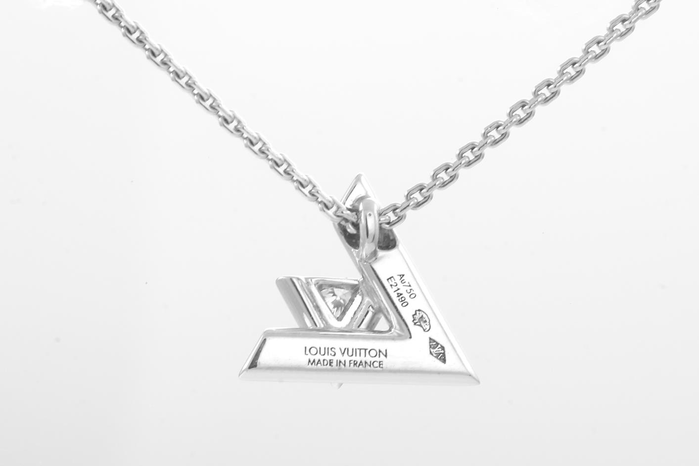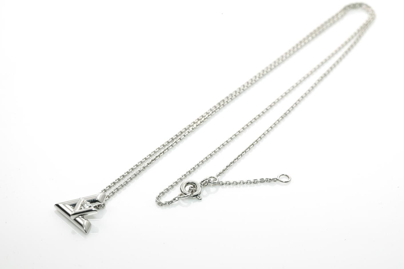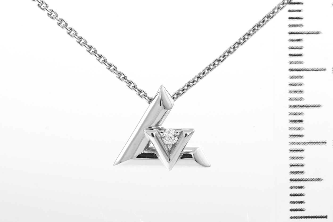 Louis Vuitton Volt One small pendant with a round Diamond of 0.03ct. Made in France. Motif size: 12mm. Weight: 6.3g. 18ct white gold with adjustable 18ct white gold 45cm chain. With Louis Vuitton box. Weight: 6.3g. (Pre-owned)