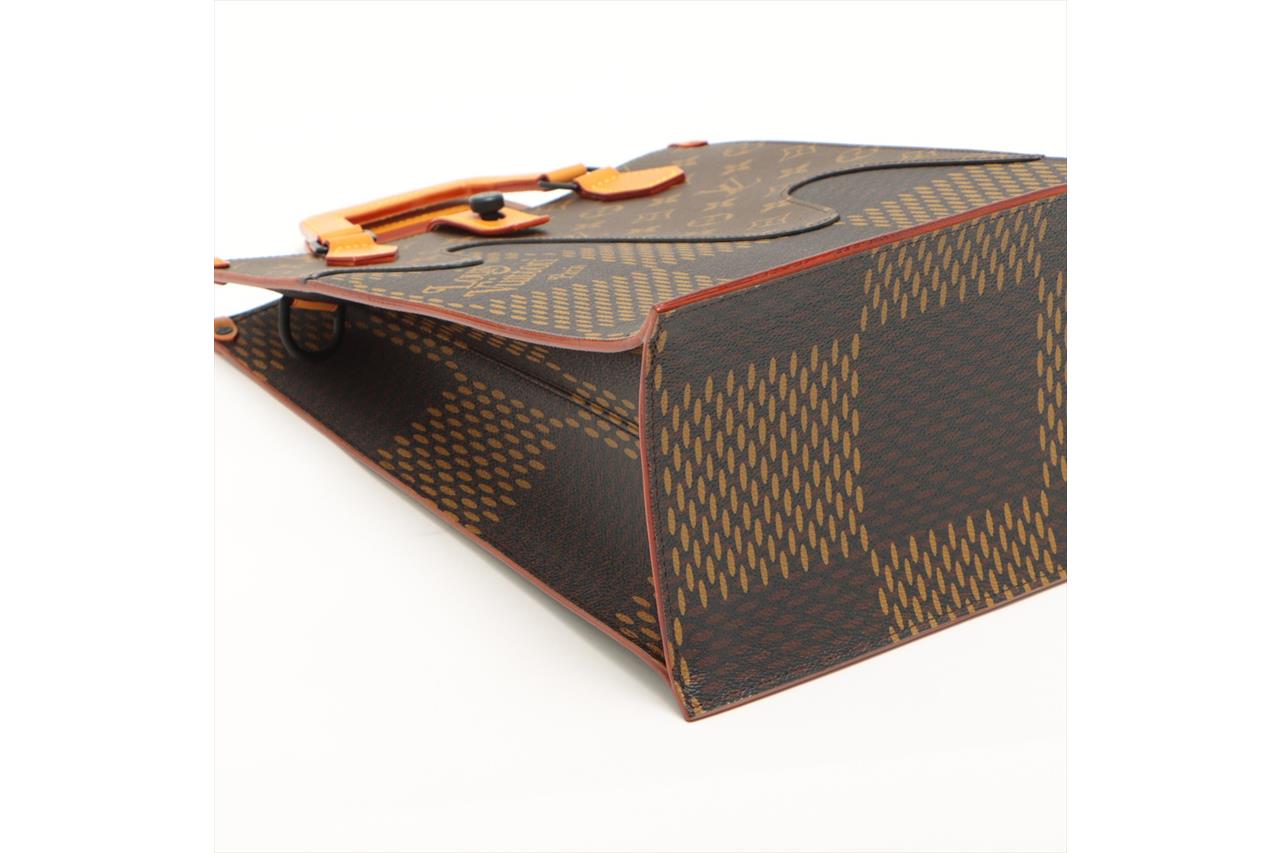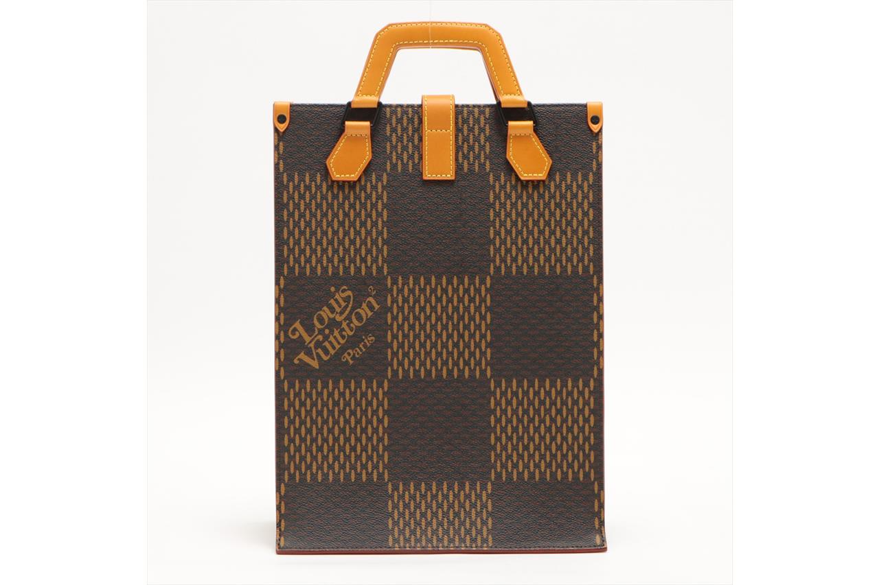 Louis Vuitton x Nigo mini tote bag in signature Monogram and Damier Giant Canvas. Featuring leather trim, black toned hardware, open top with strap with button closure, black textile lining interior with double flat pockets. Approximate dimensions: 25.5cm(L) x 34.5cm(H) x 14cm(D), 4.5cm handle height, 39cm detachable and adjustable shoulder strap height. Accompanied by Louis Vuitton strap pad and dust bag. With Entrupy Certificate of Authenticity. (Pre-owned)