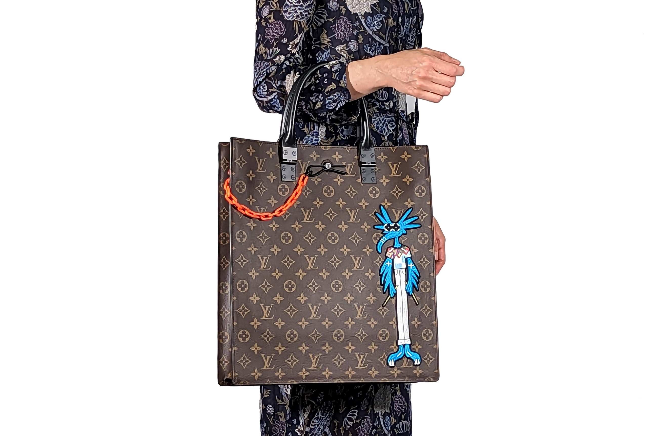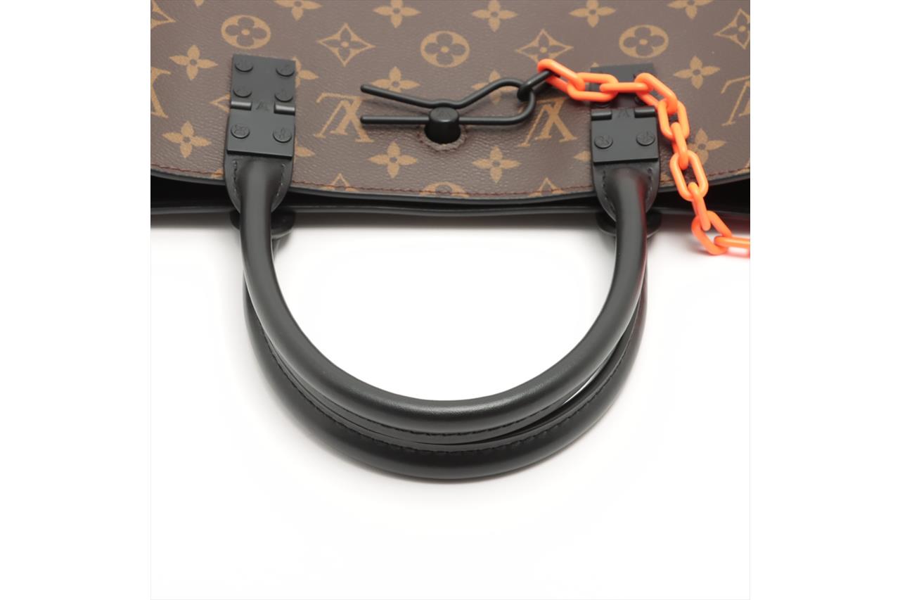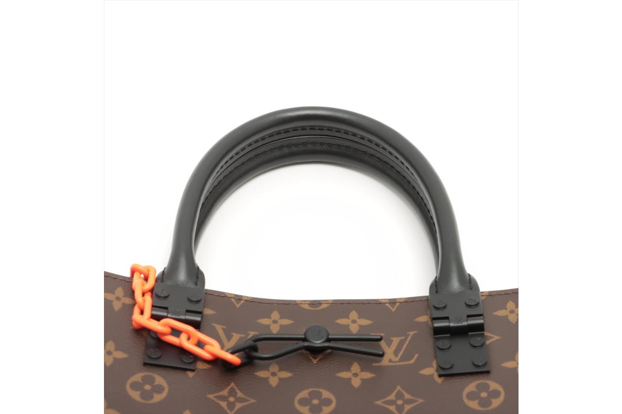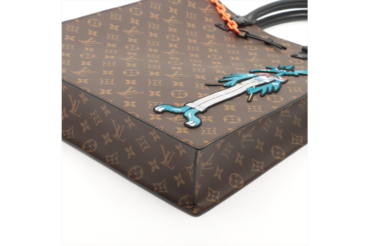Louis Vuitton x Virgil Abloh Sac Plat Messenger Bag in Monogram canvas with Virgil Abloh's animated film cartoon character. Featuring a matte black leather trim, black toned hardware, open top with easy sliding closure, black textile lining with internal pockets. Approximate dimensions: 35.5cm(L) x 39.5cm(H) 8.5cm(D), 13cm handle height. Accompanied by Louis Vuitton dust bag. With Entrupy Certificate of Authenticity. (Pre-owned)