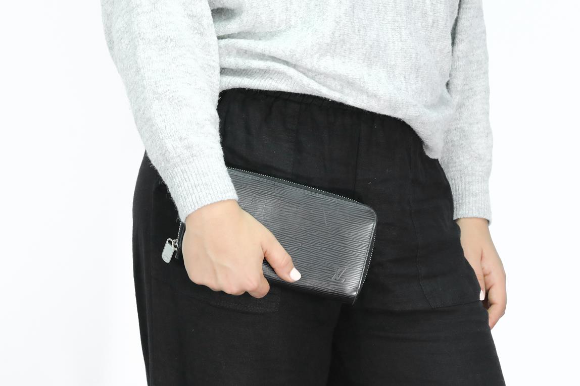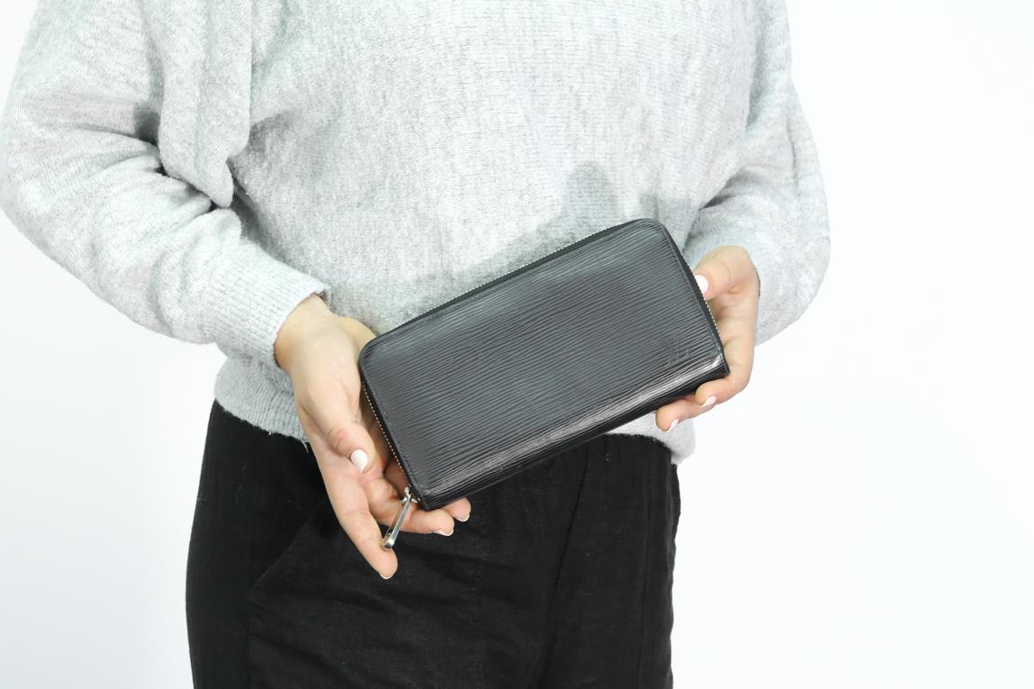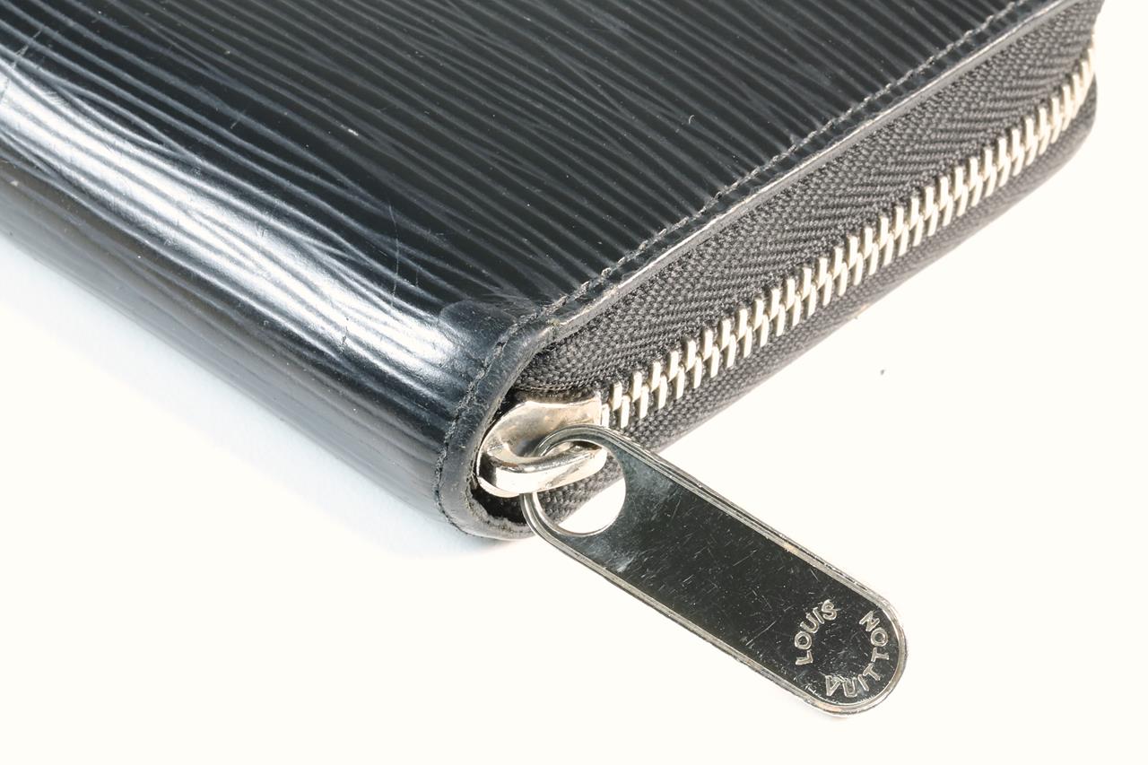 Louis Vuitton Zippy wallet. Black Epi leather. Silver tone zip and pull. Dimensions: 19.5 x 10.5 x 2.5cm. (Pre-owned, note outer scratches)