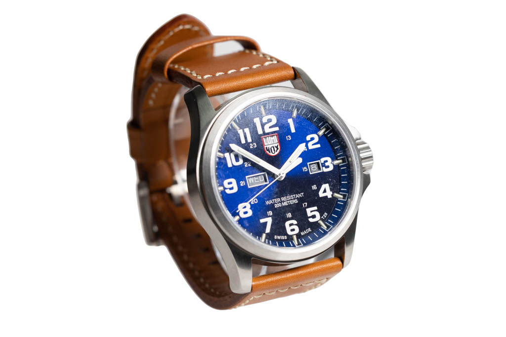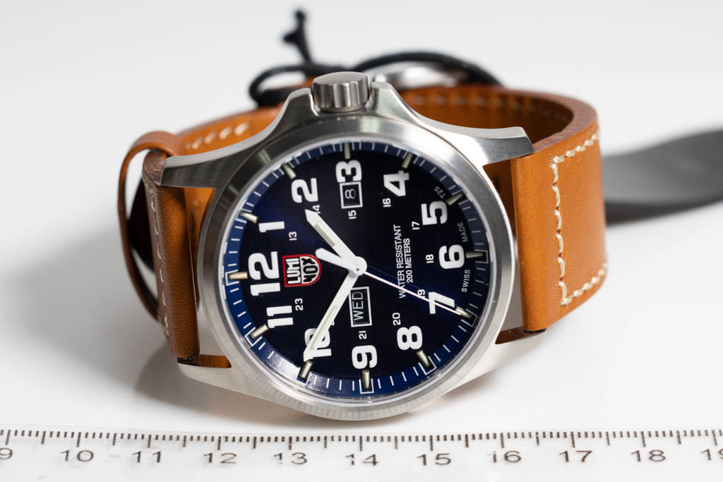 Luminox Atacama Land Collection stainless steel quartz mens watch. Navy blue dial, day & date, case diameter: 45mm, strap length: 22cm, Swiss made. Ref# A1924. With Luminox tan colour strap an d buckle. With Luminox Warranty Card and Luminox box. Luminox 2 year warranty applies. (As New, Note: minor scratches on case and light strap on strap due to being display stock)