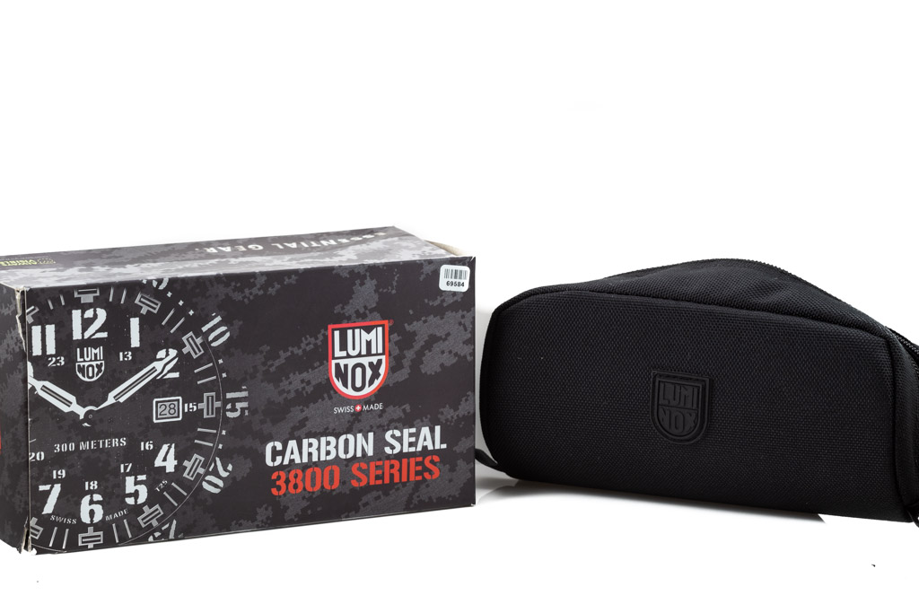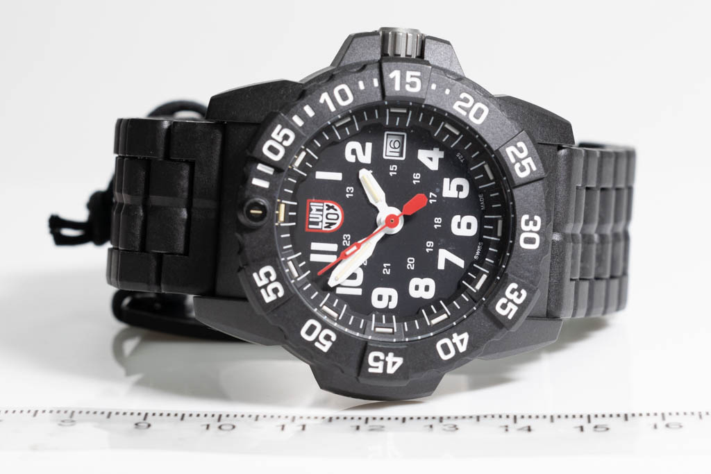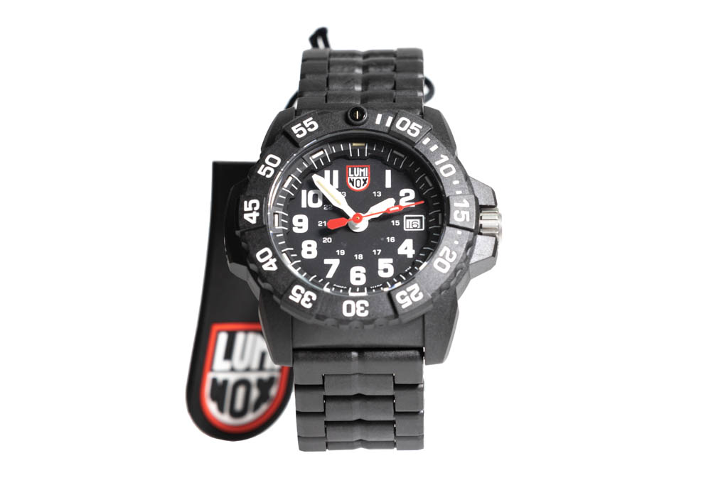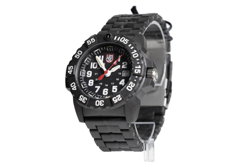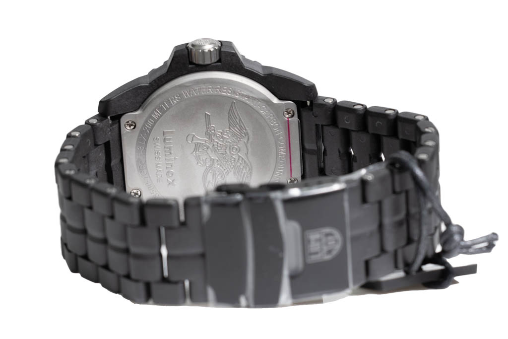 Luminox Navy Seal carbonox quartz mens watch. Black dial, date, case diameter: 45m, wrist size: 20cm, Swiss made. Ref# A3502. With Luminox carbonox bracelet strap and clasp. With Luminox International Warranty Card and Luminox box. Luminox 2 year warranty applies. (As New, Note: minor scratches on case and bracelet due to being display stock)