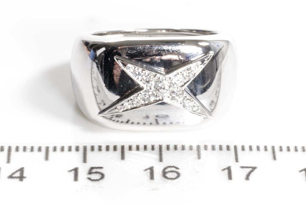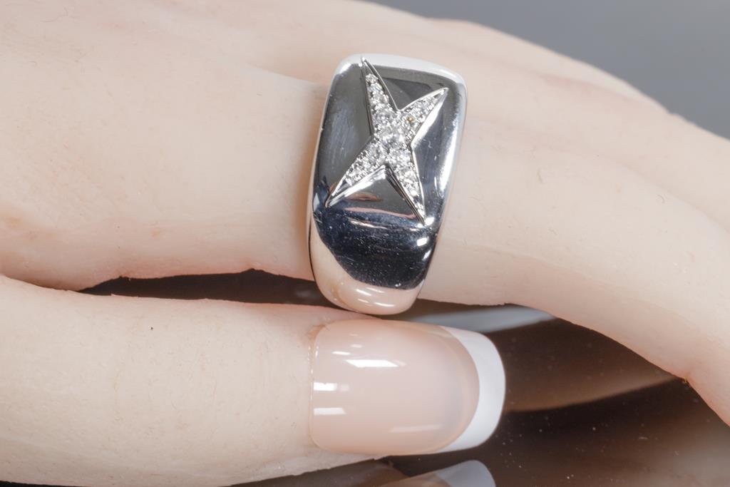 Mauboussin Etoile Divine Diamond ring with round Diamonds totalling 0.15cts. 18ct white gold. Mauboussin stamped size 55, actual ring size N - ring resizing is not recommended. Width: 5mm. Weight: 9.1g. With Mauboussin box. (Pre-owned)