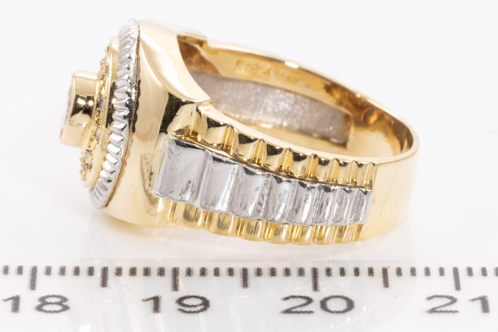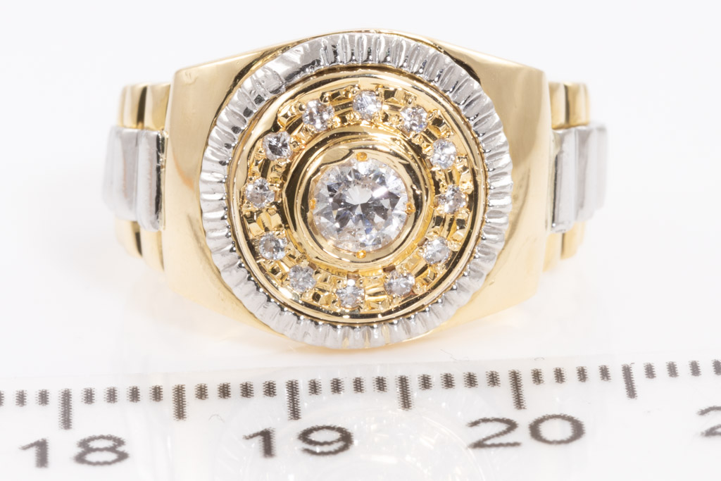 Men's Diamond ring with Diamonds totalling 0.50cts (Estimated grading: H P1-2). 18ct yellow gold and platinum. Ring size P1/2. Weight: 11.9g. (Pre-owned)
