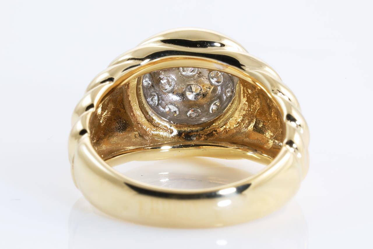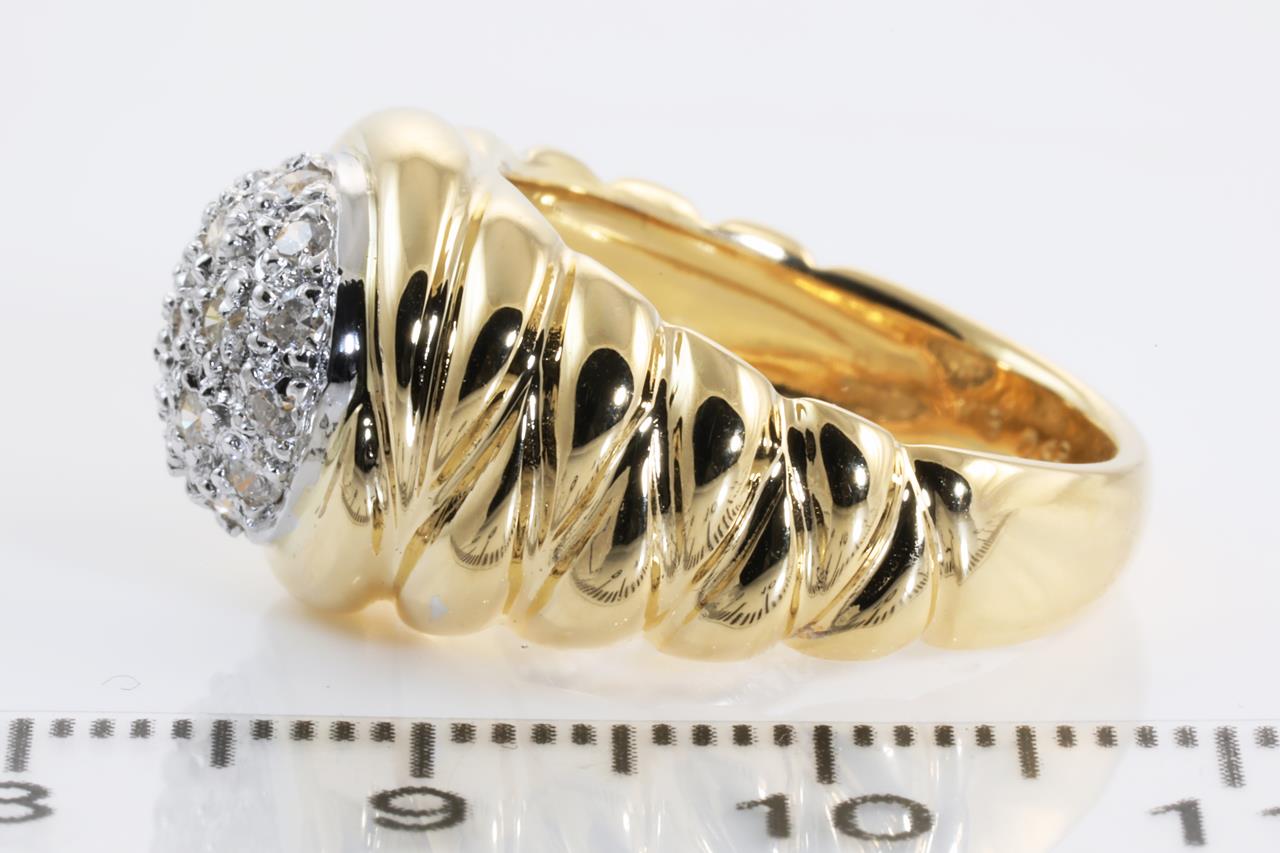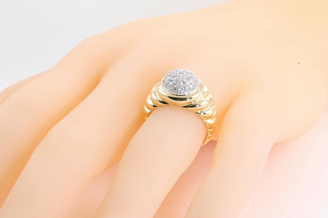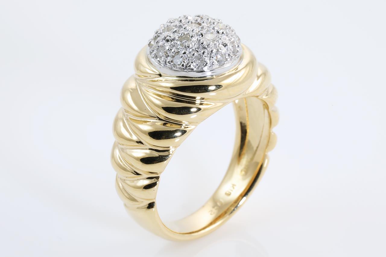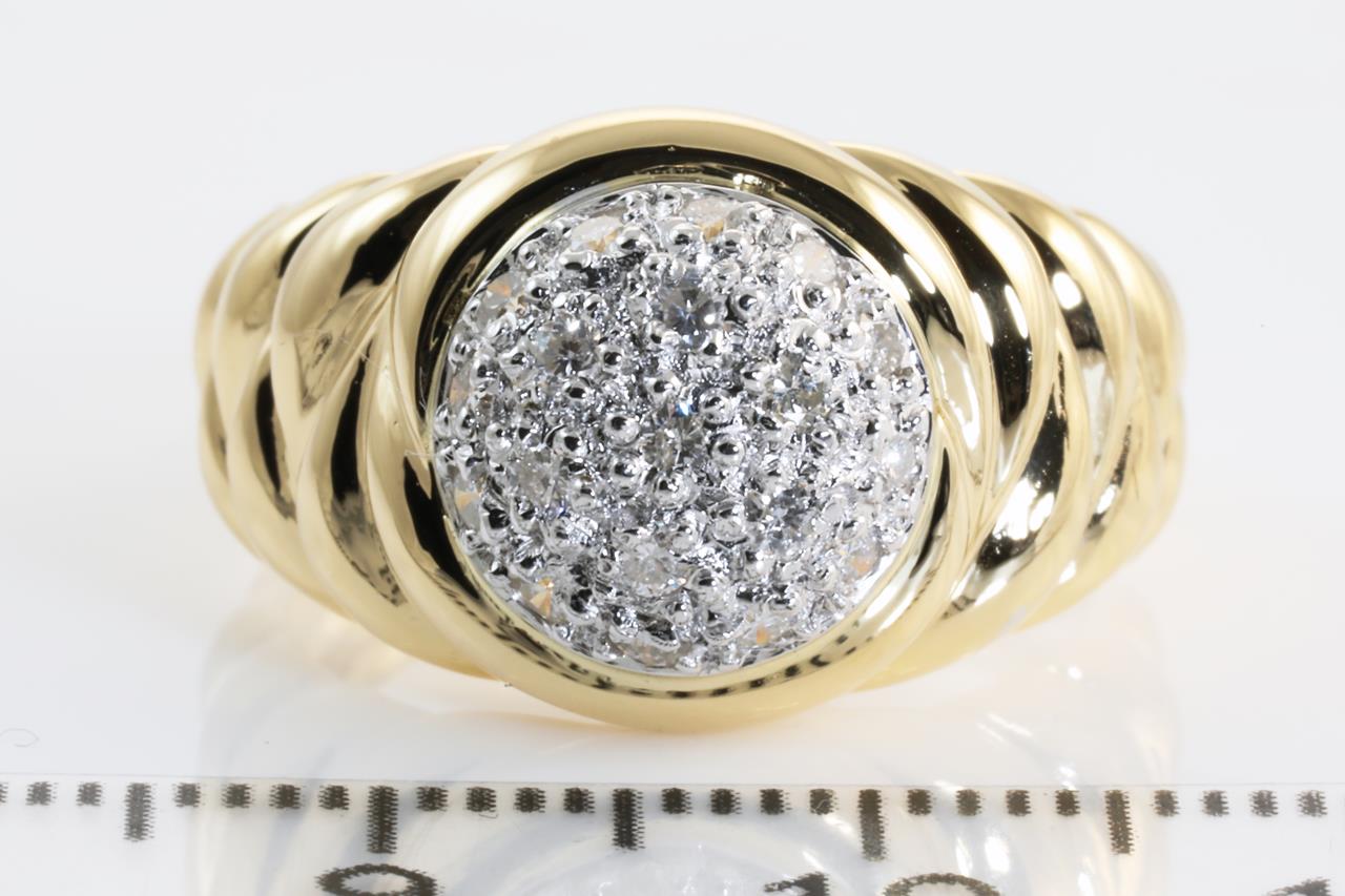 Mens pinky ring with round Diamonds totalling 0.42cts (Estimated grading: H SI). 18ct yellow gold and platinum. Ring size L. Weight: 10.0g (Pre-owned)