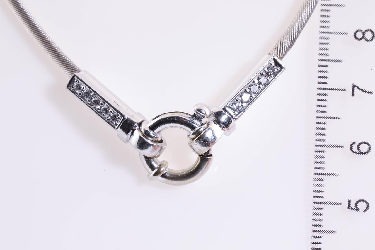 Midas Diamond and Silk Cable Necklace, with ten round Diamonds on clasp totalling approximately 0.30cts (Estimated grading: H SI). 9ct white gold clasp. Total weight 16.9g. (Pre-owned)