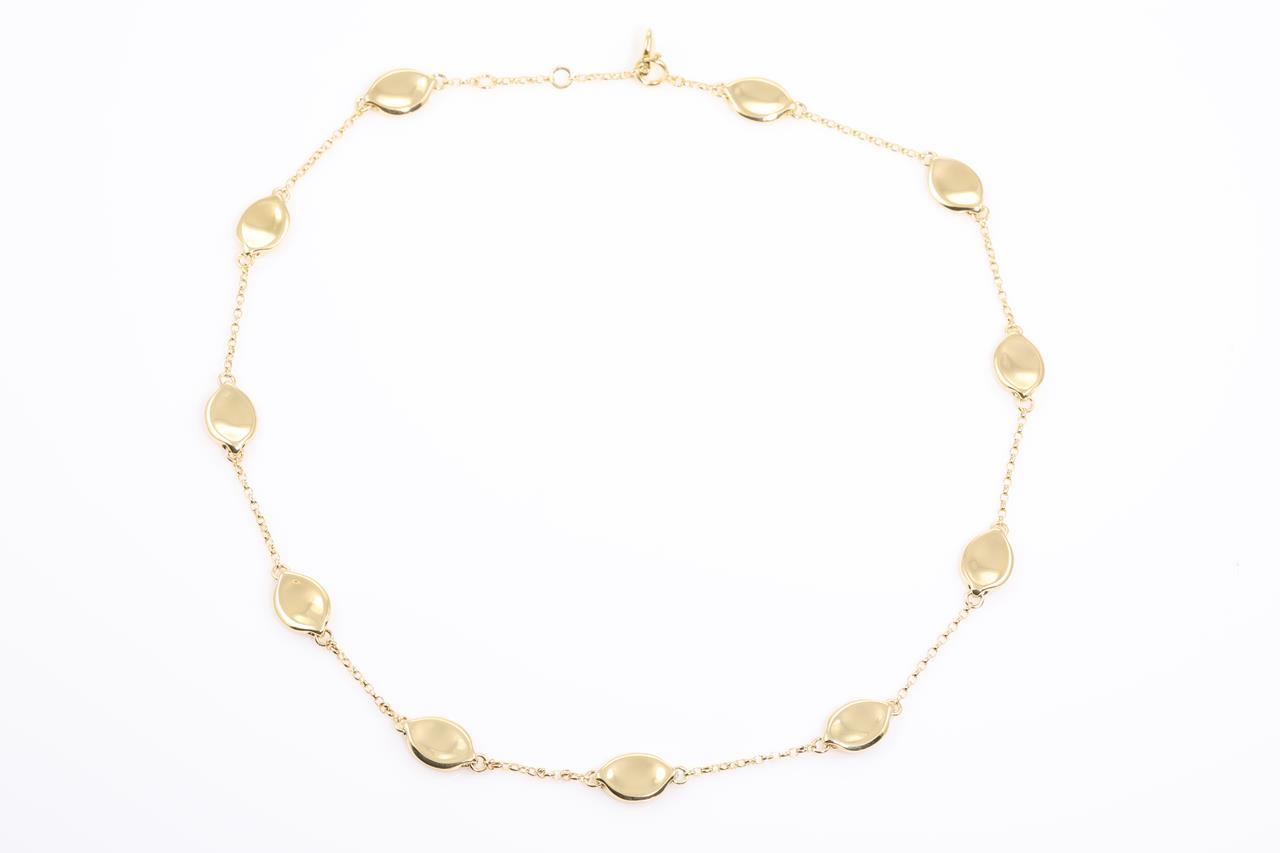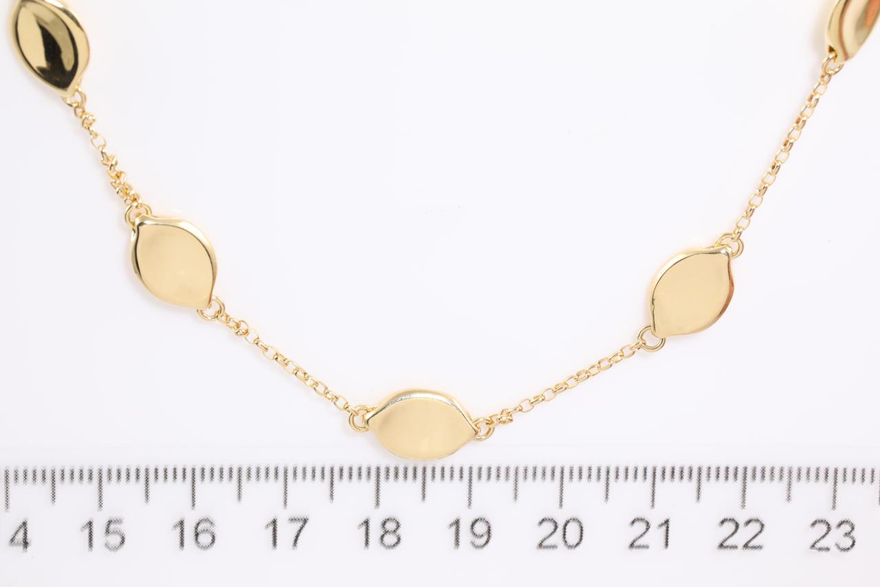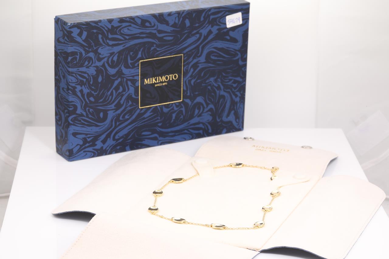 Mikimoto leaf motif necklace. 18ct yellow gold. Length: 40cm. Weight: 21.7g. With Mikimoto box. (Pre-owned)