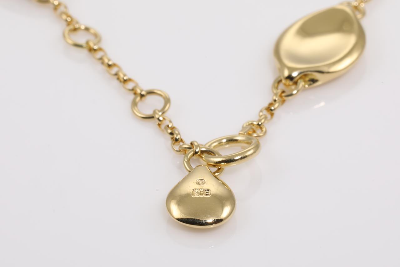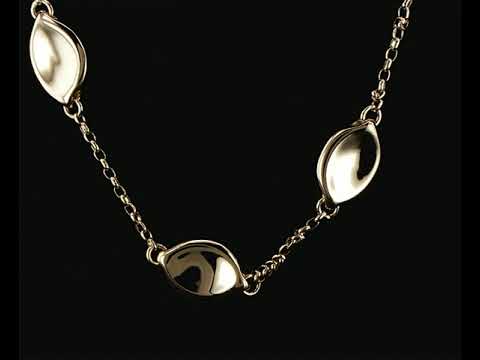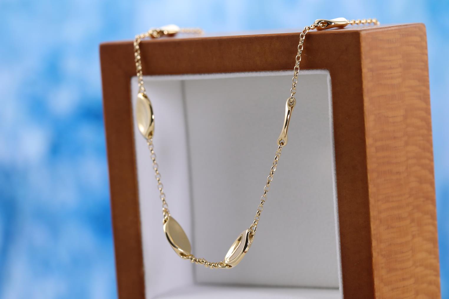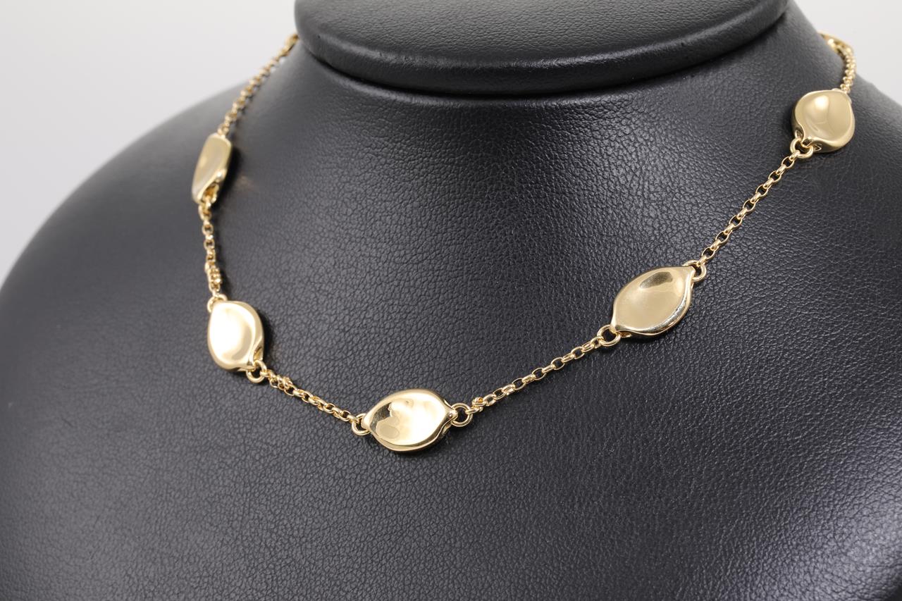 Mikimoto leaf motif necklace. 18ct yellow gold. Length: 40cm. Weight: 21.7g. With Mikimoto box. (Pre-owned)