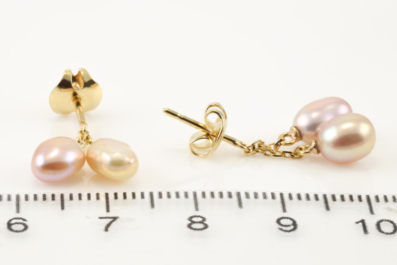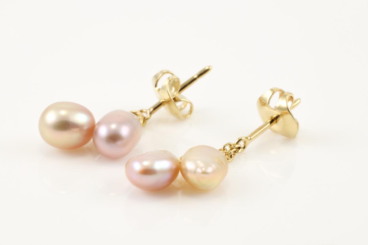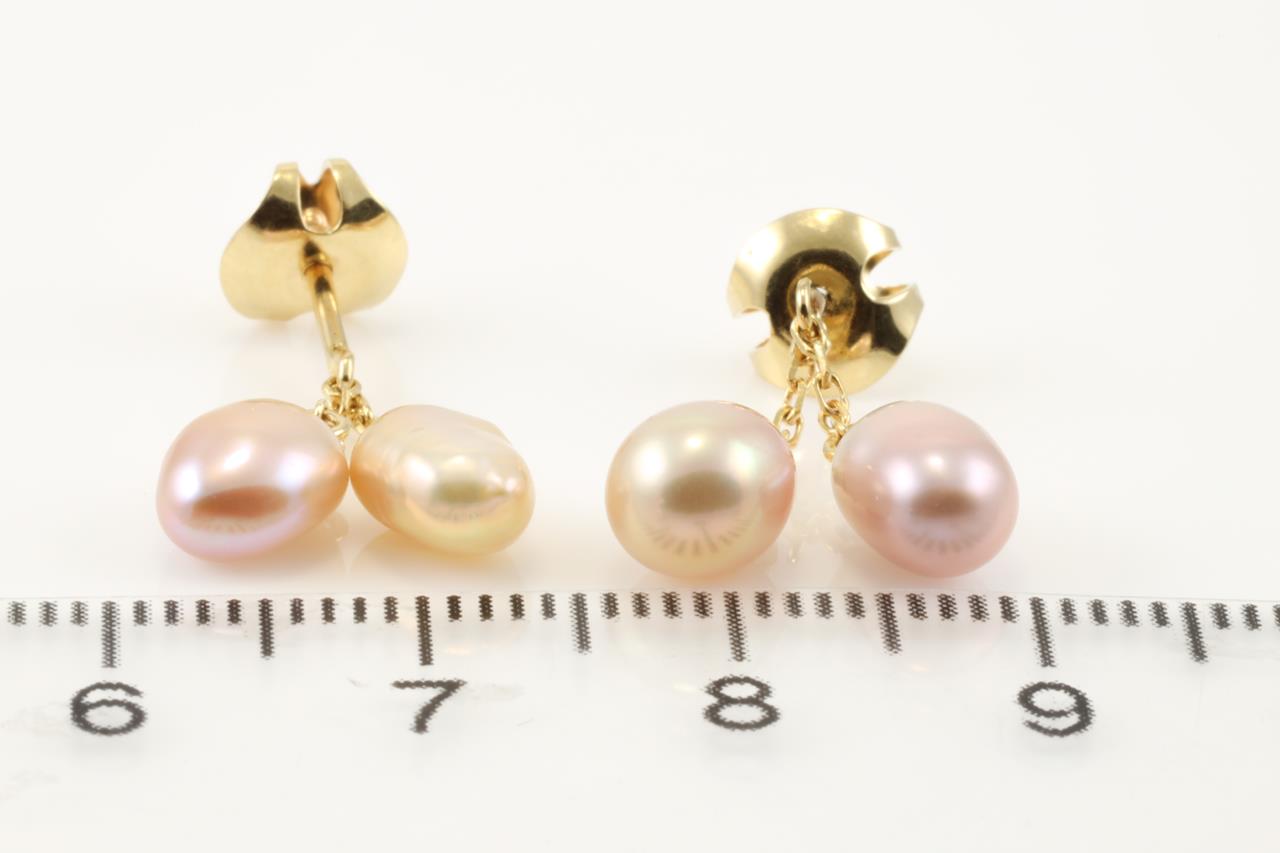 Mikimoto Pearl earrings with 2 pink and 2 golden Keshi pearls. 14ct yellow gold. Weight: 2.2g. (Pre-owned)