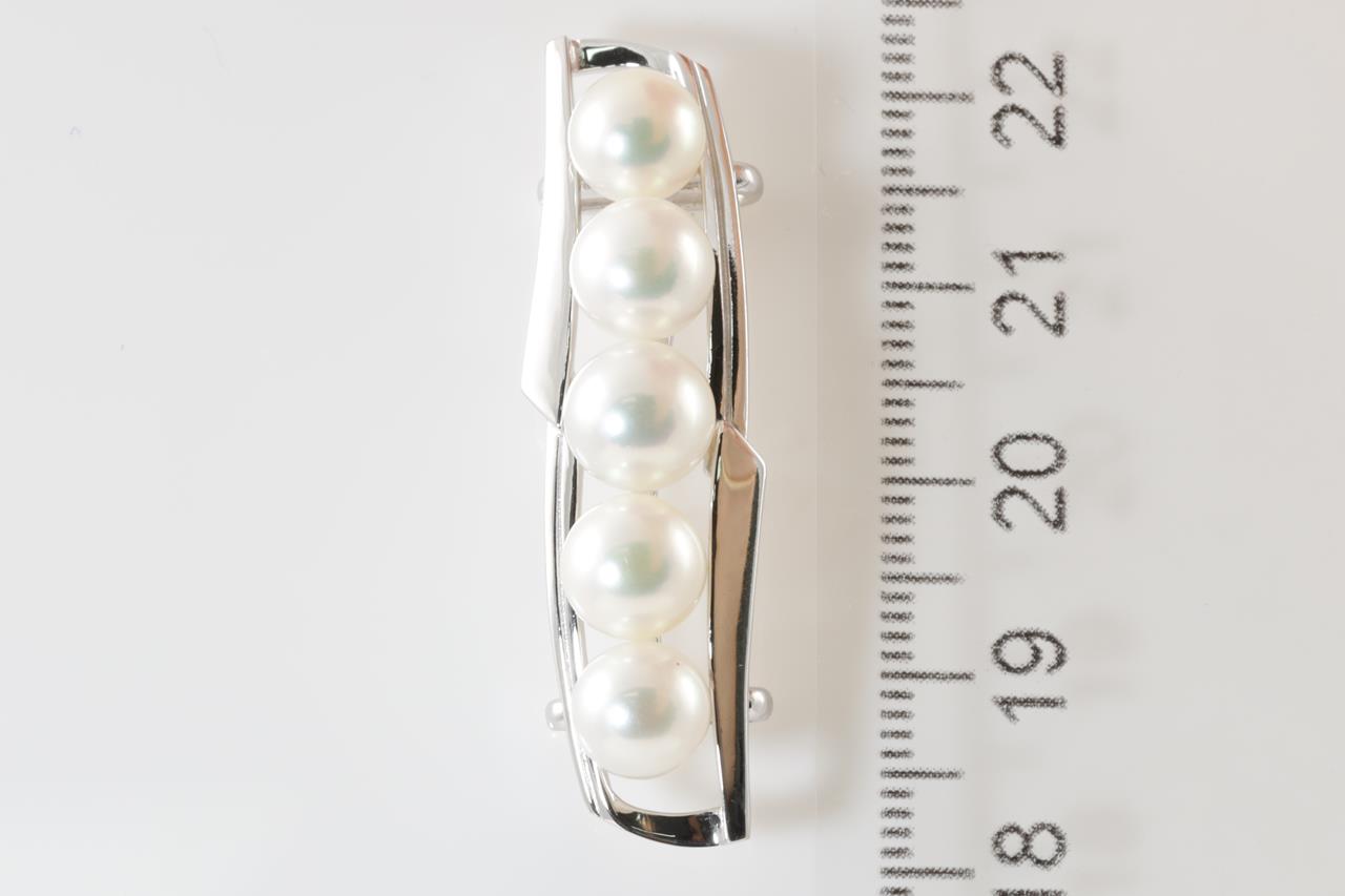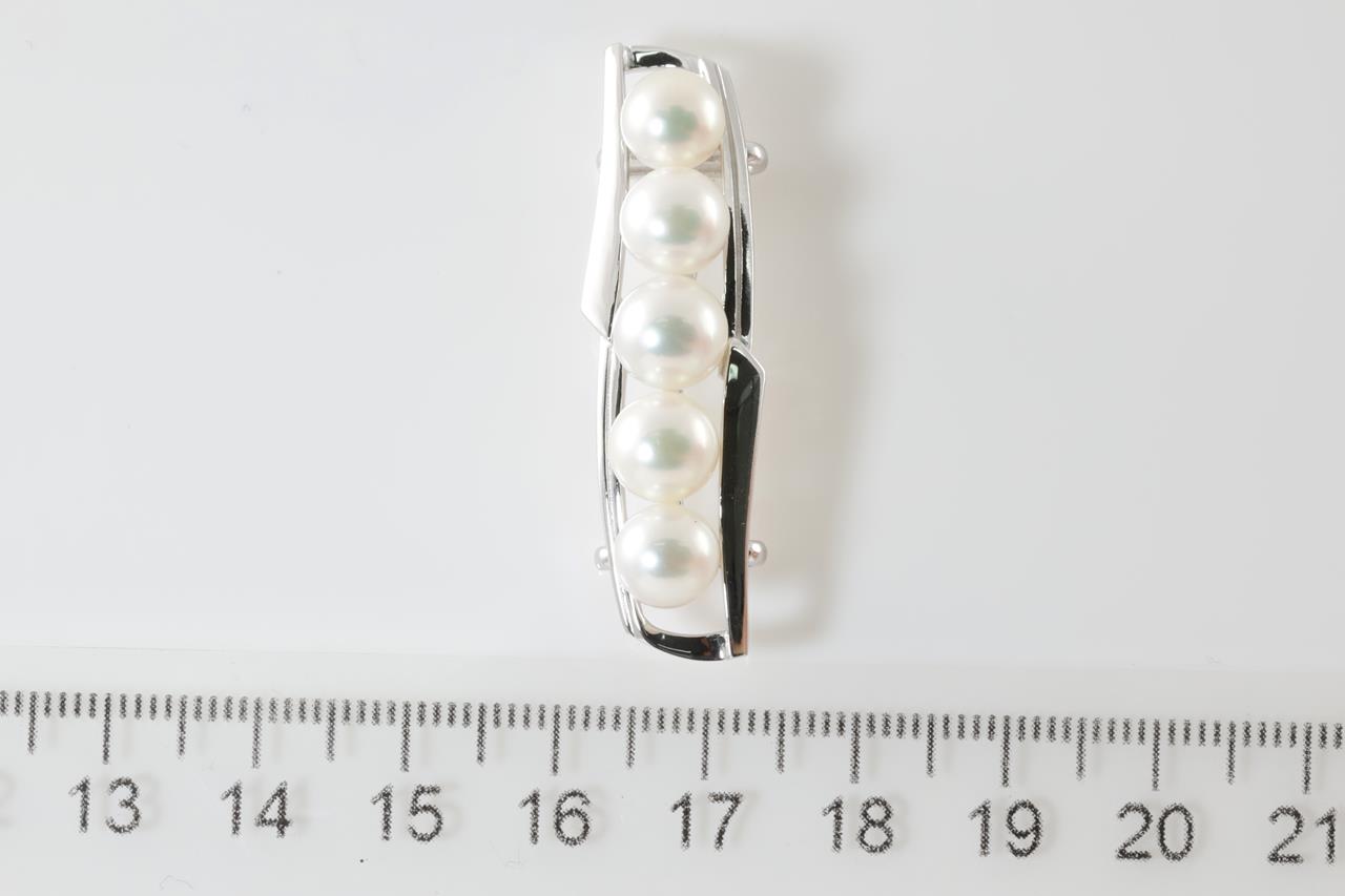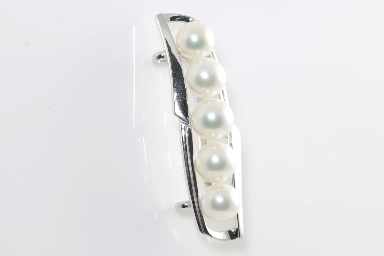 Mikimoto bar pendant for choker with 5 Akoya pearls of 6.8mm-7.5mm. 14ct white gold. Weight: 7.8g. (Pre-owned)