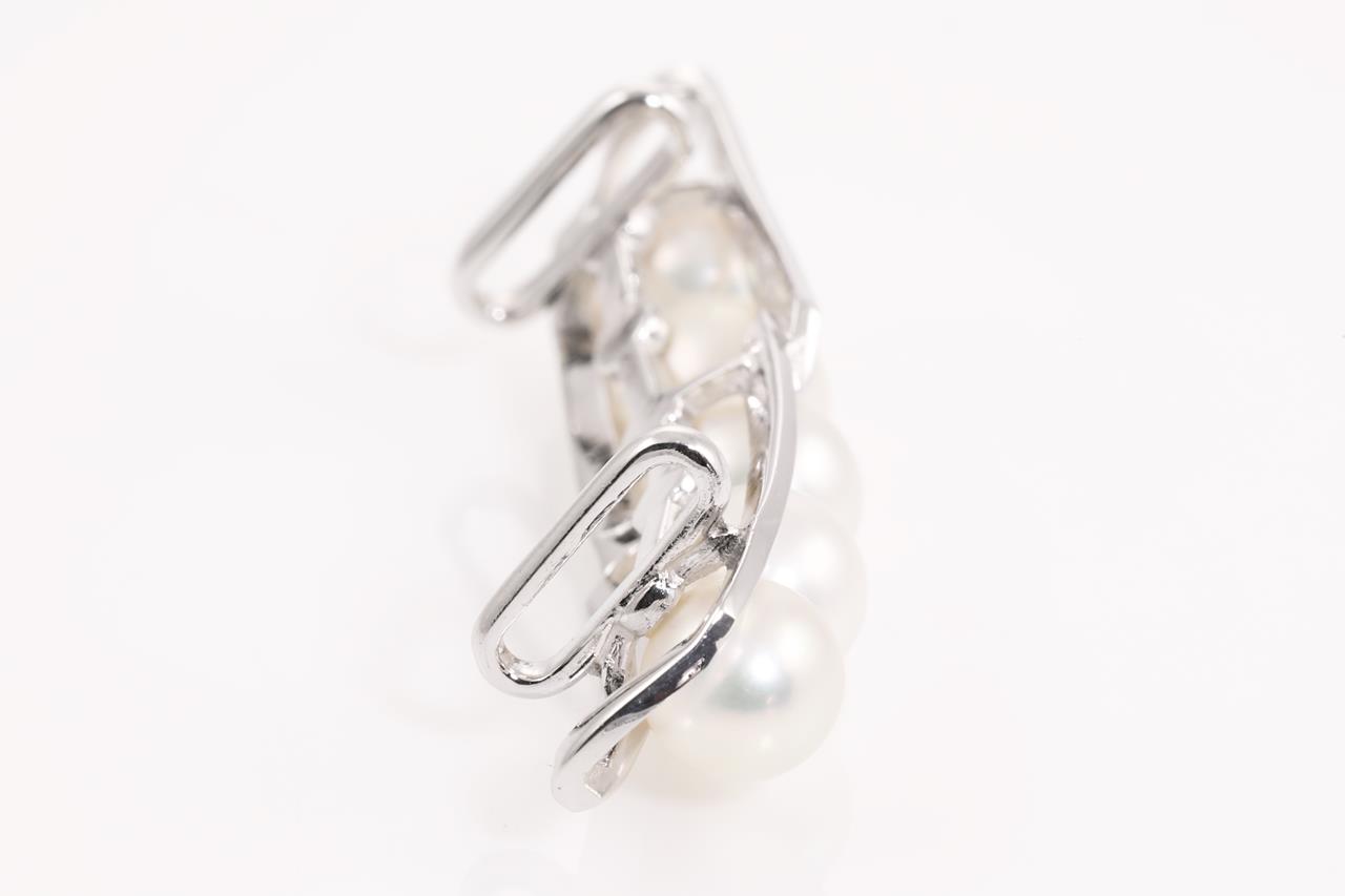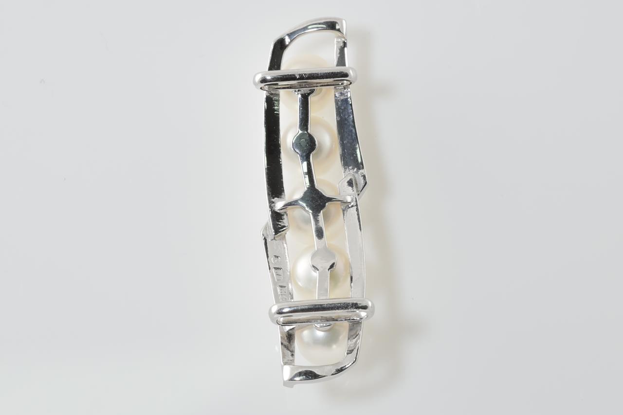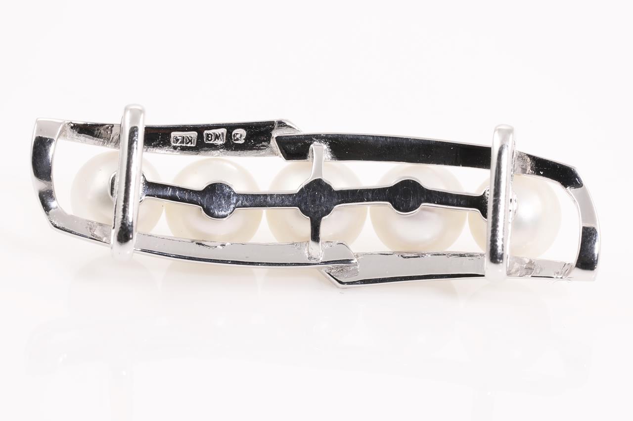 Mikimoto bar pendant for choker with 5 Akoya pearls of 6.8mm-7.5mm. 14ct white gold. Weight: 7.8g. (Pre-owned)