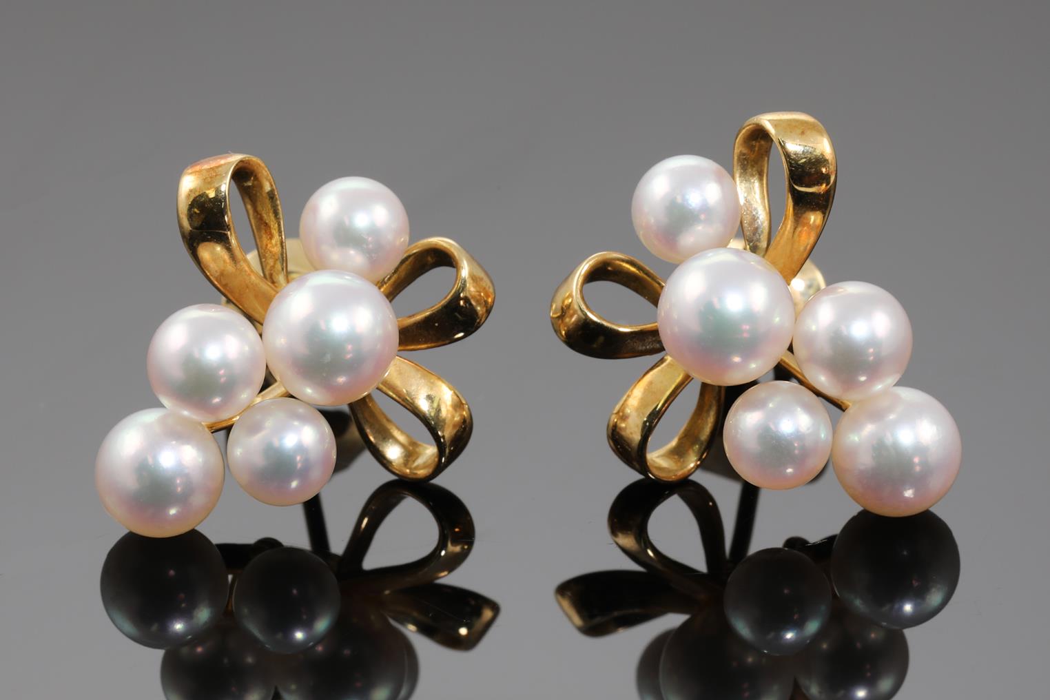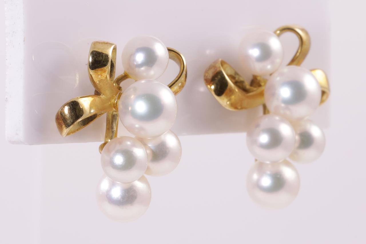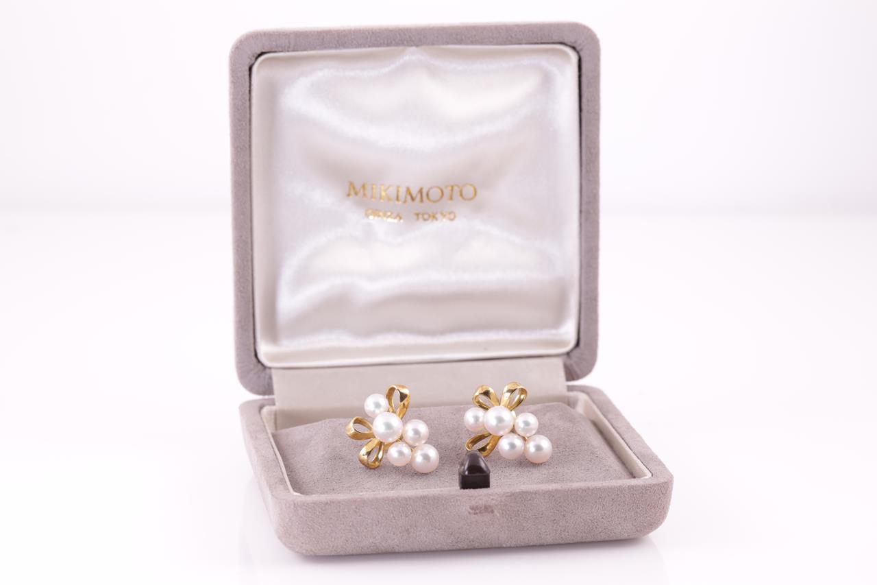 Mikimoto pearl earrings with cultured pearls of 4.7mm-5.7mm. Weight: 4.9g. 18ct yellow gold. With Mikimoto box. (Pre-owned)
