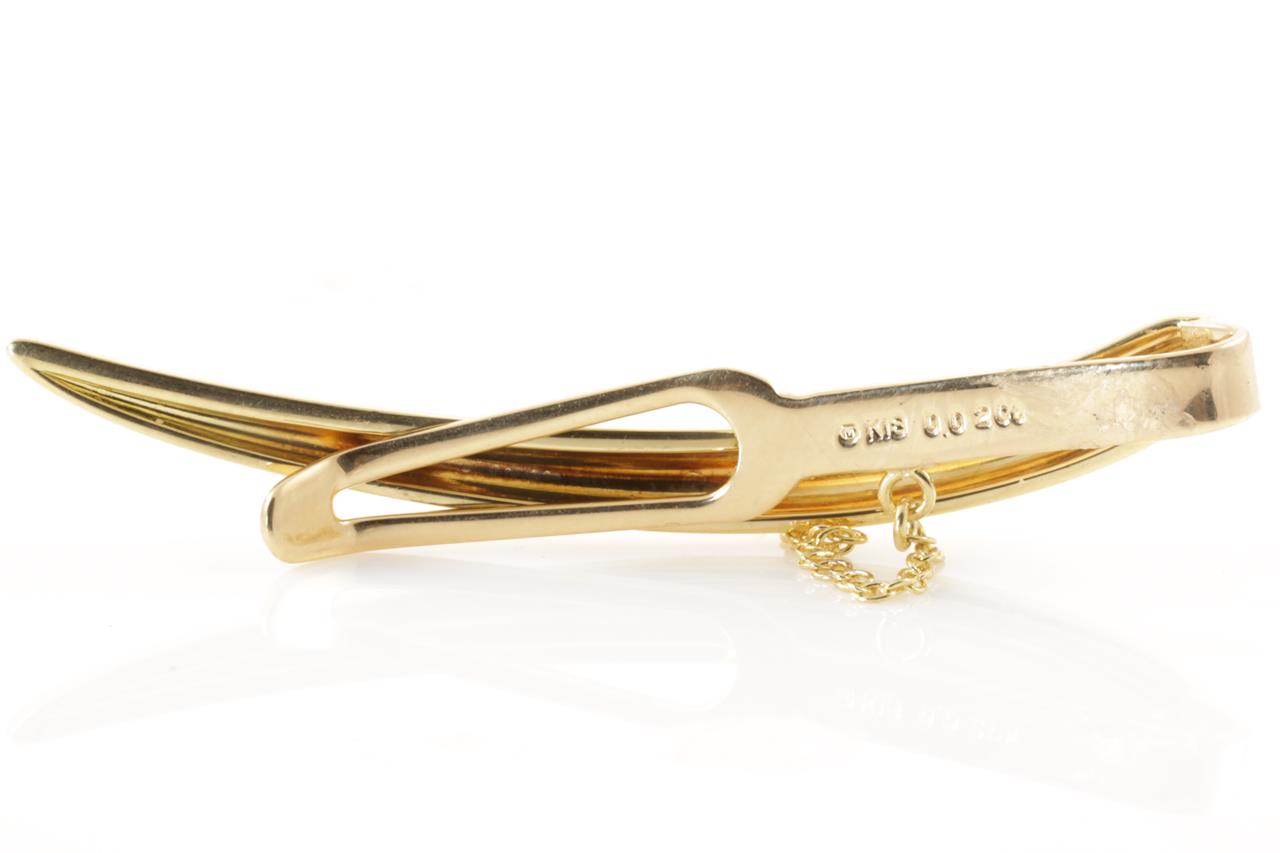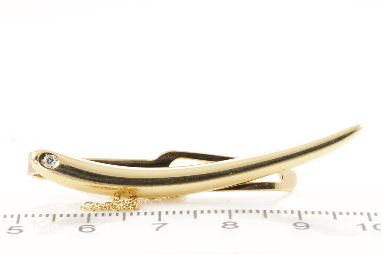 Mikimoto Tie Pin with round cut Diamond of approximately 0.02ct. 18ct gold. Weight 7.4g. Length 5cm. With safety pin and chain. (Pre-owned)