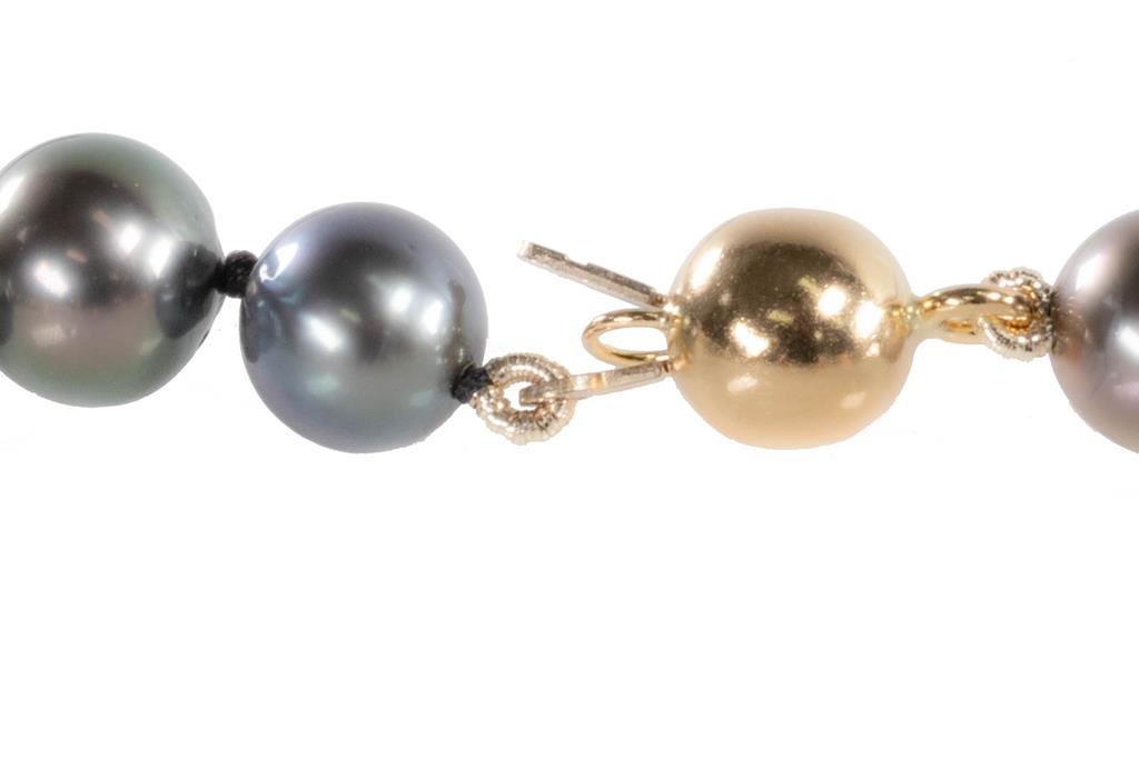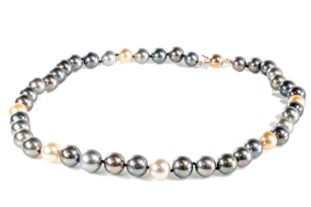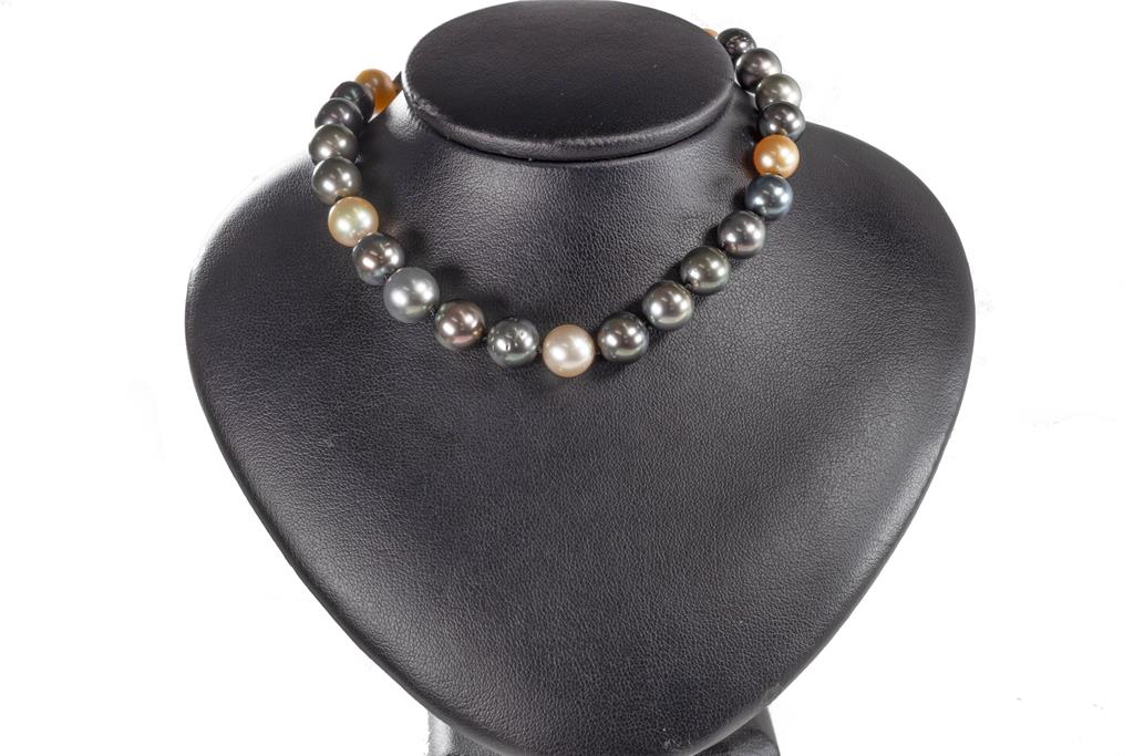 Pearl necklace with Tahitian & Golden South Sea Pearls of 7.9mm - 10.9mm. 18ct yellow gold clasp. Length: 45cm. Weight: 51.6g (Pre-owned)