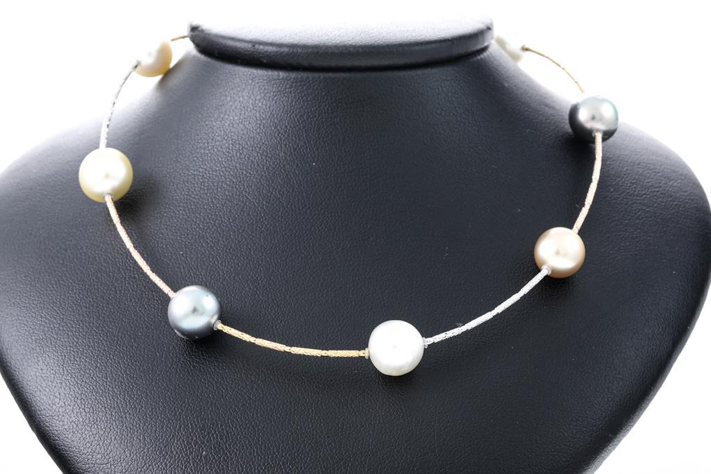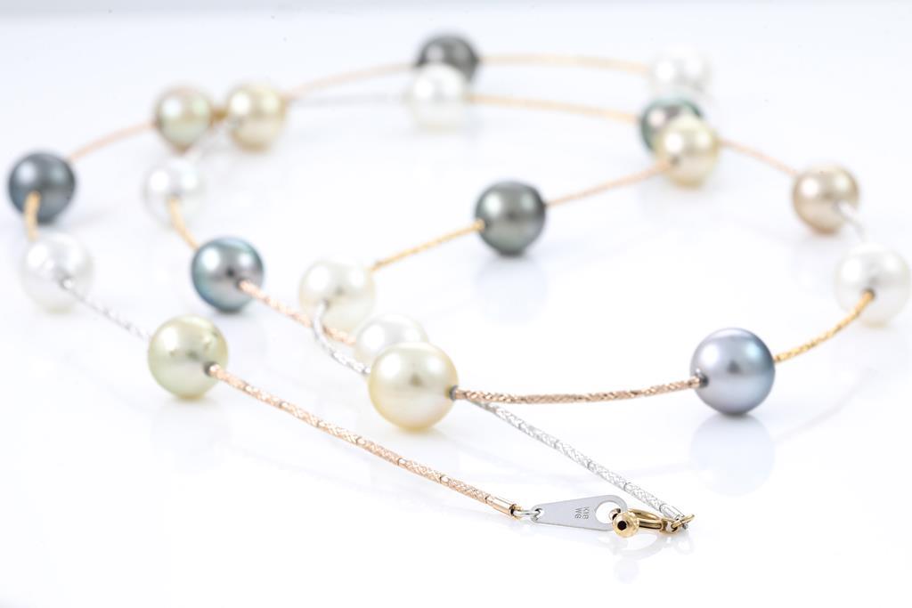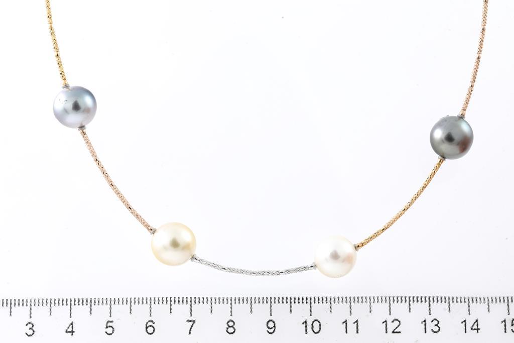 Mixed pearl necklace with Tahitian, white & golden South Sea Pearl of 10mm - 11mm. 18ct yellow, rose & white gold. Length: 90cm. Weight: 37.4g. (Pre-owned)