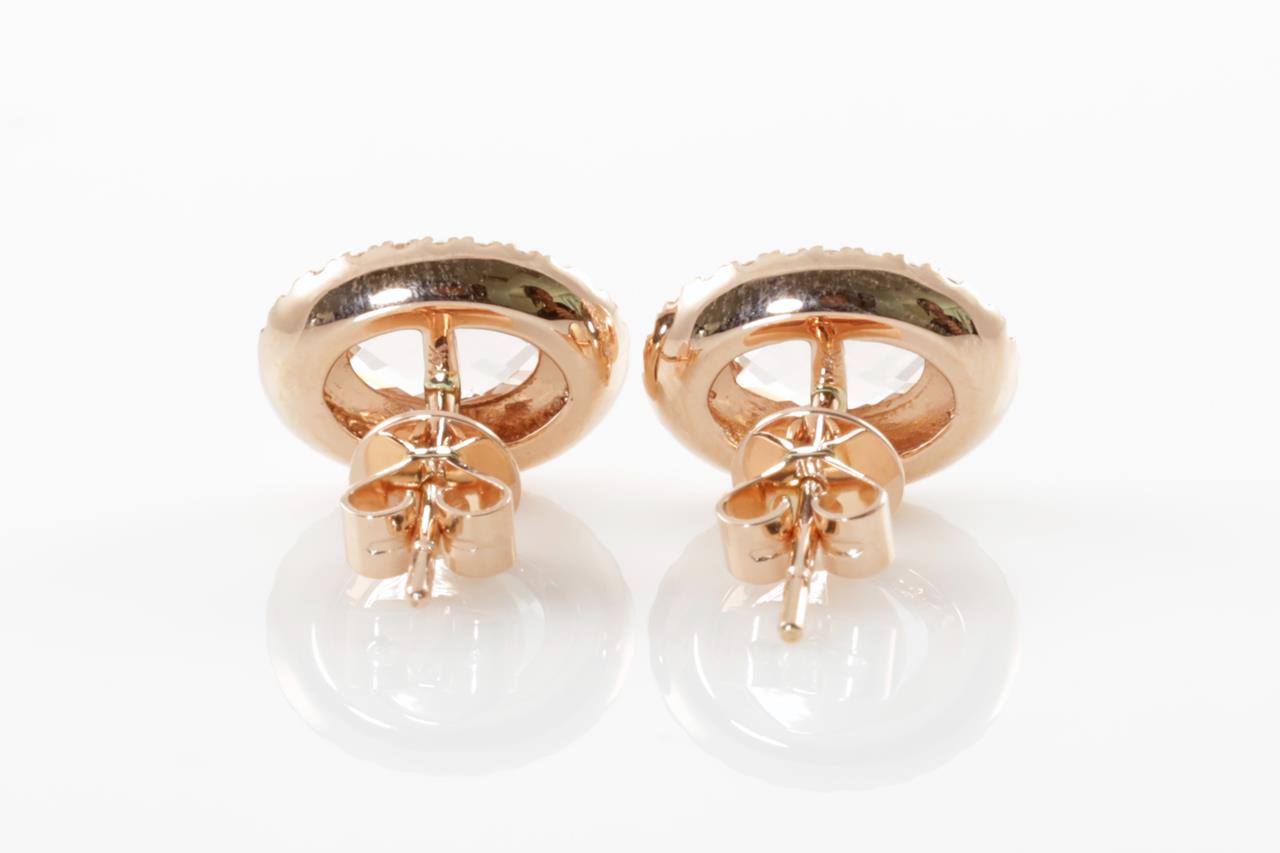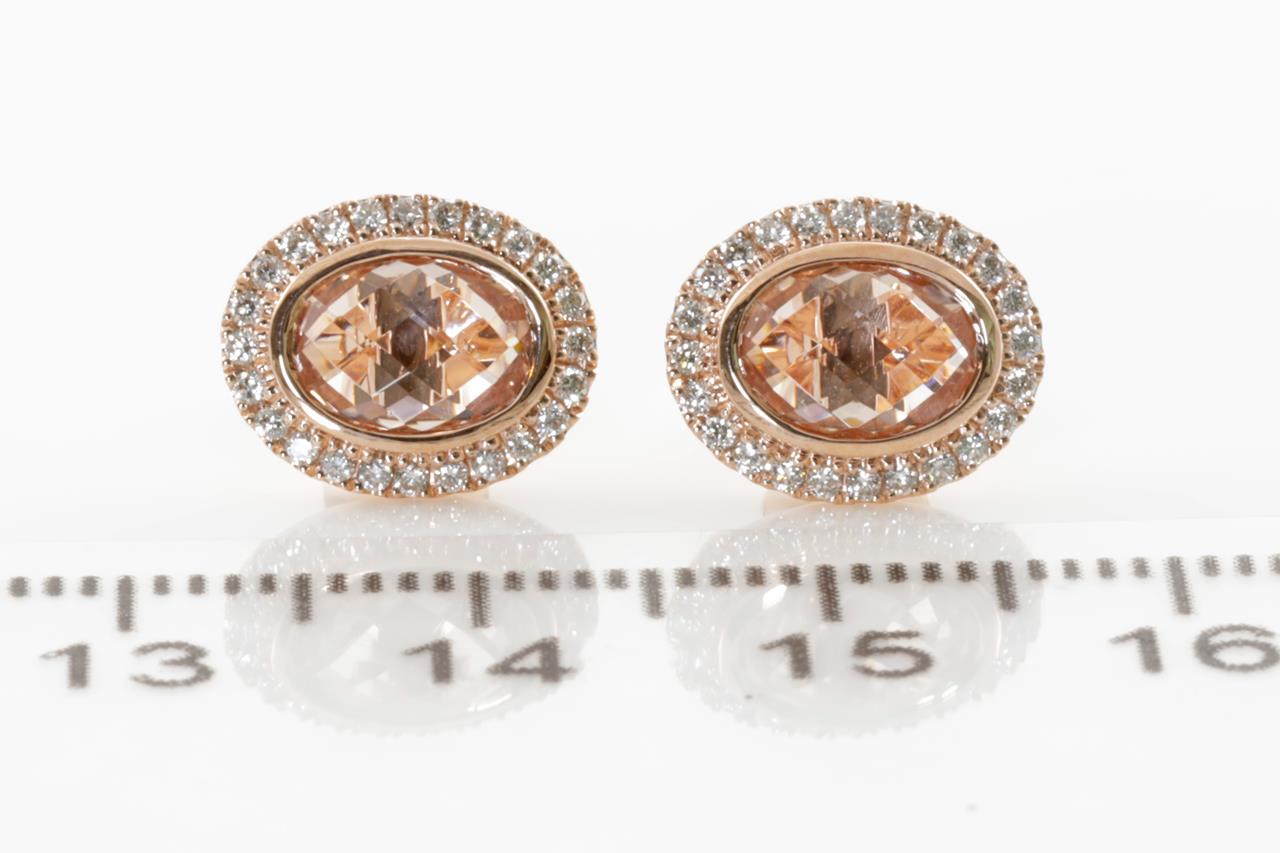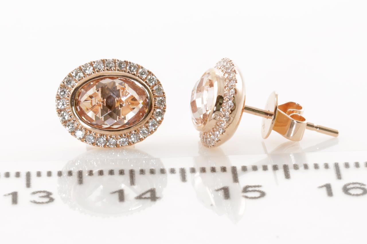 Morganite and Diamond earrings with oval Morganite totalling 1.27cts and Diamonds totalling 0.22cts. 14ct rose gold. Weight: 2.6g. (New)