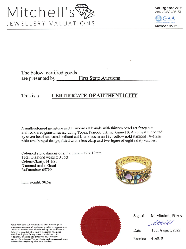 Multi-colour gemstones and Diamond Bangle | First State Auctions