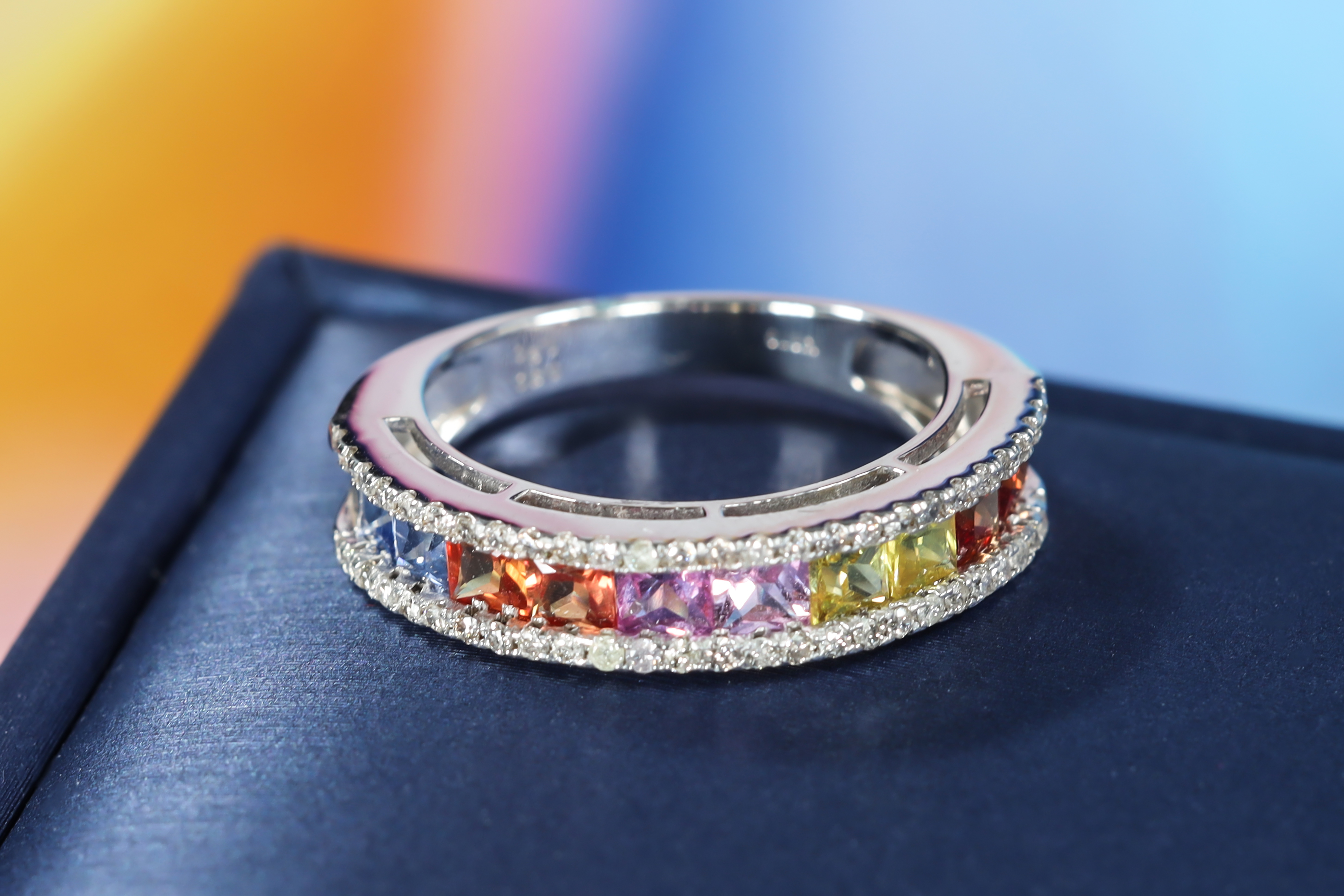 Multi-Colour Sapphire and Diamond Ring