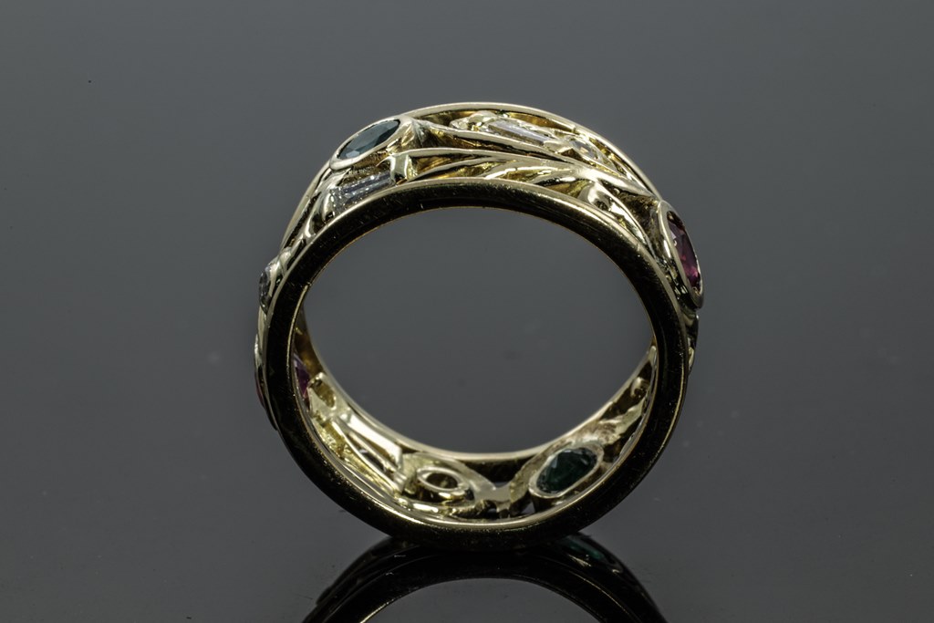 Multi-coloured Gemstone and Diamond Ring