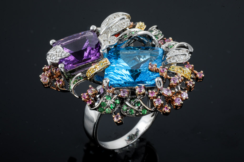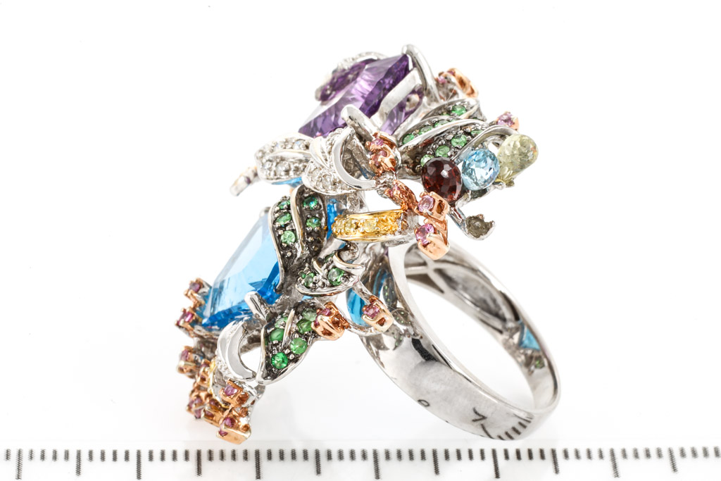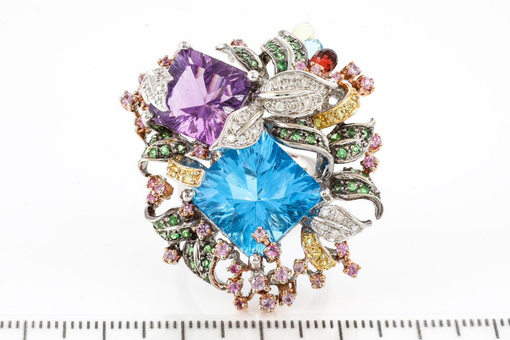 Multi-coloured Gemstone and Diamond Ring | First State Auctions